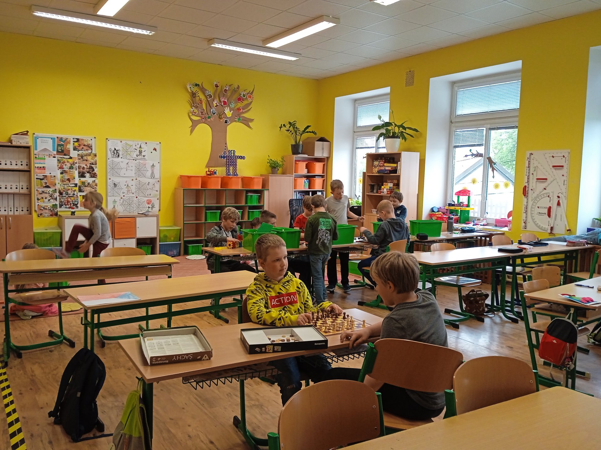 školním hřišti a vyházkám v okolí školy. Za nepříznivého počasí jsme využili stavebnice a společenské hry.