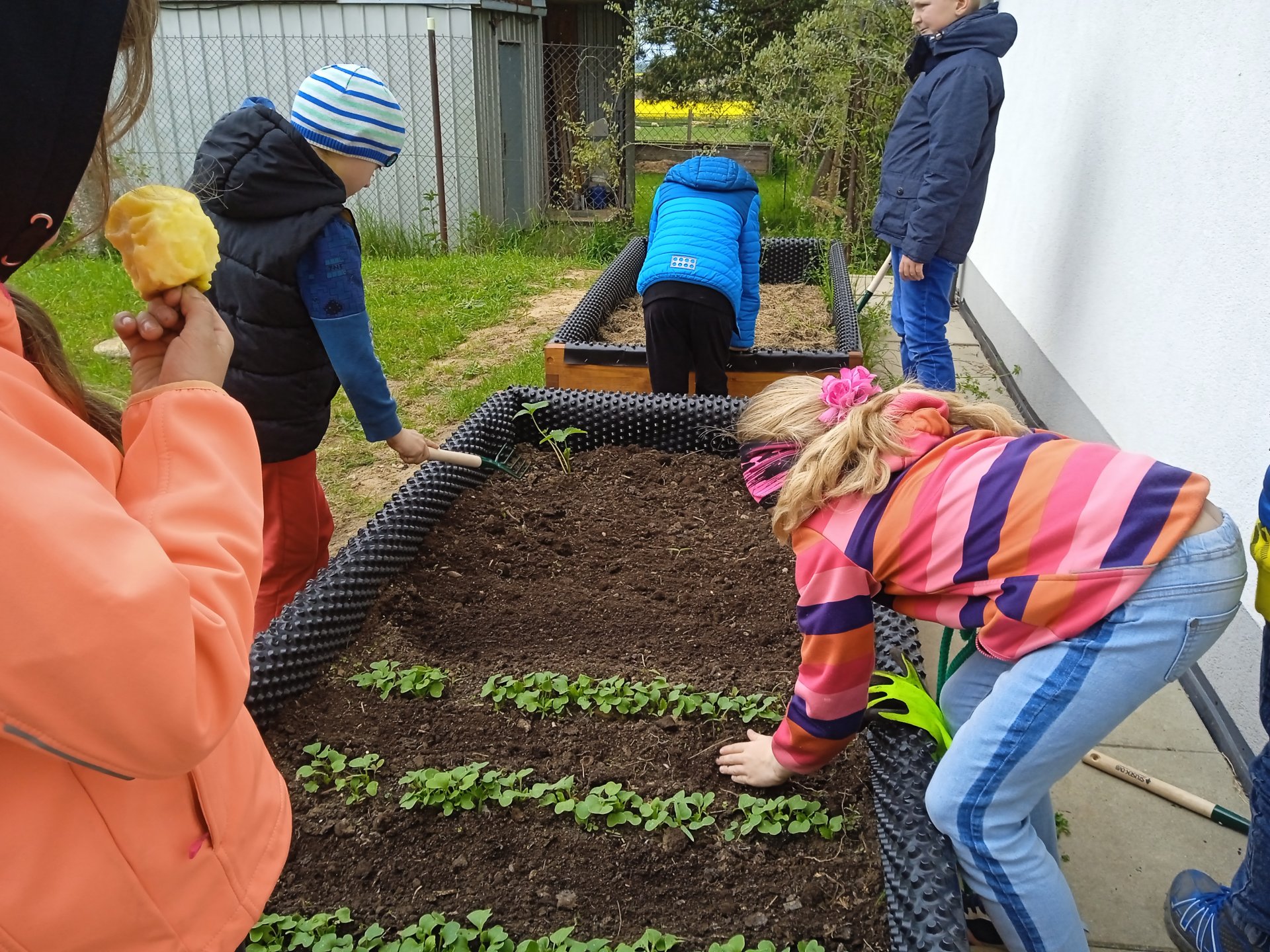 různé pohybové hry, které jsme se v tomto roce naučili. Nezapomněli jsme na náš vyvýšený záhon, kde