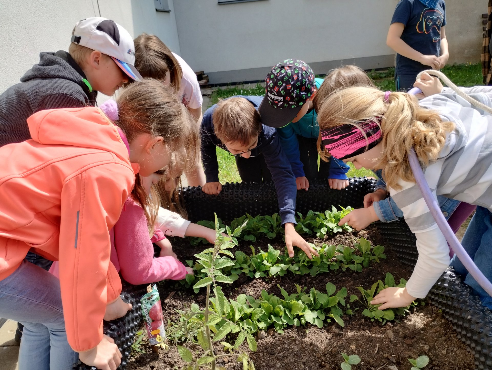 nám rostou ředkvičky, rajčata a okurky.