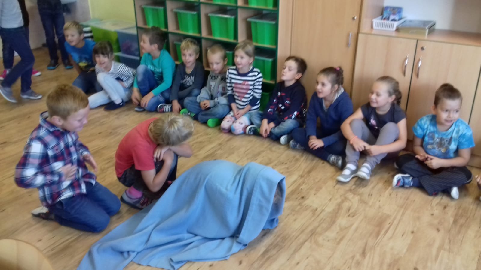 Nejen, že jsme 1. září získali novou roli školáka, ale během září jsme se stali i herci. Zahráli jsme si pohádku O veliké řepě. V hlavní roli řepy se vystřídali ti s nejtužším kořínkem. Některé řepy daly dědečkovi, babičce, vnučce, pejskovi, kočičce a myšce zabrat, ale společnými silami se řepu podařilo vždy vytáhnout! V závěru vystoupení se na nás z pod hromádky usmál krtek. Bylo to příjemné odreagování od sezení v lavicích a s dětmi jsme se pěkně nasmáli.