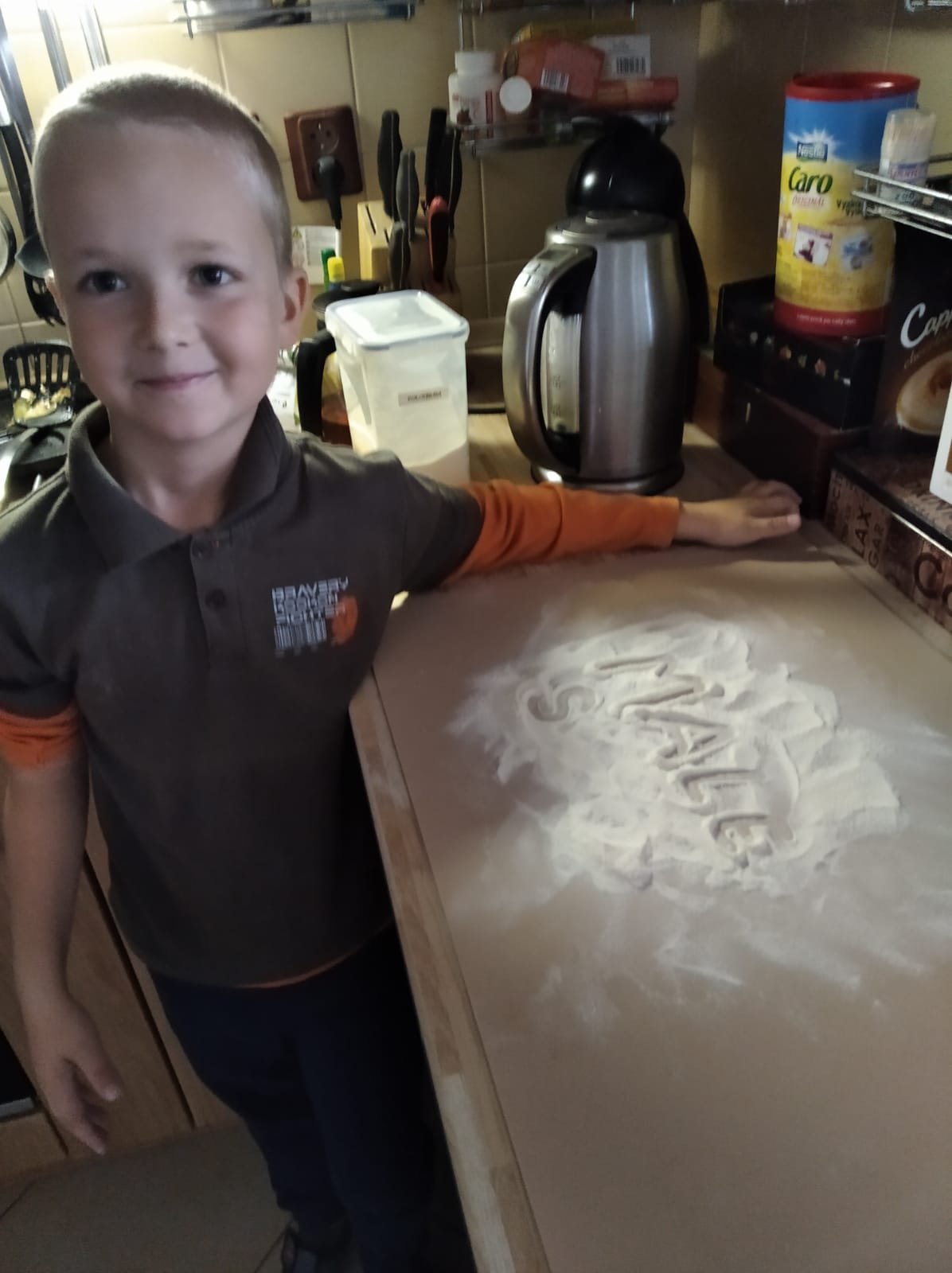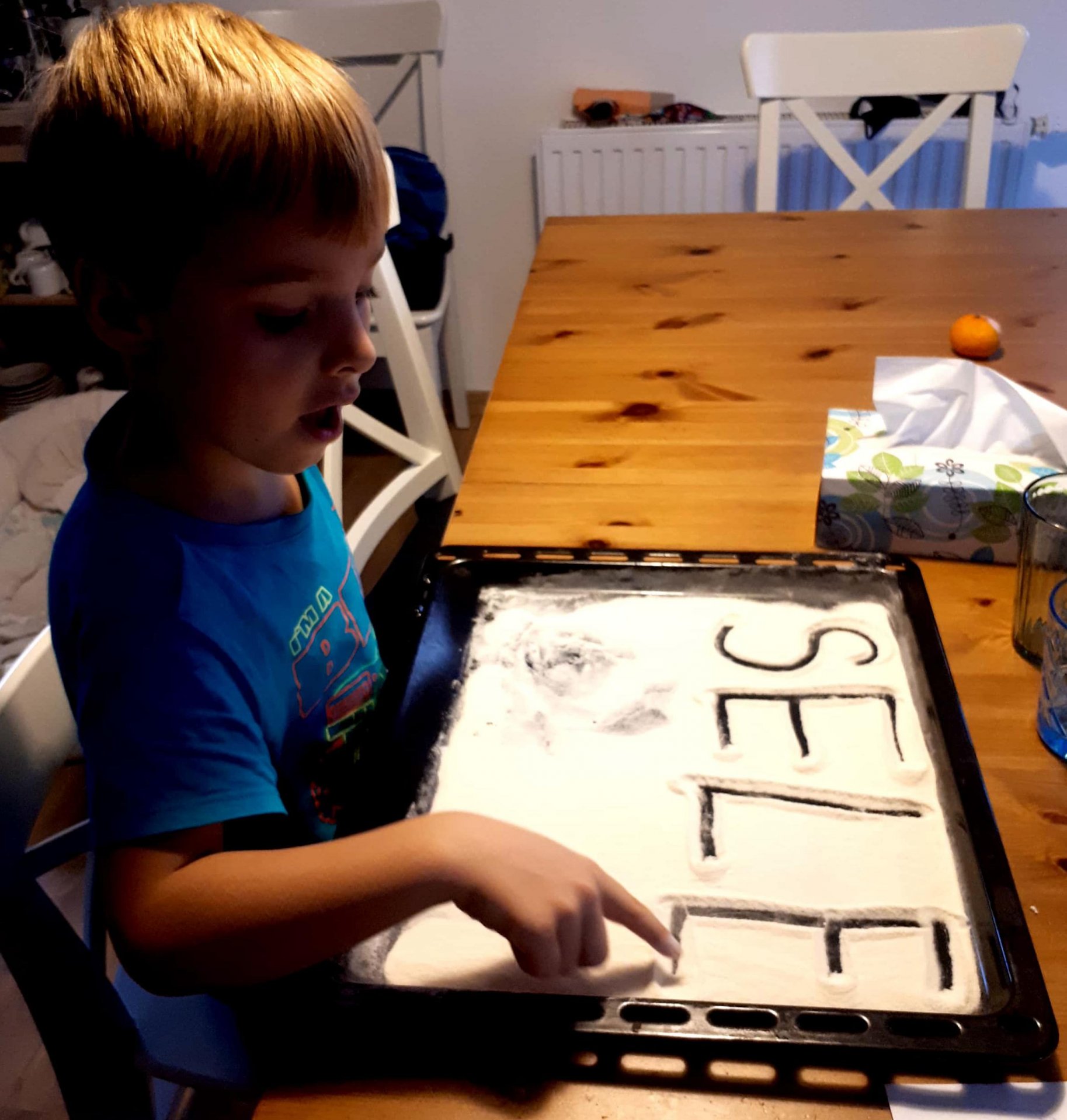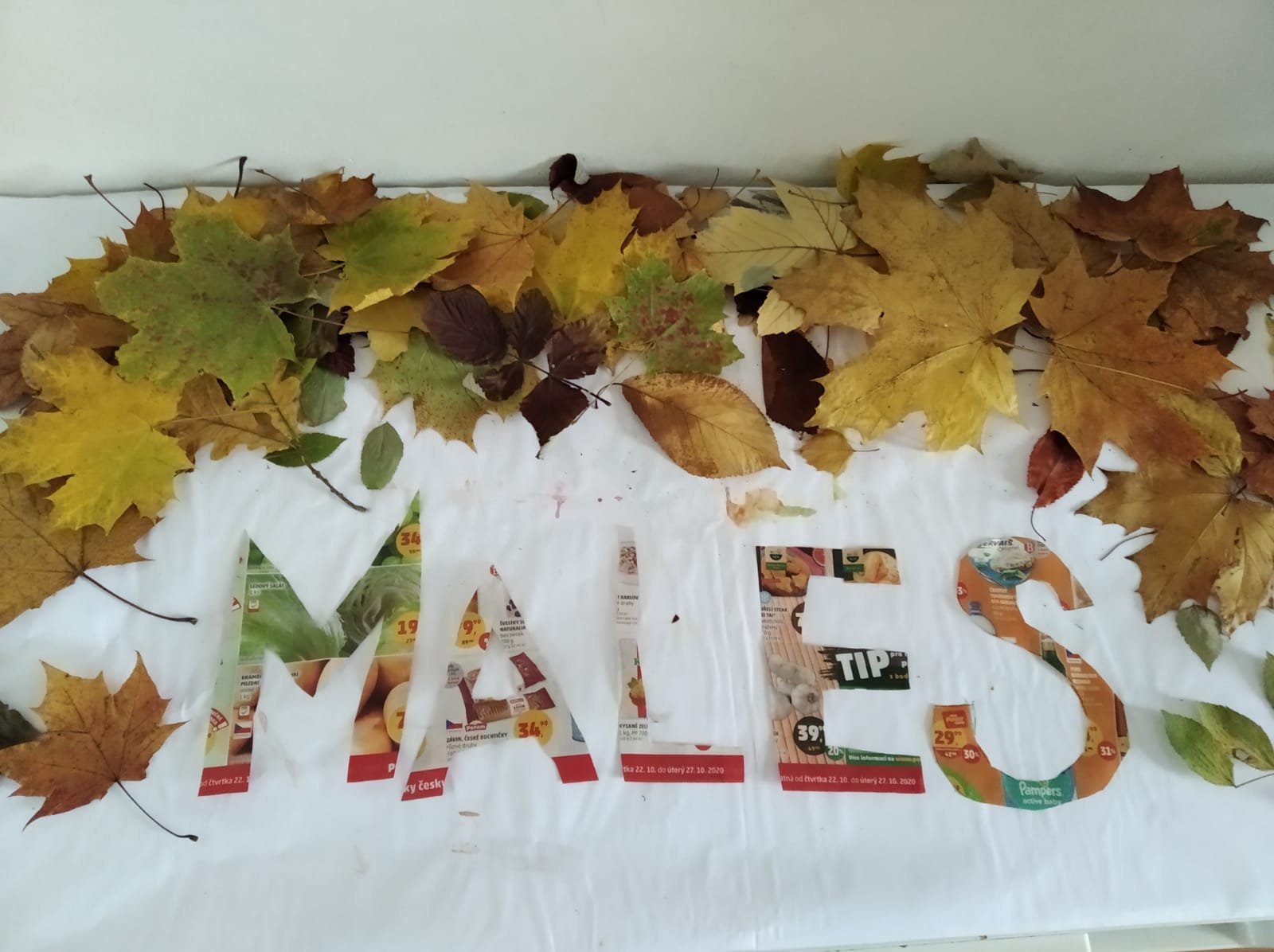 Doma pilně trénujeme nová písmenka. Vystřihujeme z papíru a novin, modelujeme z modelíny, skládáme z listí, lepíme odřezky z pastelek nebo píšeme do mouky a písku.