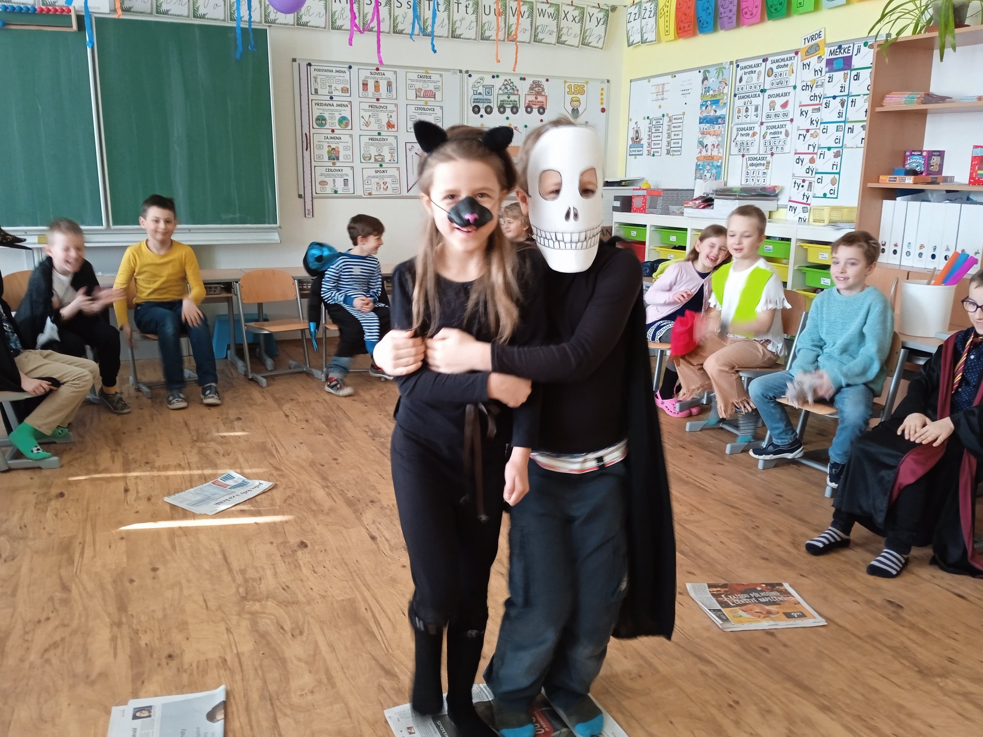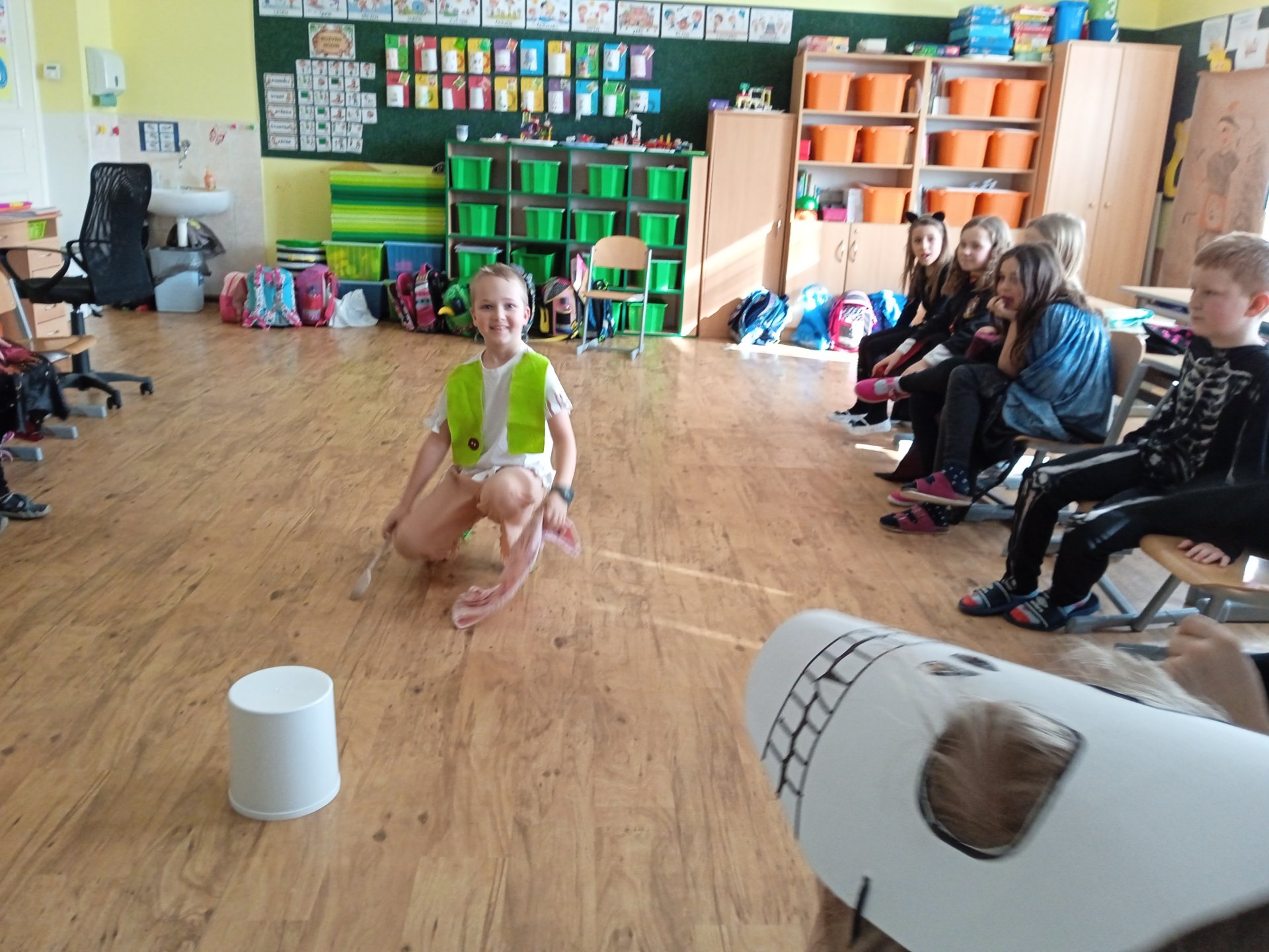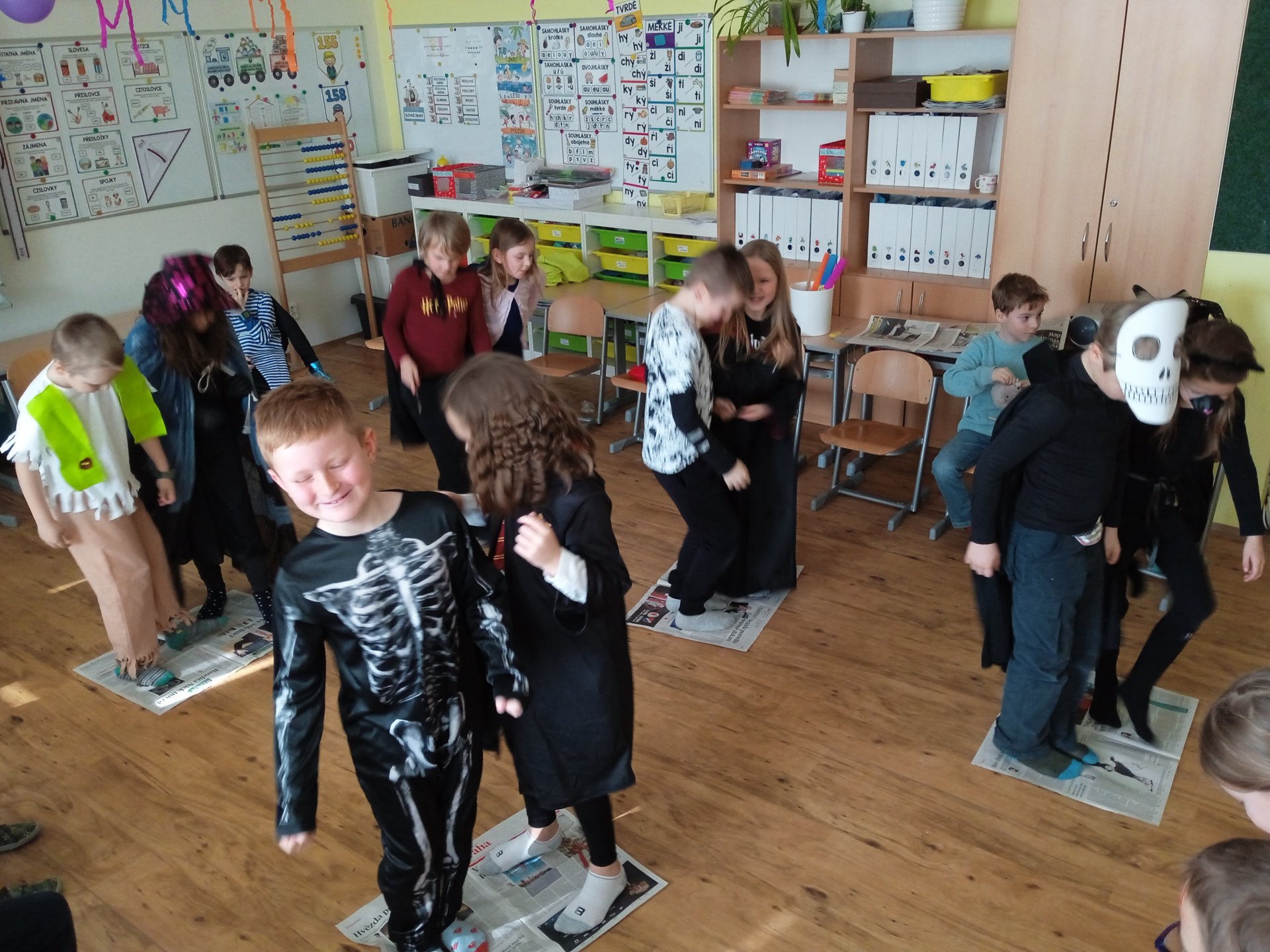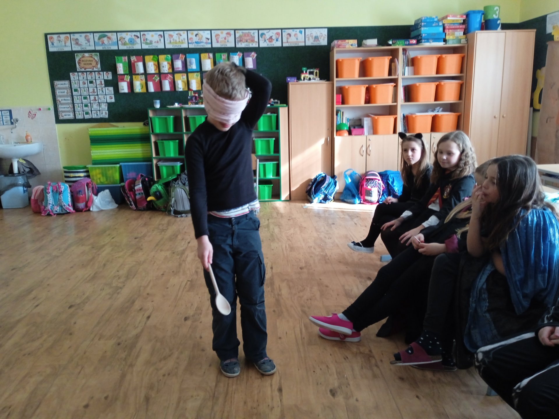 Absolvovali jsme tanec na novinách a židličkový tanec. Pak mezi námi putoval tajemný pytel, plný rozličného oblečení. U koho