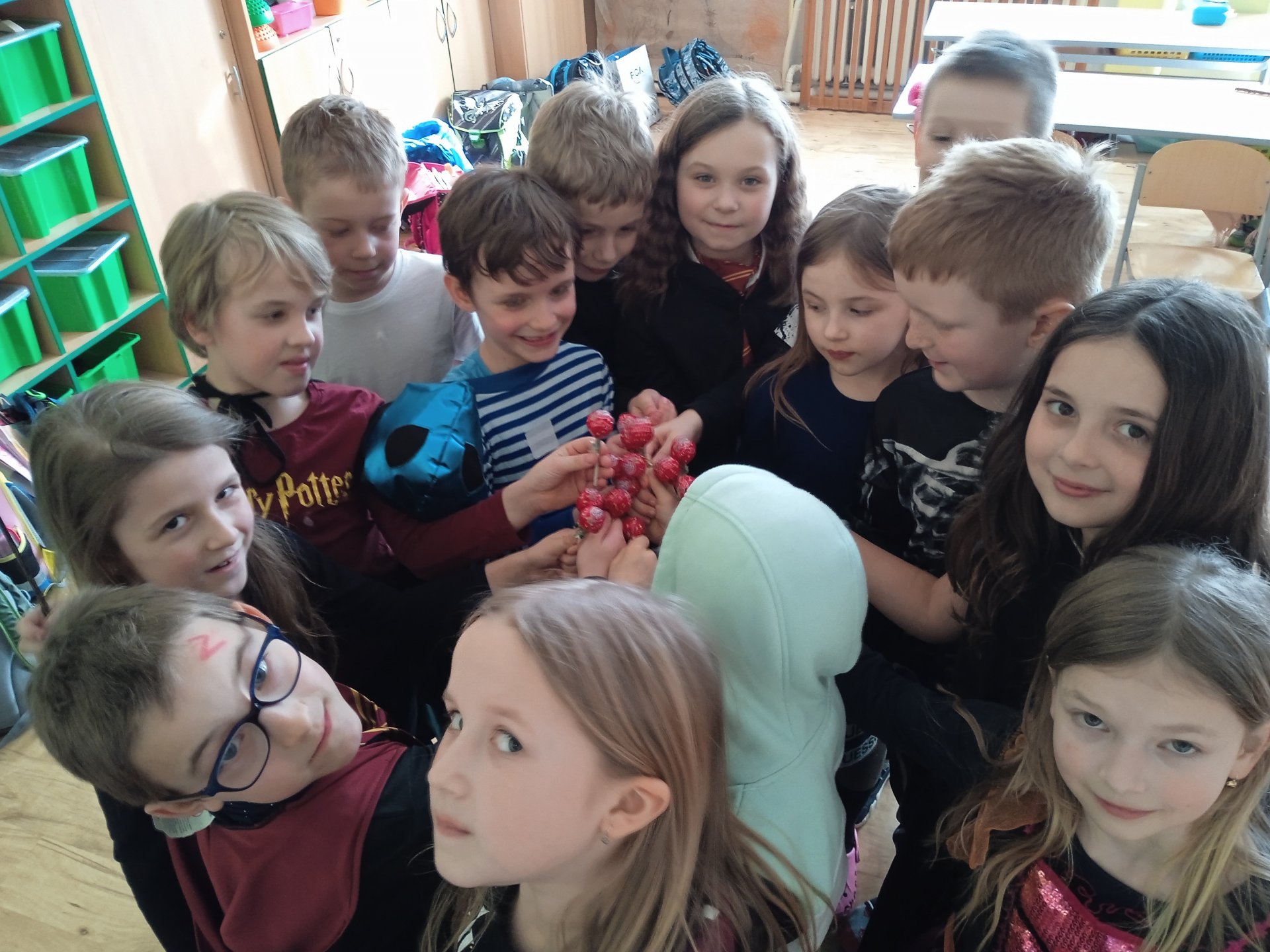 Kulhavé. Pro tuto příležitost jsme si vyrobili čepičky a škrabošky.