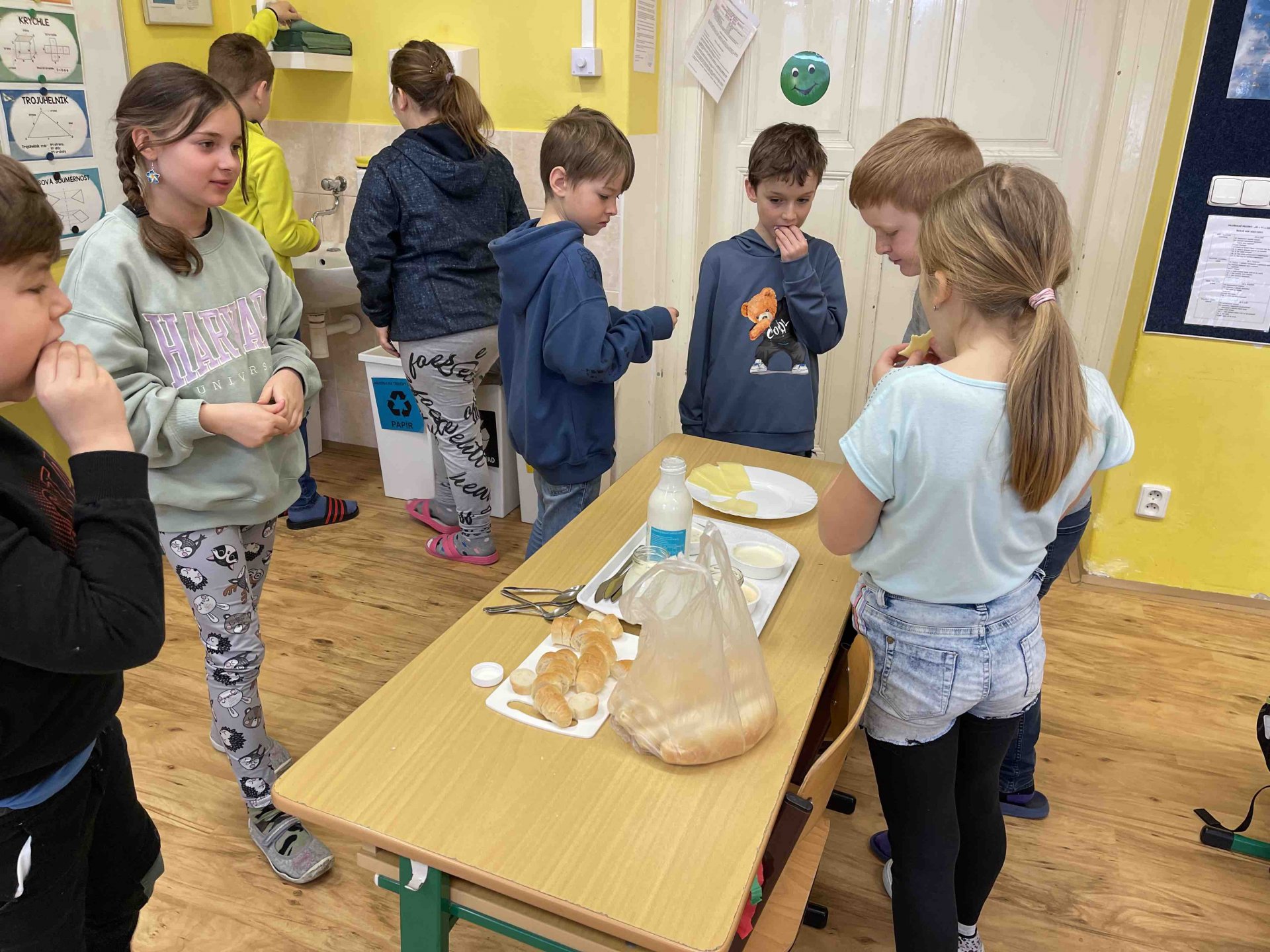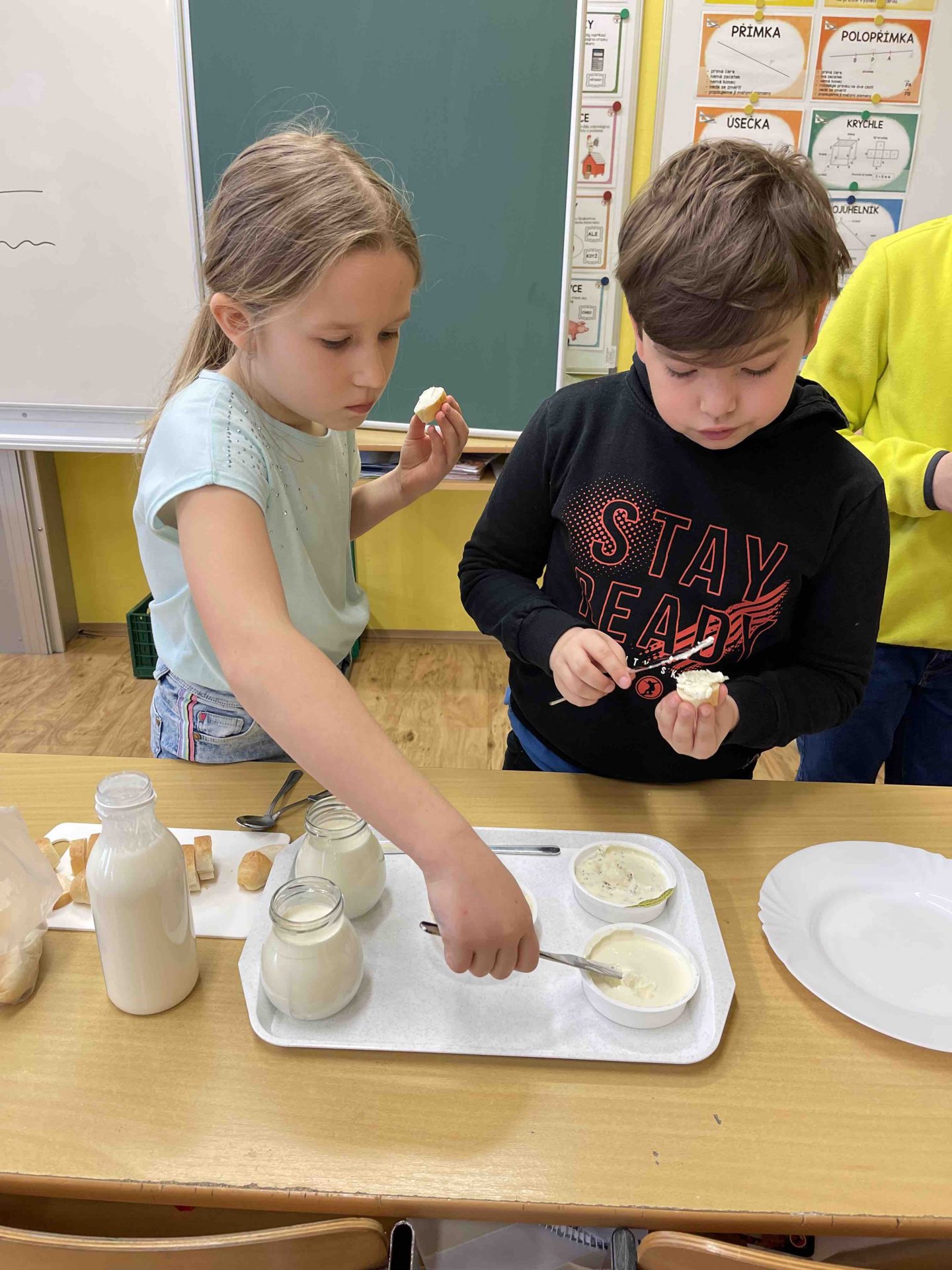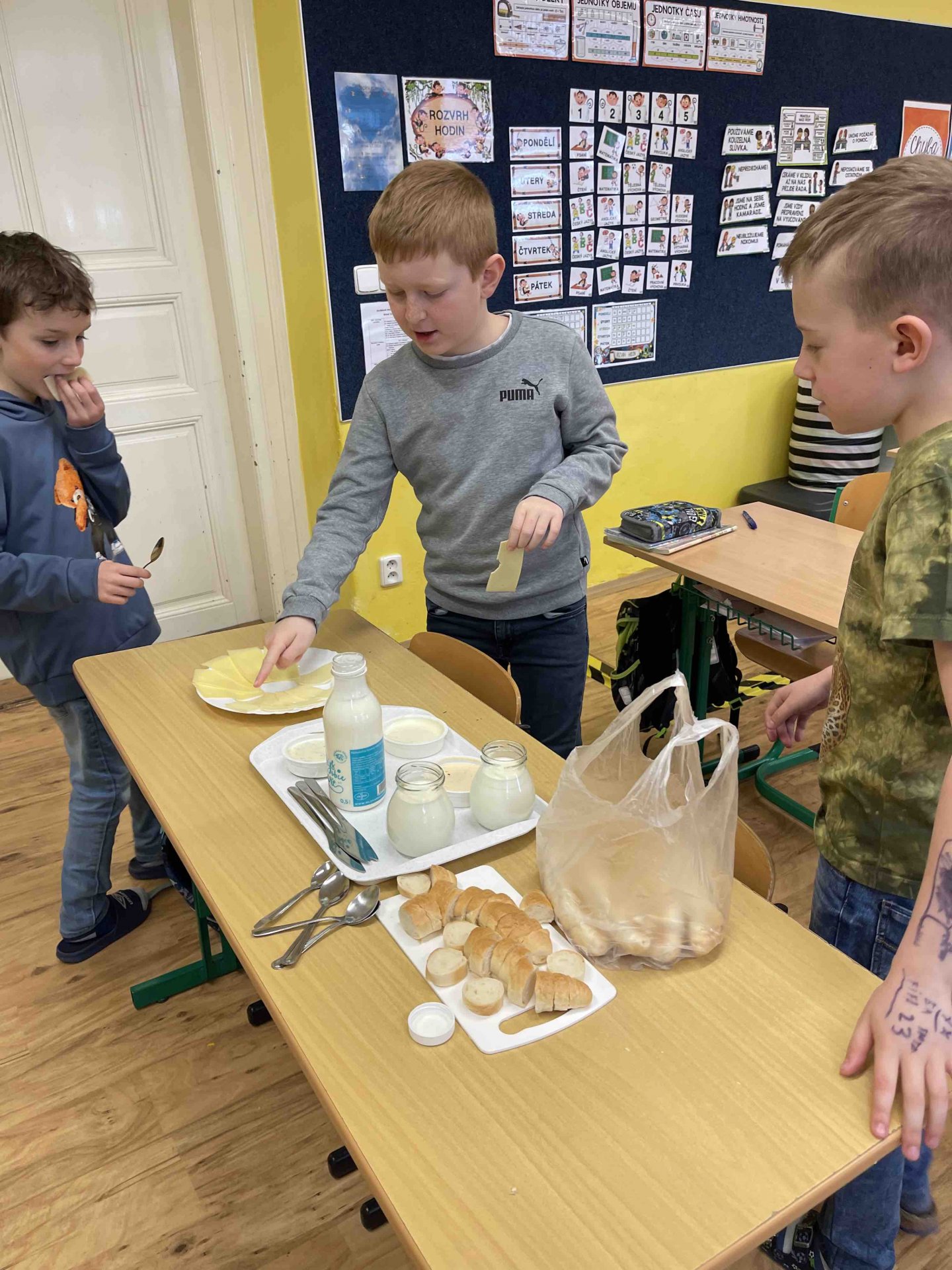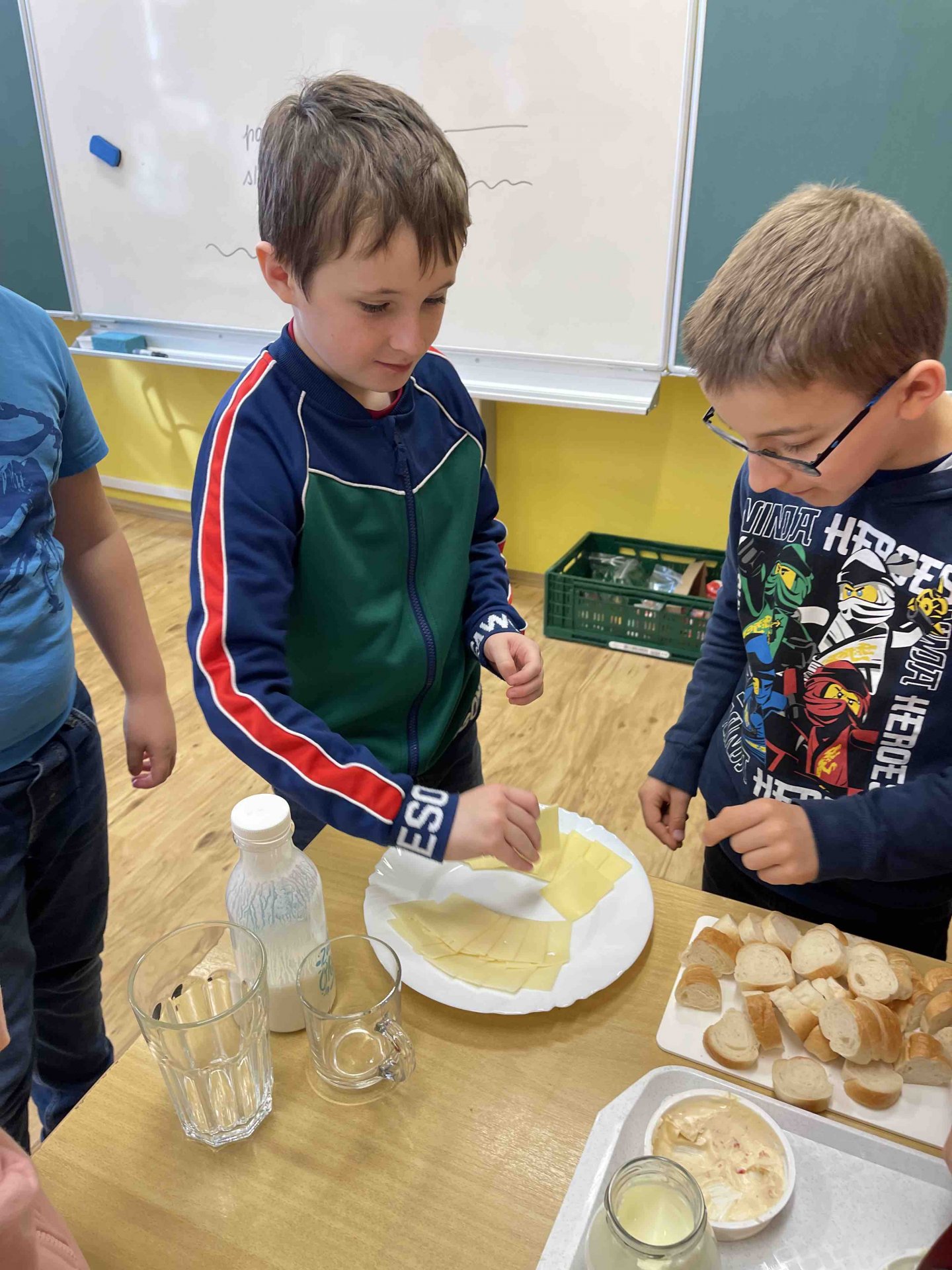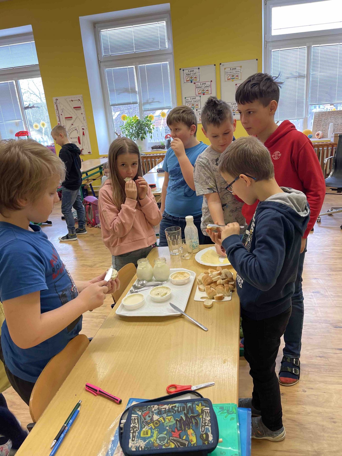 V minulém týdnu v bedýnce s ovocem přijely i mléčné výrobky. Děti měly možnost ochutnat různé příchutě pomazánek, kefír, jogurty a druhy sýrů.