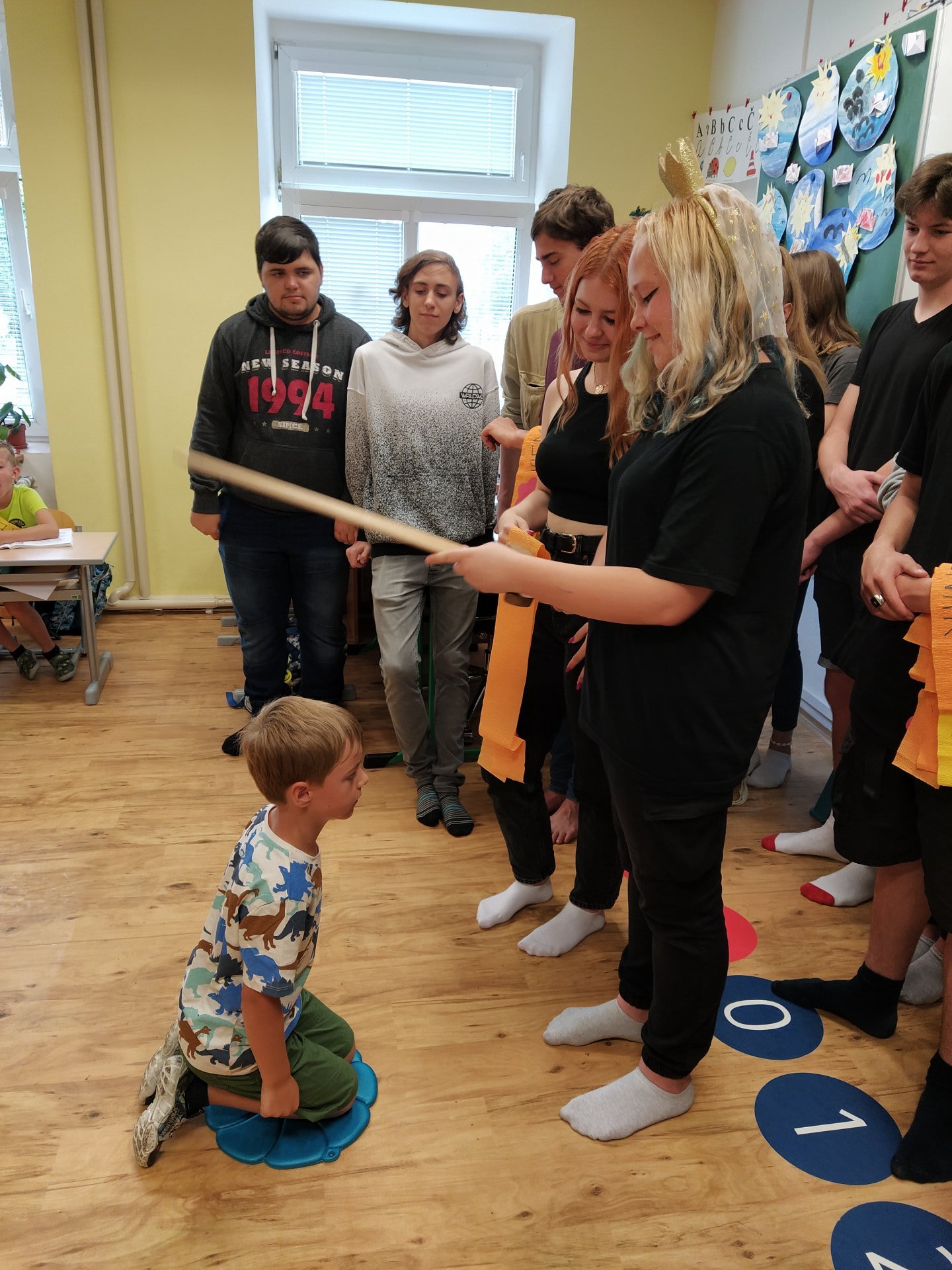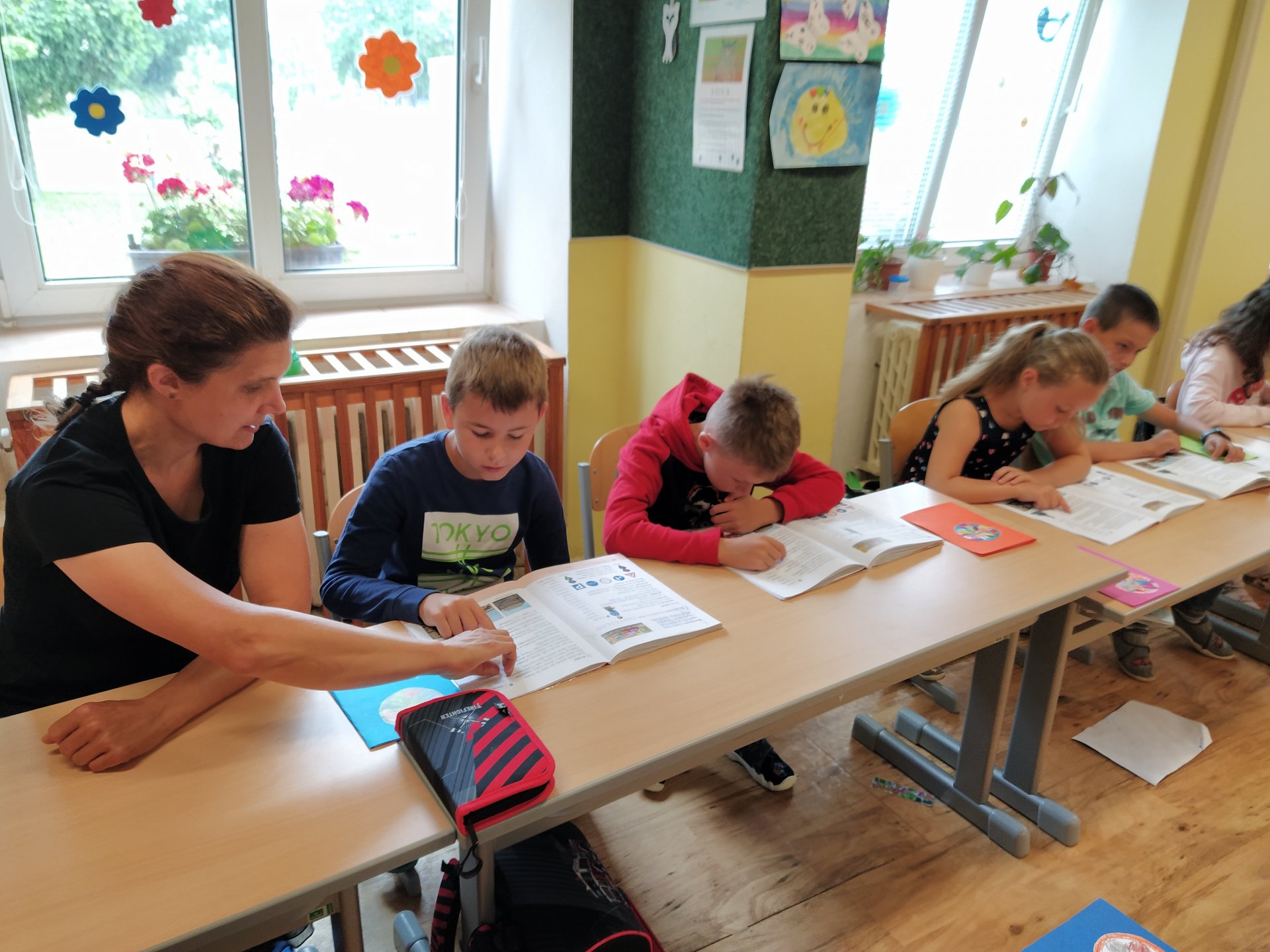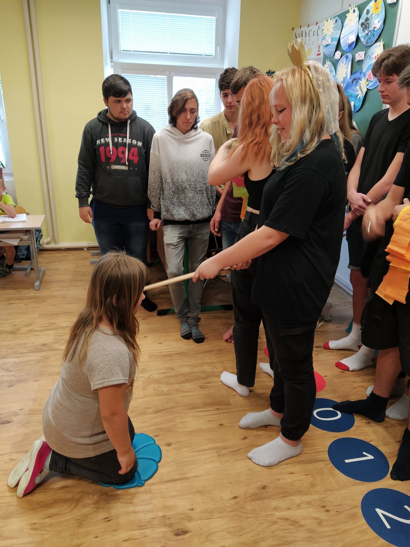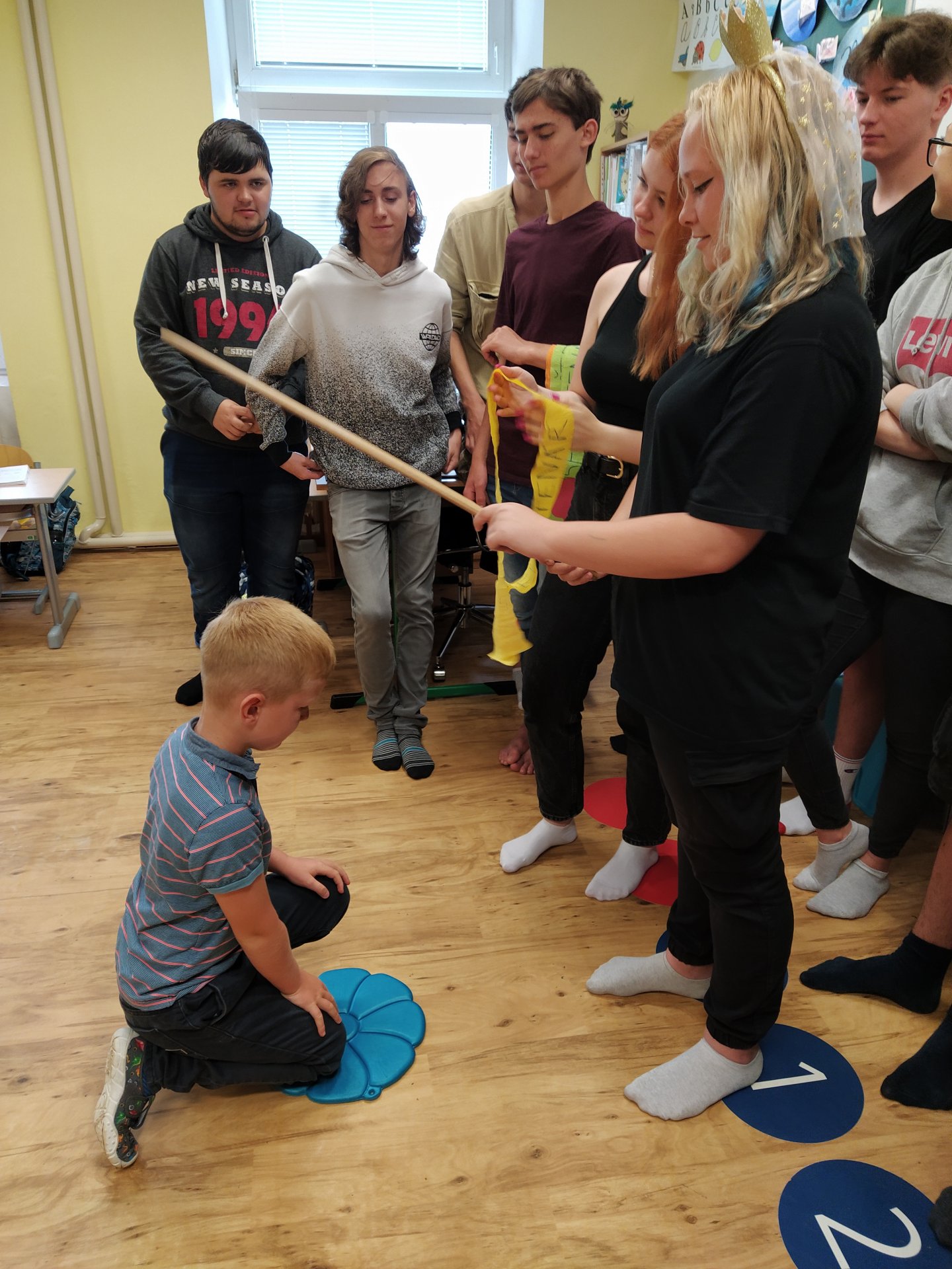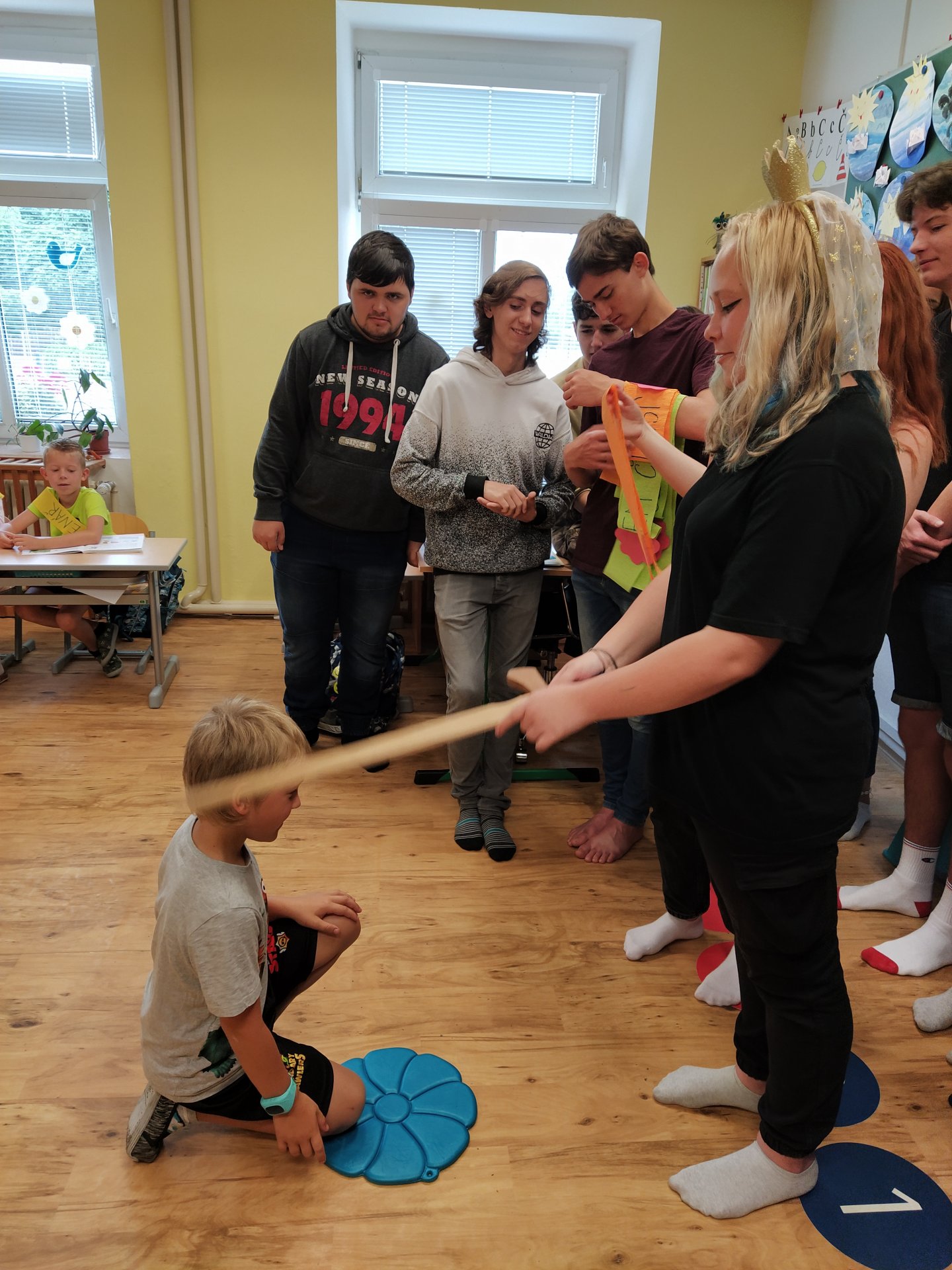 Ve středu 23.června došlo k netradičnímu setkání. Za prvňáčky přijeli ze Škvorce nejstarší žáci naší školy, deváťáci. Prvňáčci přečetli úryvek ze Slabikáře, za který je potom královna se svými pomocníky pasovala na čtenáře. Malí čtenáři dostali šerpu a záložku do knížky. Prvňáčci naopak dali každému staršímu kamarádovi na památku přání s básničkou, kterou sami napsali. Děkujeme za milou návštěvu a hezkou akci pro prvňáčky!