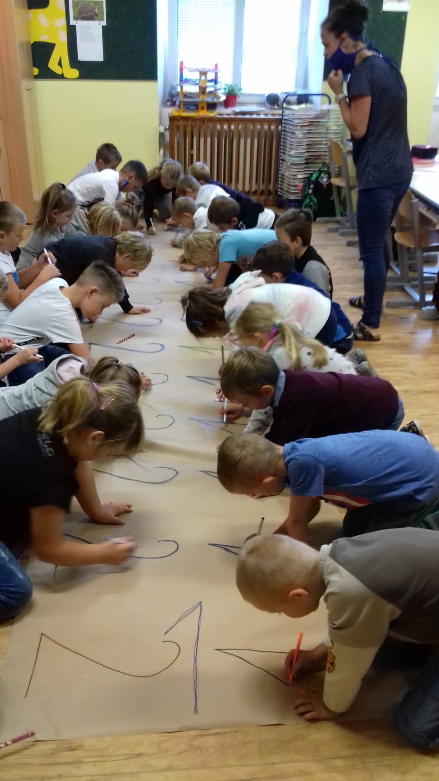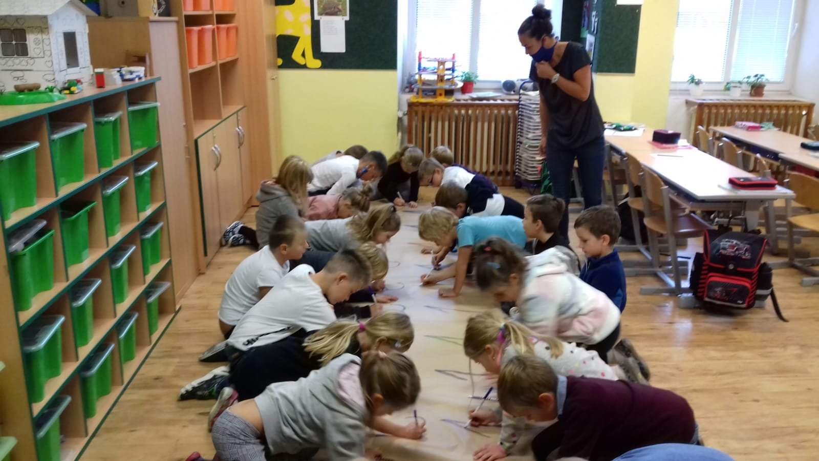 tužky, ale společný koberec se nám vydařil. Na závěr se po něm prošla paní ředitelka, která
