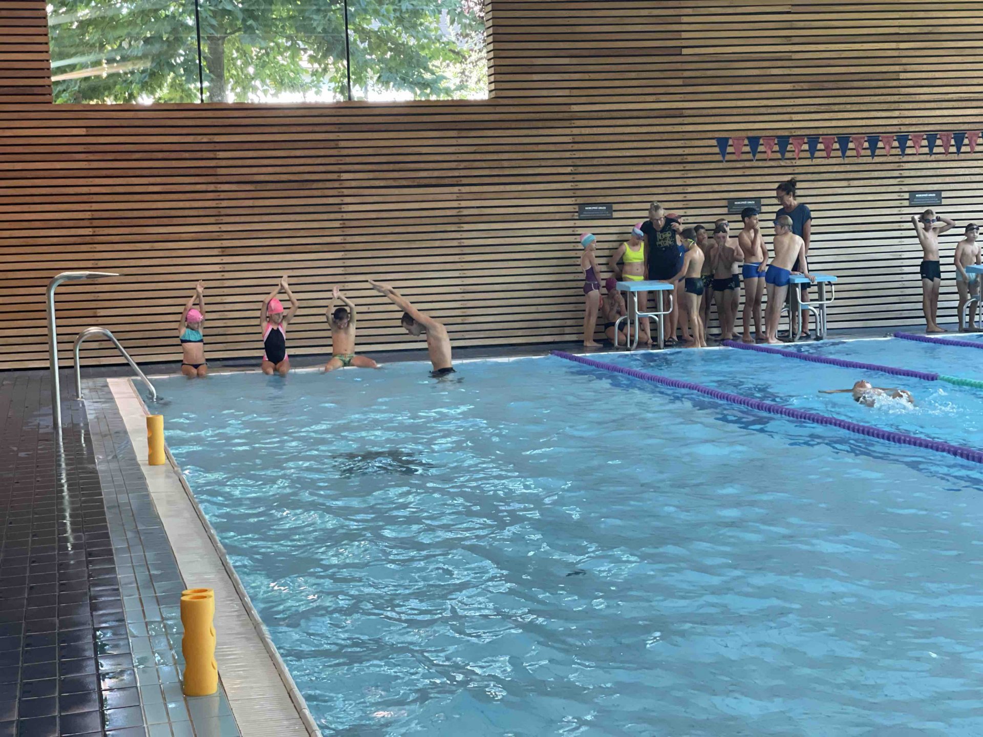 Ve čtvrtek jsme zahájili již druhý plavecký výcvik. Jelikož počasí přálo, cákání v bazénu přišlo vhod. Děti byly rozřazeny do skupin dle jejich plaveckých schopností a výcvik mohl začít. Na konci výcviku, už budou jistě všechny děti plavat jako delfínci.
