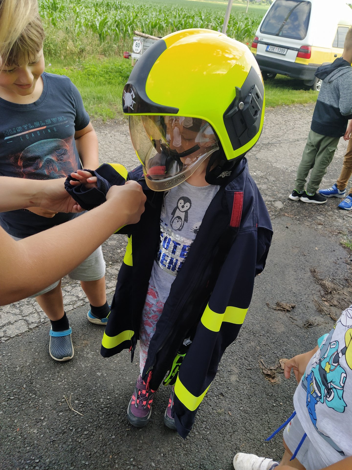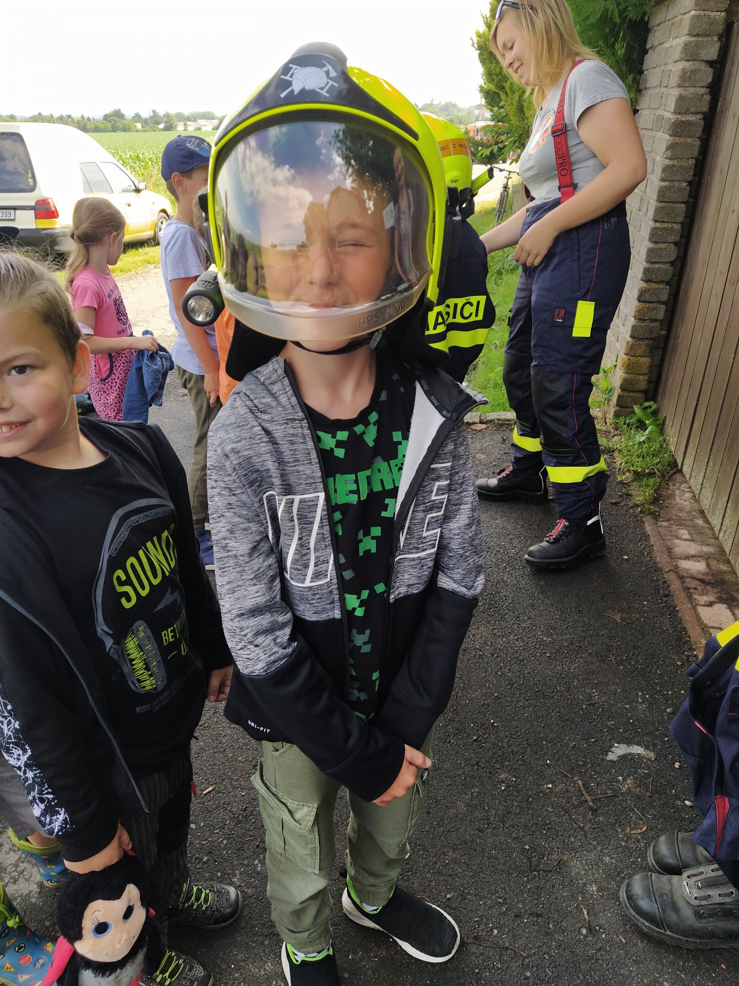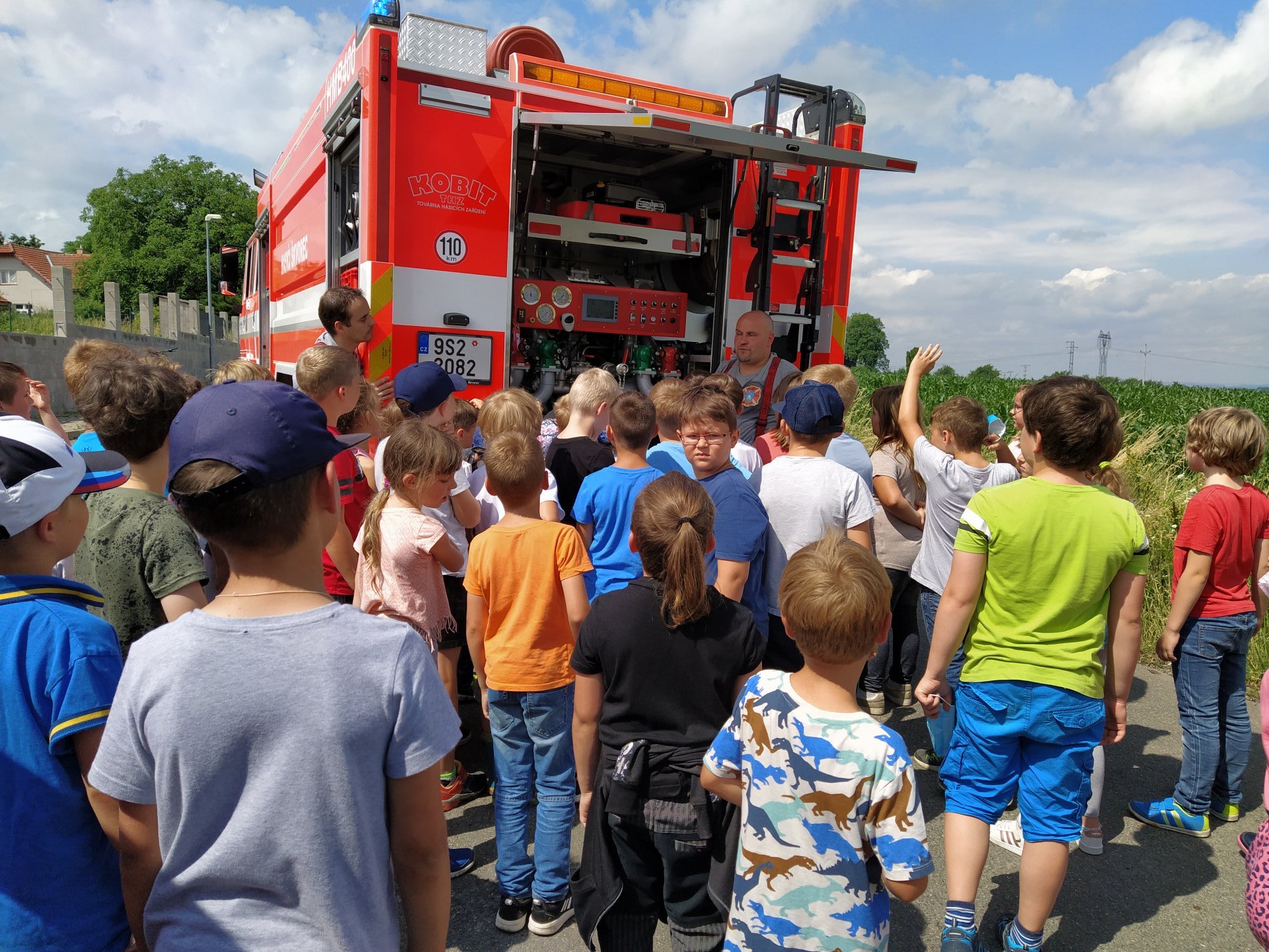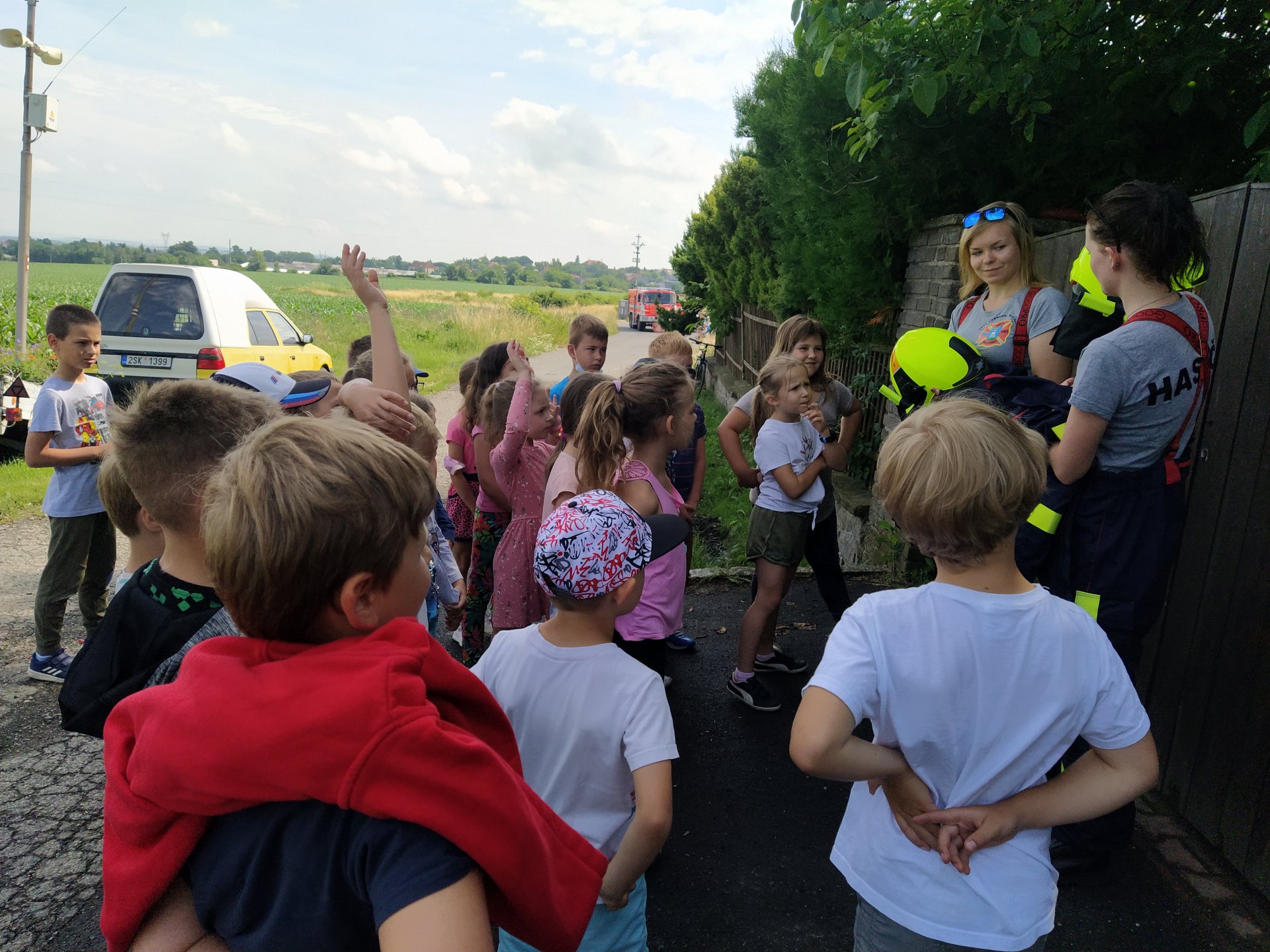 Předposlední školní den nám byl ve škole vyhlášen požární poplach. Naštěstí nikde nehořelo, šlo jen o nácvik opuštění budovy. S ostatními třídami jsme ho zvládli bez komplikací a poměrně rychle. Po návratu do tříd jsme si ještě chvilku pohráli. Od zábavy nás vyrušily hasičské sirény, které nás vylákaly na prostranství pod školou, kde nám hasička Zuzka a Týnka ukázaly hasičské oblečení, pověděly o hasičském kroužku a jejich sportovních aktivitách a soutěžích. Pak jsme se vystřídali s druhou skupinkou, kde nám hasič Honza ukázal auto a jeho veškerou výbavu. Spousta z nás se dozvěděla mnoho nových a zajímavých informací. Těšíme se na další podobné setkání, v duchu povídání, ne nutného opravdového zásahu.