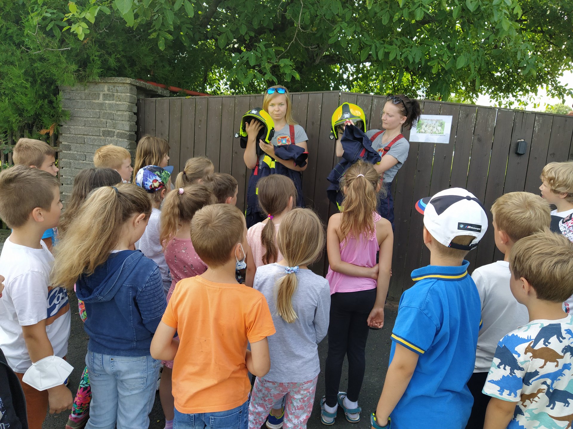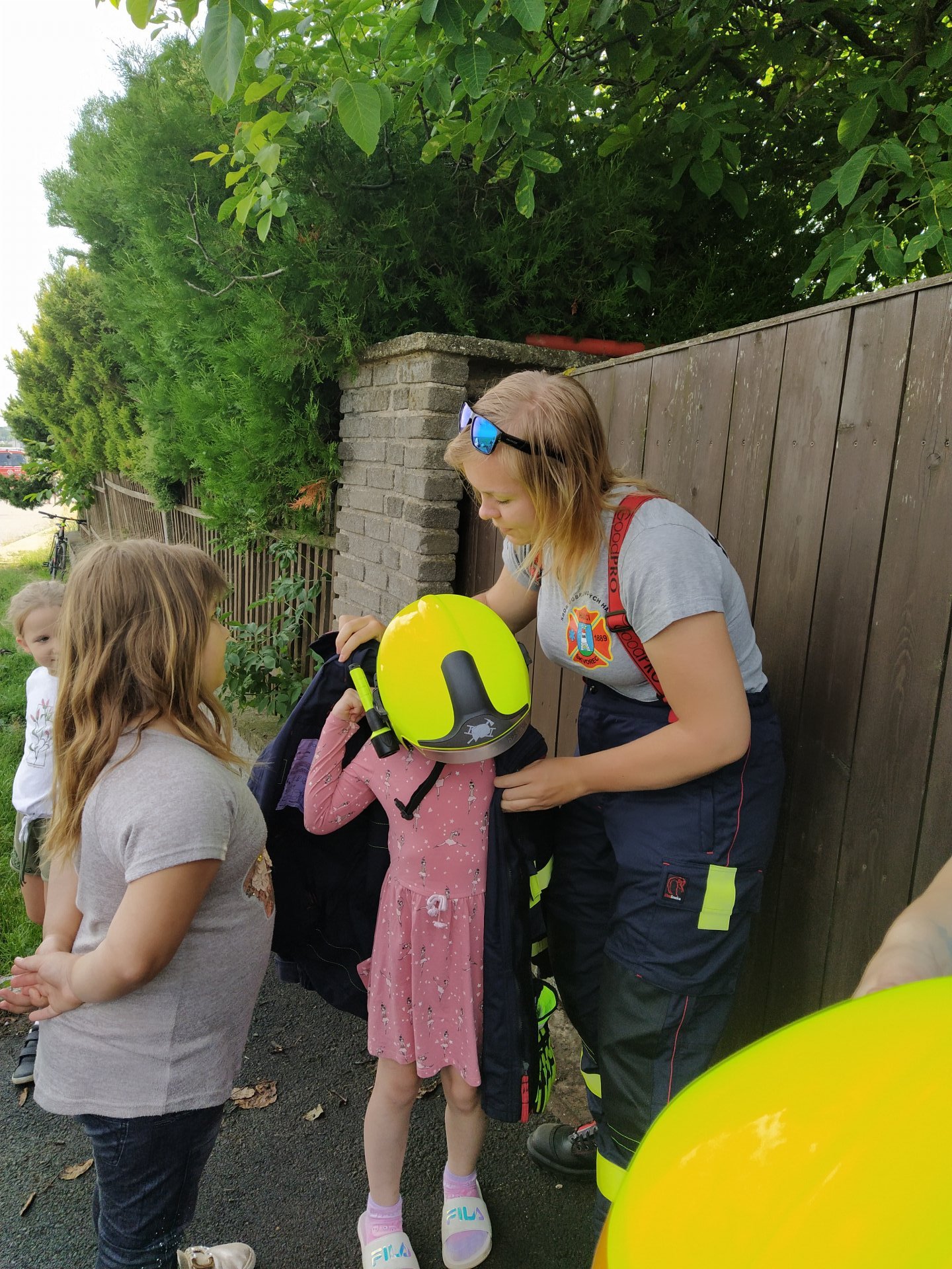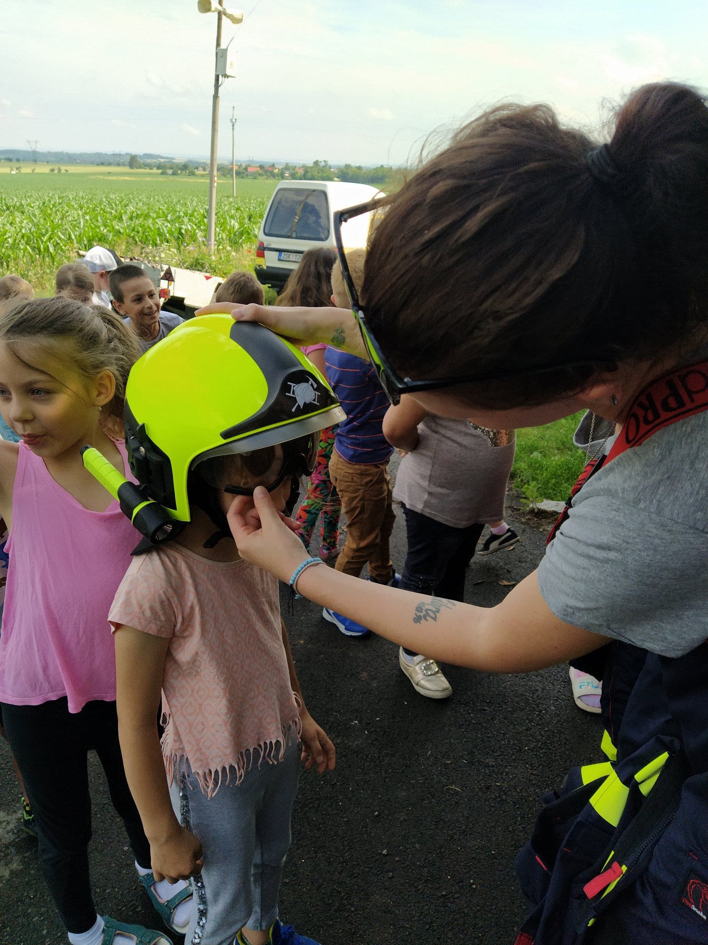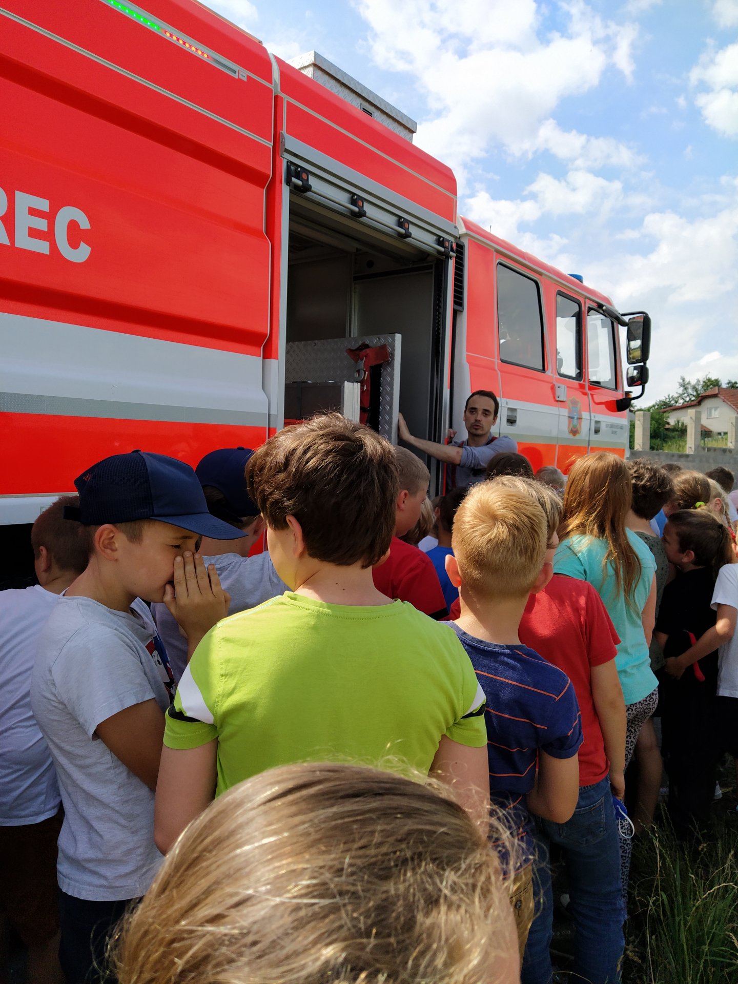 Předposlední školní den nám byl ve škole vyhlášen požární poplach. Naštěstí nikde nehořelo, šlo jen o nácvik opuštění budovy. S ostatními třídami jsme ho zvládli bez komplikací a poměrně rychle. Po návratu do tříd jsme si ještě chvilku pohráli. Od zábavy nás vyrušily hasičské sirény, které nás vylákaly na prostranství pod školou, kde nám hasička Zuzka a Týnka ukázaly hasičské oblečení, pověděly o hasičském kroužku a jejich sportovních aktivitách a soutěžích. Pak jsme se vystřídali s druhou skupinkou, kde nám hasič Honza ukázal auto a jeho veškerou výbavu. Spousta z nás se dozvěděla mnoho nových a zajímavých informací. Těšíme se na další podobné setkání, v duchu povídání, ne nutného opravdového zásahu.