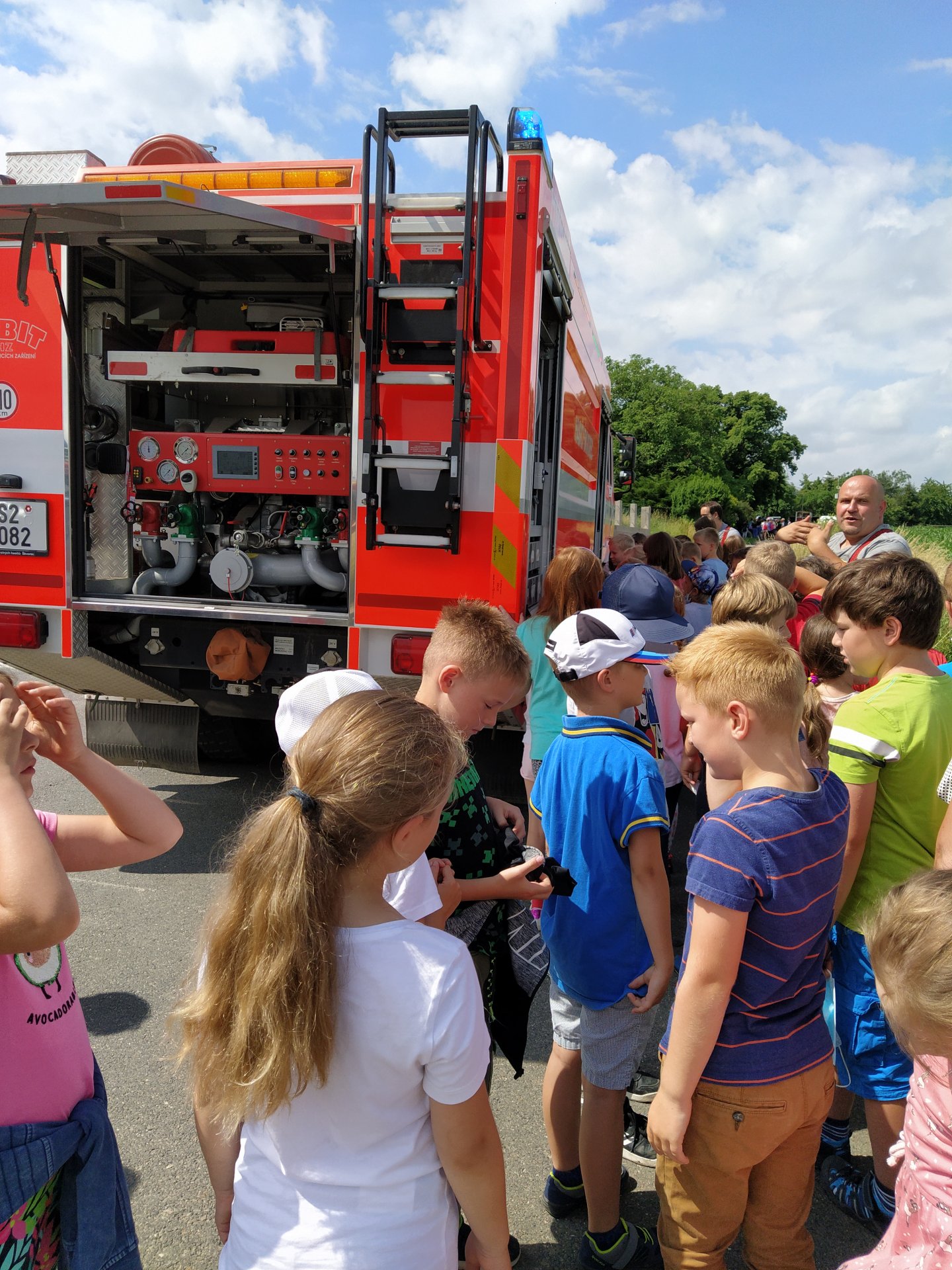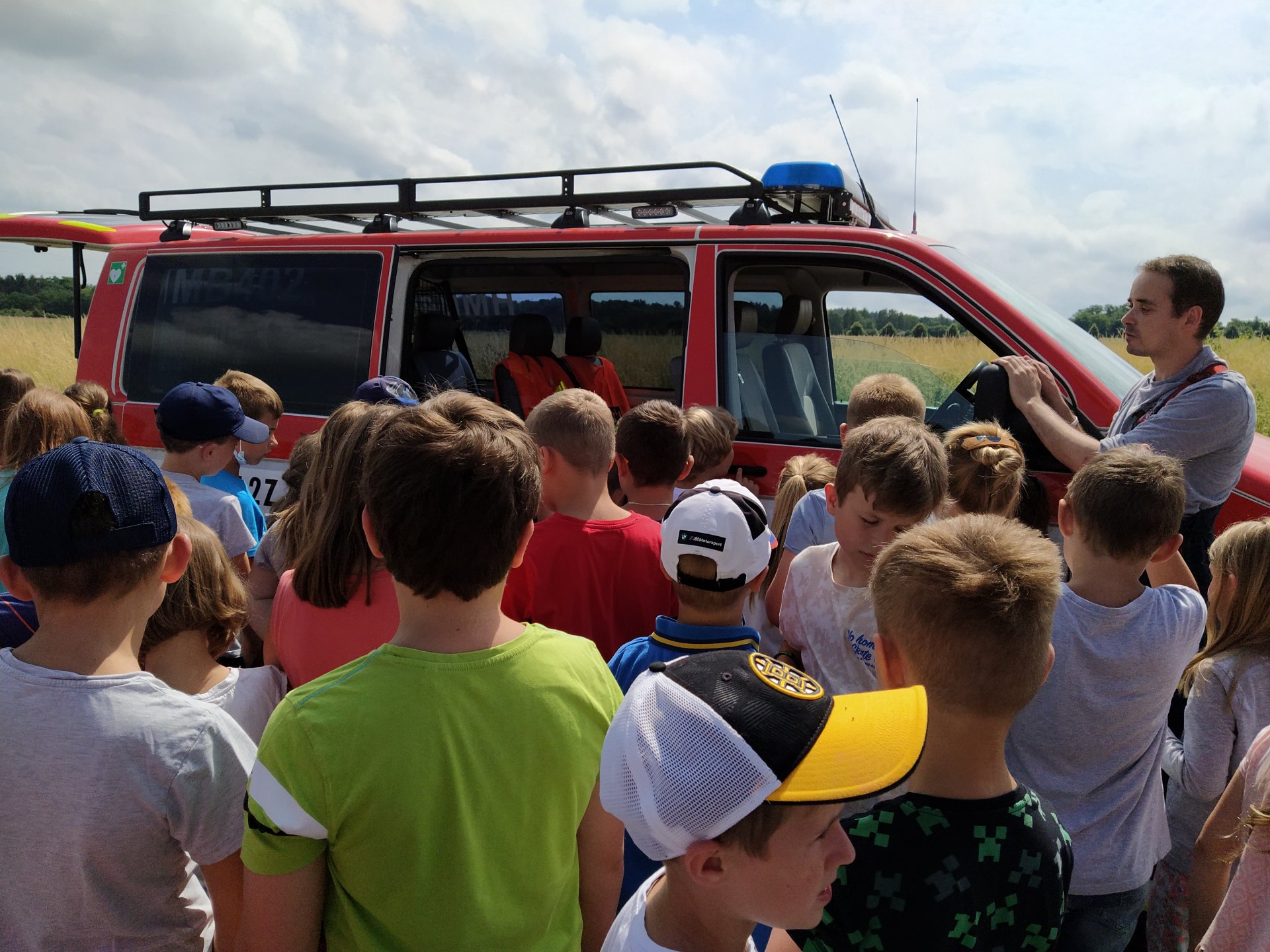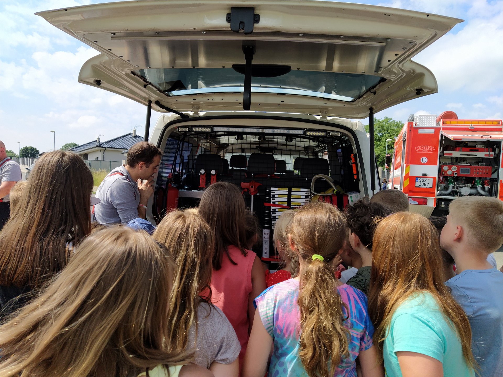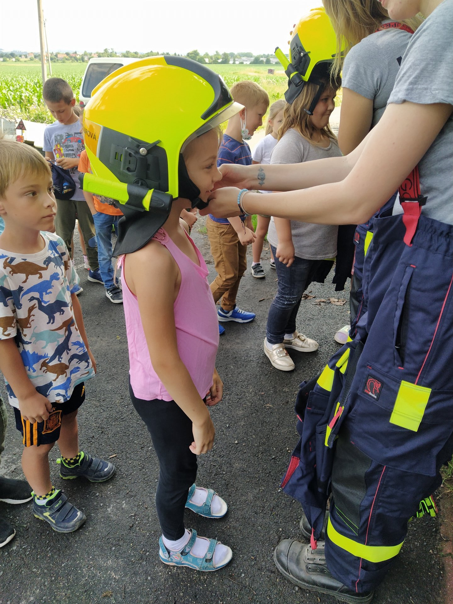 Předposlední školní den nám byl ve škole vyhlášen požární poplach. Naštěstí nikde nehořelo, šlo jen o nácvik opuštění budovy. S ostatními třídami jsme ho zvládli bez komplikací a poměrně rychle. Po návratu do tříd jsme si ještě chvilku pohráli. Od zábavy nás vyrušily hasičské sirény, které nás vylákaly na prostranství pod školou, kde nám hasička Zuzka a Týnka ukázaly hasičské oblečení, pověděly o hasičském kroužku a jejich sportovních aktivitách a soutěžích. Pak jsme se vystřídali s druhou skupinkou, kde nám hasič Honza ukázal auto a jeho veškerou výbavu. Spousta z nás se dozvěděla mnoho nových a zajímavých informací. Těšíme se na další podobné setkání, v duchu povídání, ne nutného opravdového zásahu.