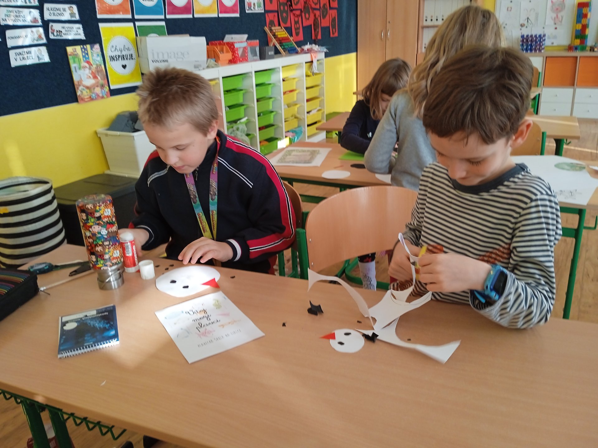 stavby minisněhuláčků. Nejen na pobyt venku a tvoření nám zbýval čas. Našli jsme