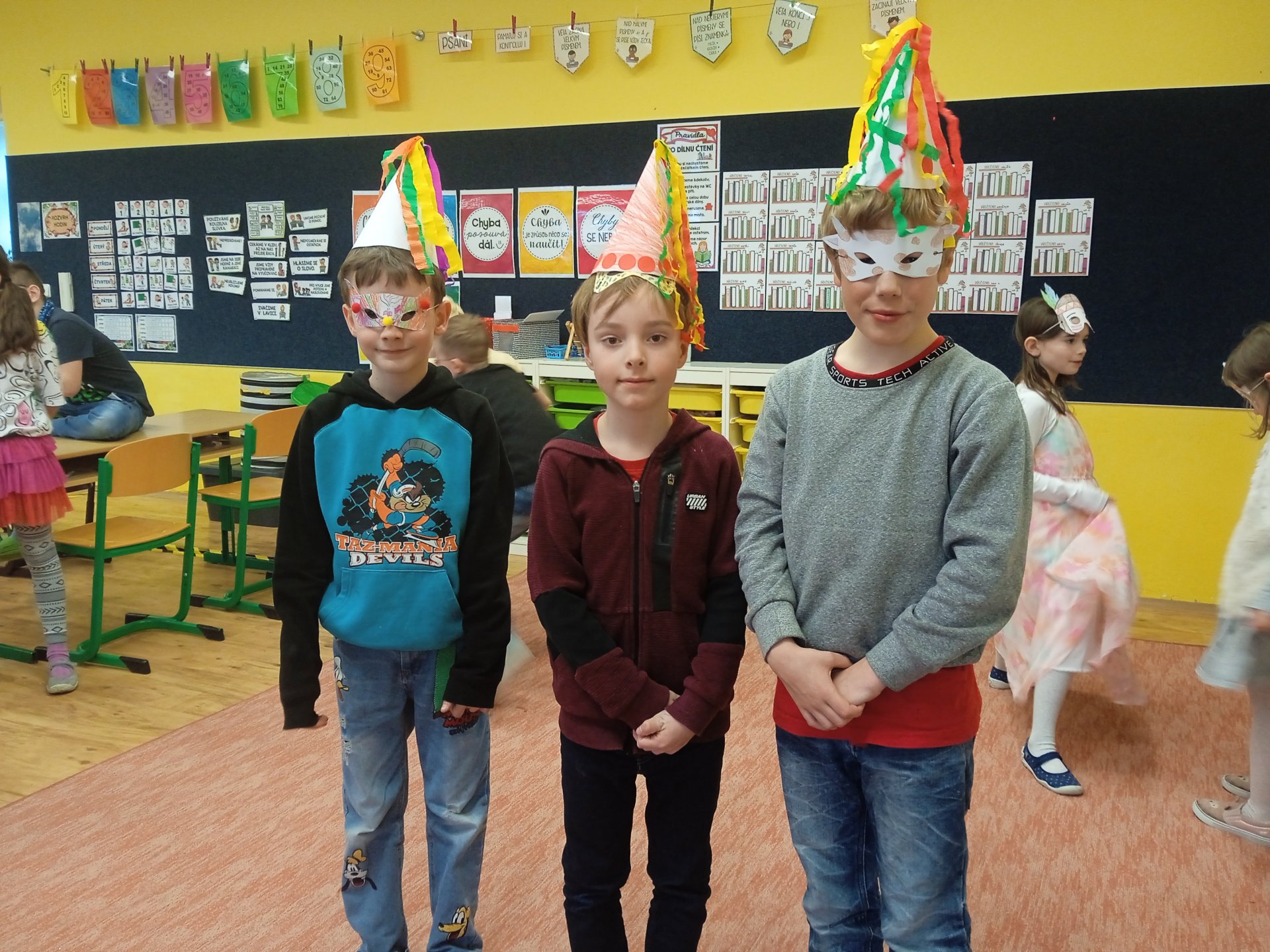 bývaly velké průvody maškar. Nejdříve jsme si sami vyrobili masopustní masky. Přečetli jsme si co je to