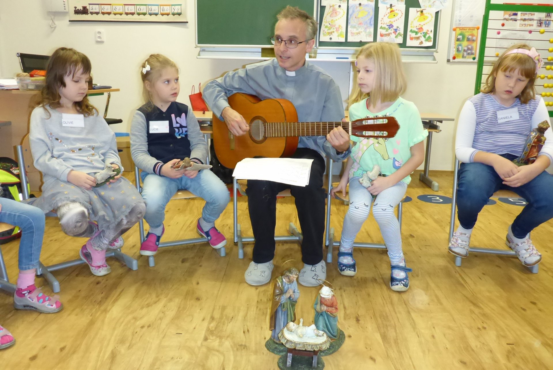 První hodinu vyplnila úžasná beseda o Vánocích od pana faráře Budského.