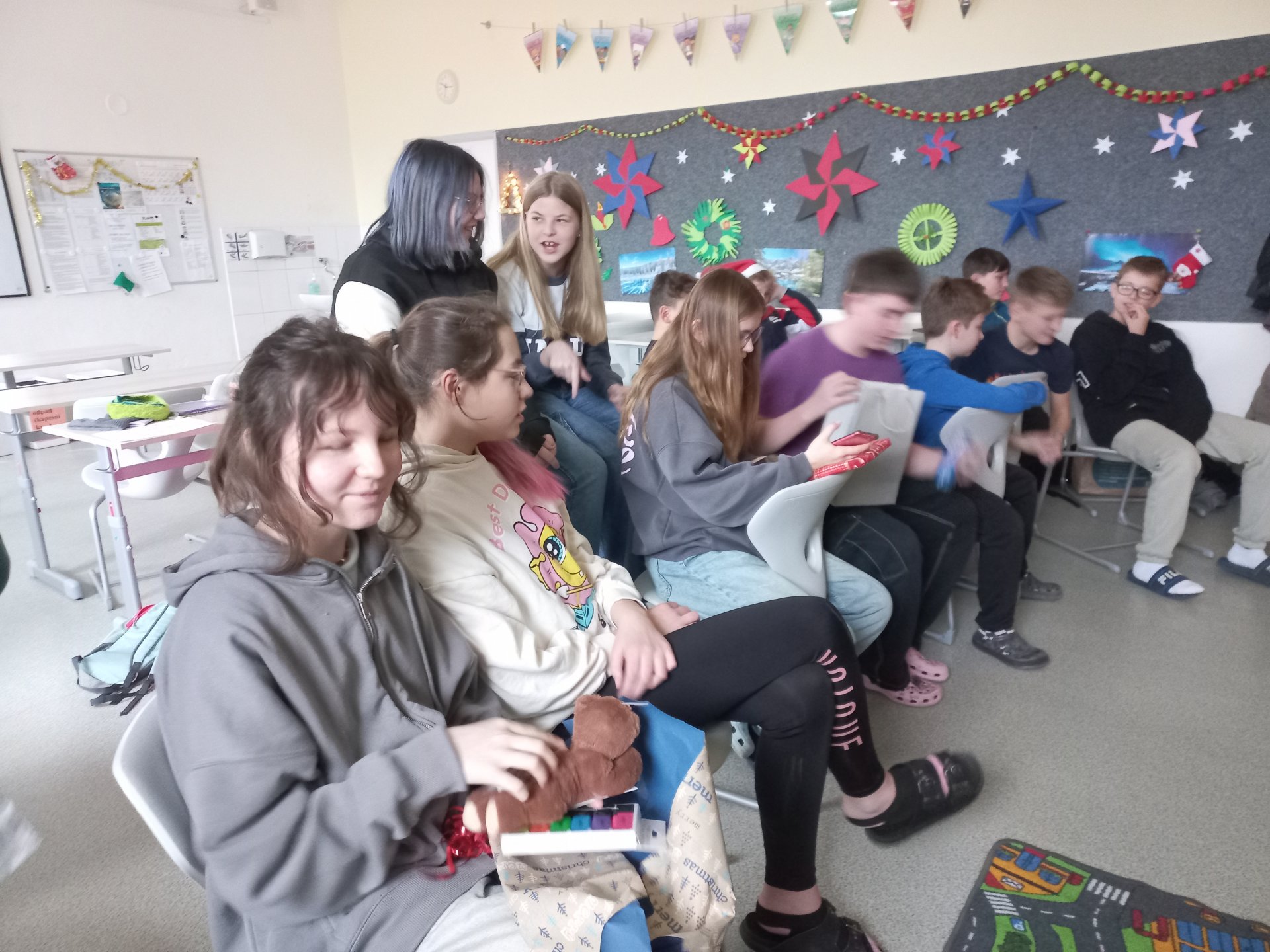 Poslední den před nástupem na vánoční prázdniny probíhal v pohodové atmosféře. Ježíšek v 7.A nechal hezké dárečky... A den jsme zakončili vánoční stezkou, která byla určena k zamyšlení nad dary - naslouchání, radosti, odvahy, bezpečí a pomoci.