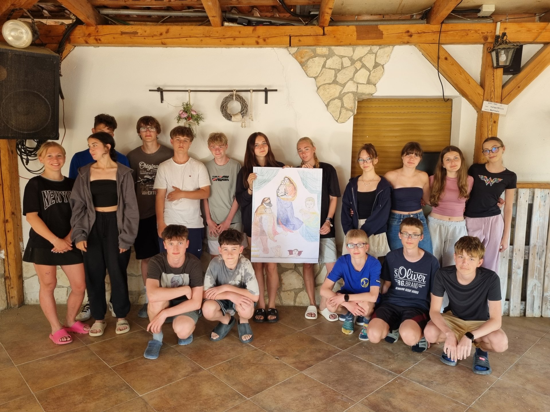 Ve středu bylo chvílemi oblačno až zataženo, a tak jsme do programu zapojili běhání. Hra formule byla rychlá a v depu přezutí bot a natankovaní vodou někdy trvalo déle než samotný běh. Pak se šlo k moři. 8. A si splnila také výšlap na Monte Seraceno a 9. A strávila dopoledne hrami na sportovišti. Odpoledne si 8. A a 9. A zaběhali formule, 6. třída malovala na kamínky a 8. B a 7. A se vrátily v čase do dob renesance a secese a jako skupina měla nakreslit známý obraz.