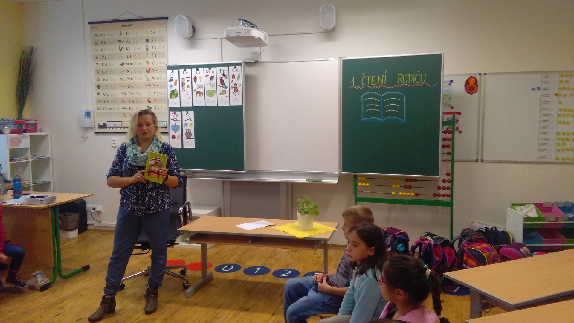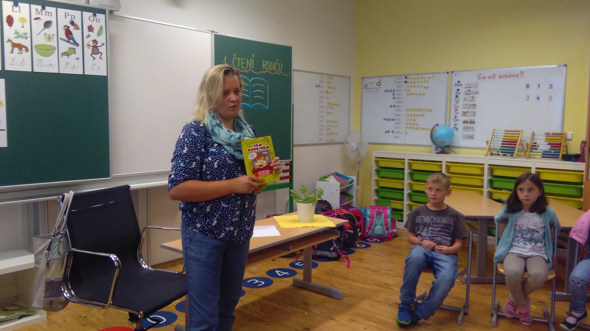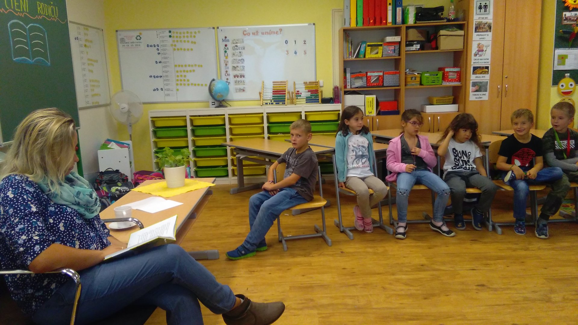Konečně nastal ten očekávaný okamžik, kdy jsme mohli v naší třídě přivítat konečně prvního rodiče, moc jsme se těšili. Navštívila nás maminka našeho spolužáka Lukáše. Prozradila nám, že vždycky ráda četla a trvá to do současné chvíle. Při veselém a zajímavém čtení jsme si uvědomili, že už konečně chceme dobře číst. S pozorností jsme poslouchali, čtení bylo poutavé, veselé i legrační. Jenom nevíme, zda bychom to opravdu vydrželi bez televize.