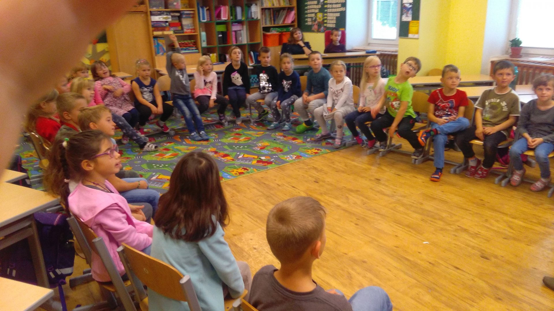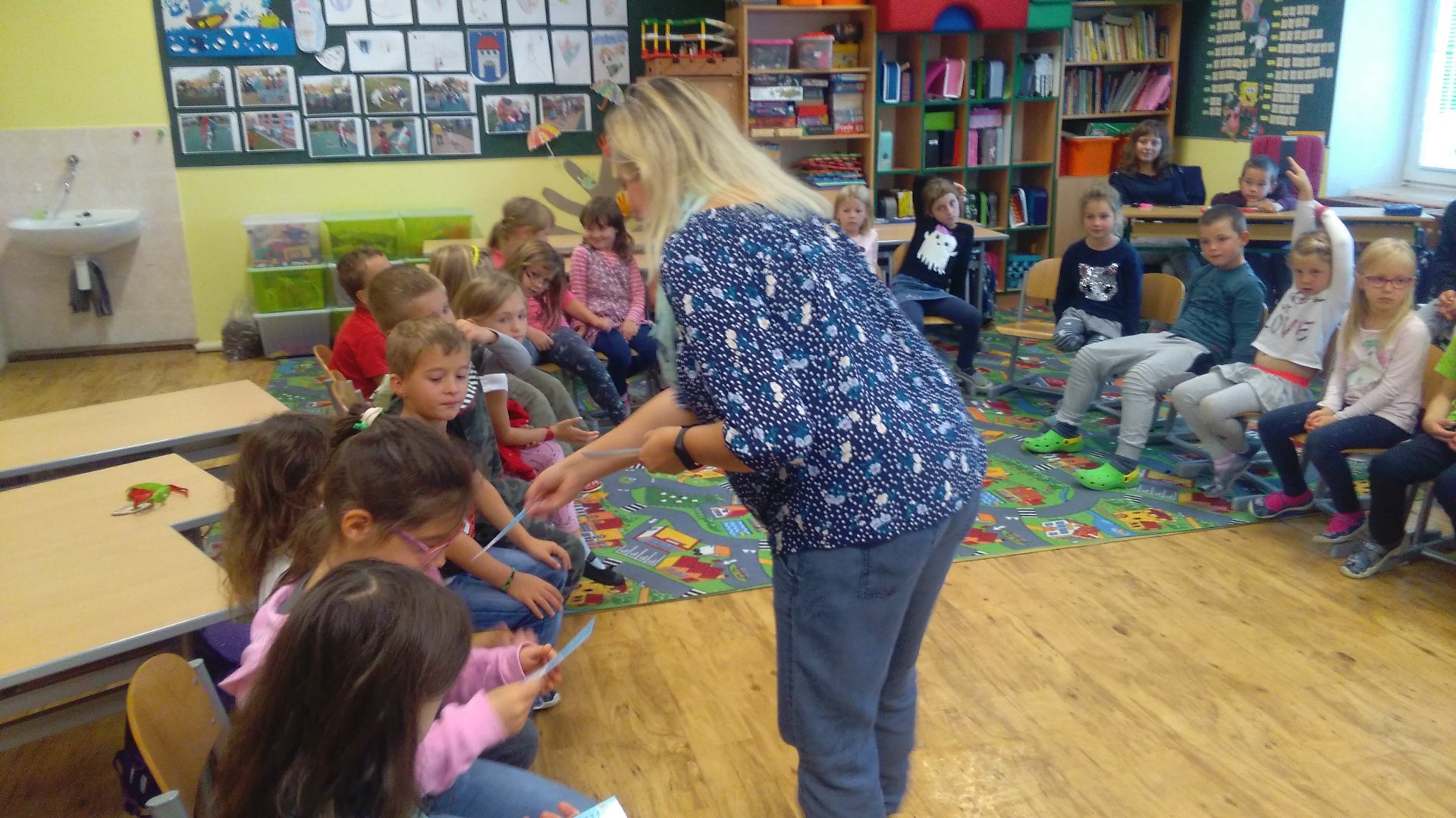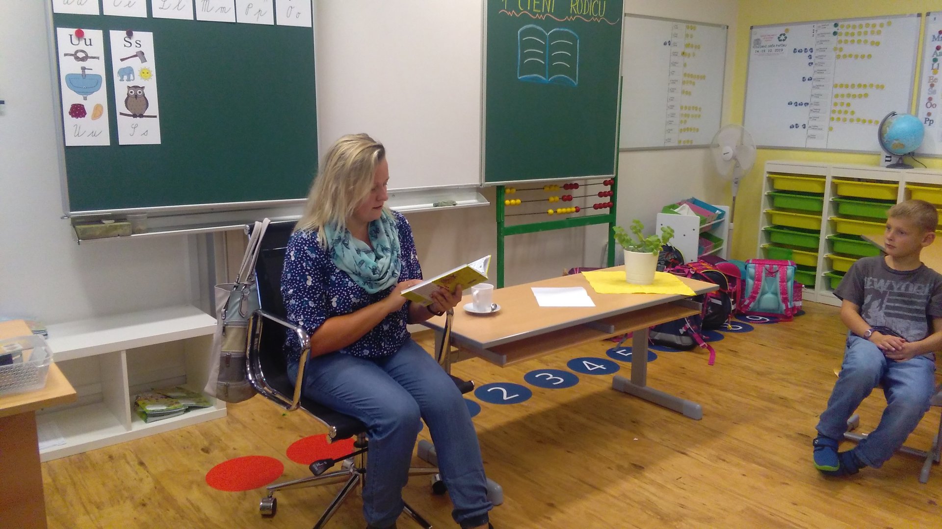 Konečně nastal ten očekávaný okamžik, kdy jsme mohli v naší třídě přivítat konečně prvního rodiče, moc jsme se těšili. Navštívila nás maminka našeho spolužáka Lukáše. Prozradila nám, že vždycky ráda četla a trvá to do současné chvíle. Při veselém a zajímavém čtení jsme si uvědomili, že už konečně chceme dobře číst. S pozorností jsme poslouchali, čtení bylo poutavé, veselé i legrační. Jenom nevíme, zda bychom to opravdu vydrželi bez televize.