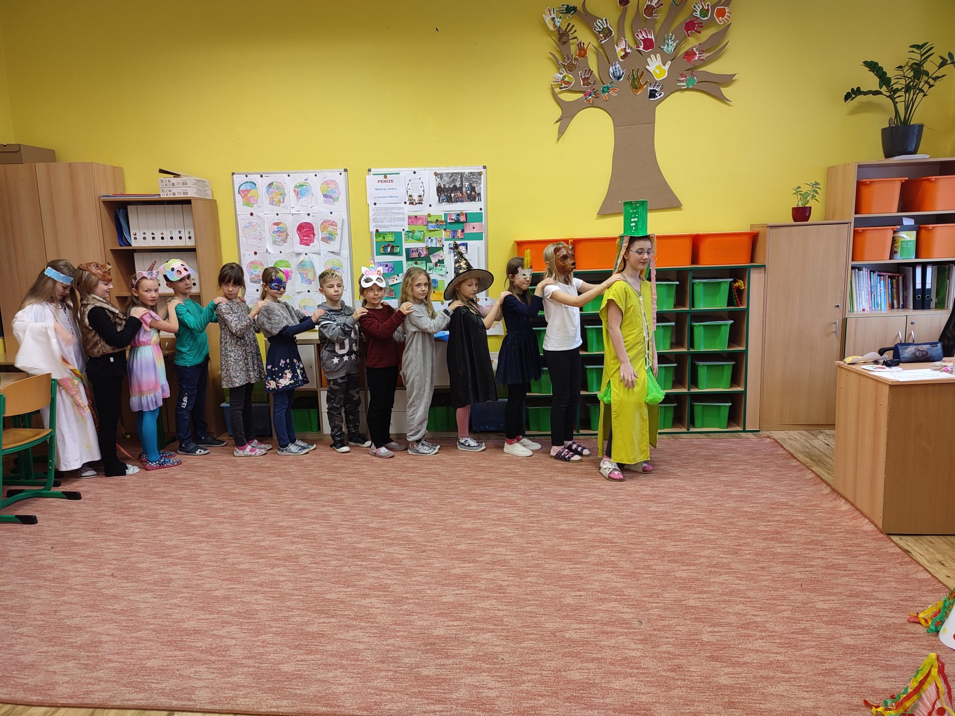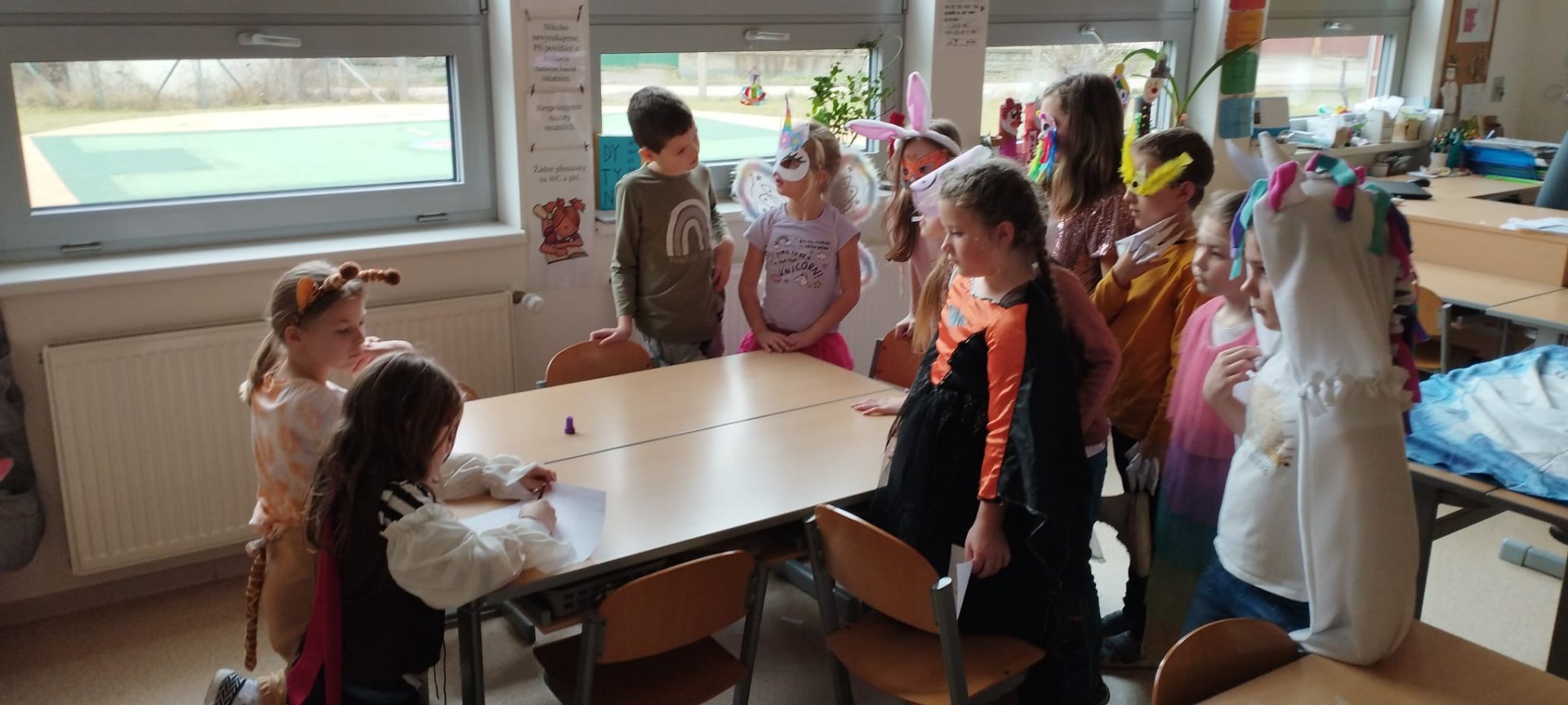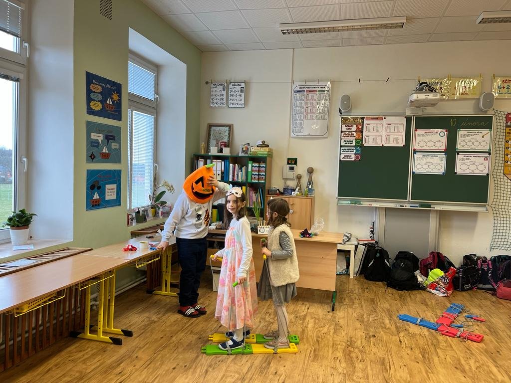 Dne 21.2.2023 si naši průzkumníci ze 4.A s paní vychovatelkou Markétkou připravili pro mladší účastníky školní družiny celodružinovou akci s názvem "Masopust".