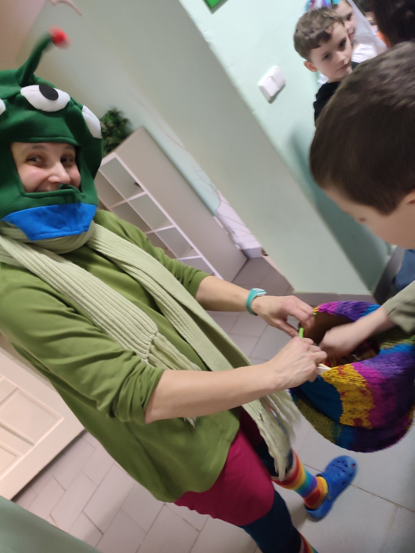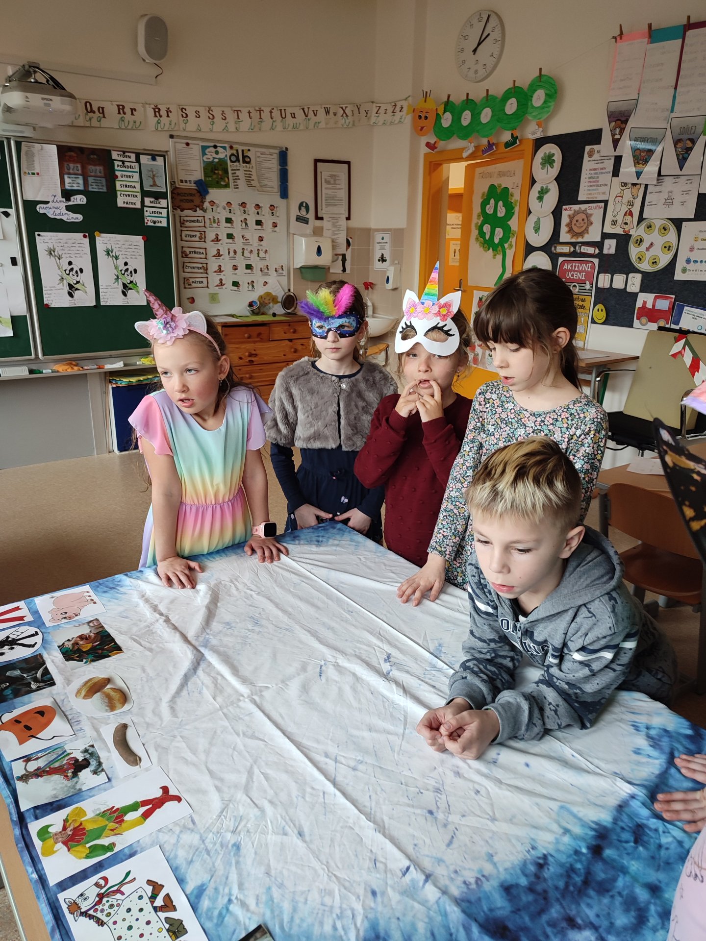 Všechny úkoly byly provázané s Masopustem. Úkoly byly moc pěkně zpracované. Naším průvodcem byl Ferda (krásný a mnohobarevný).