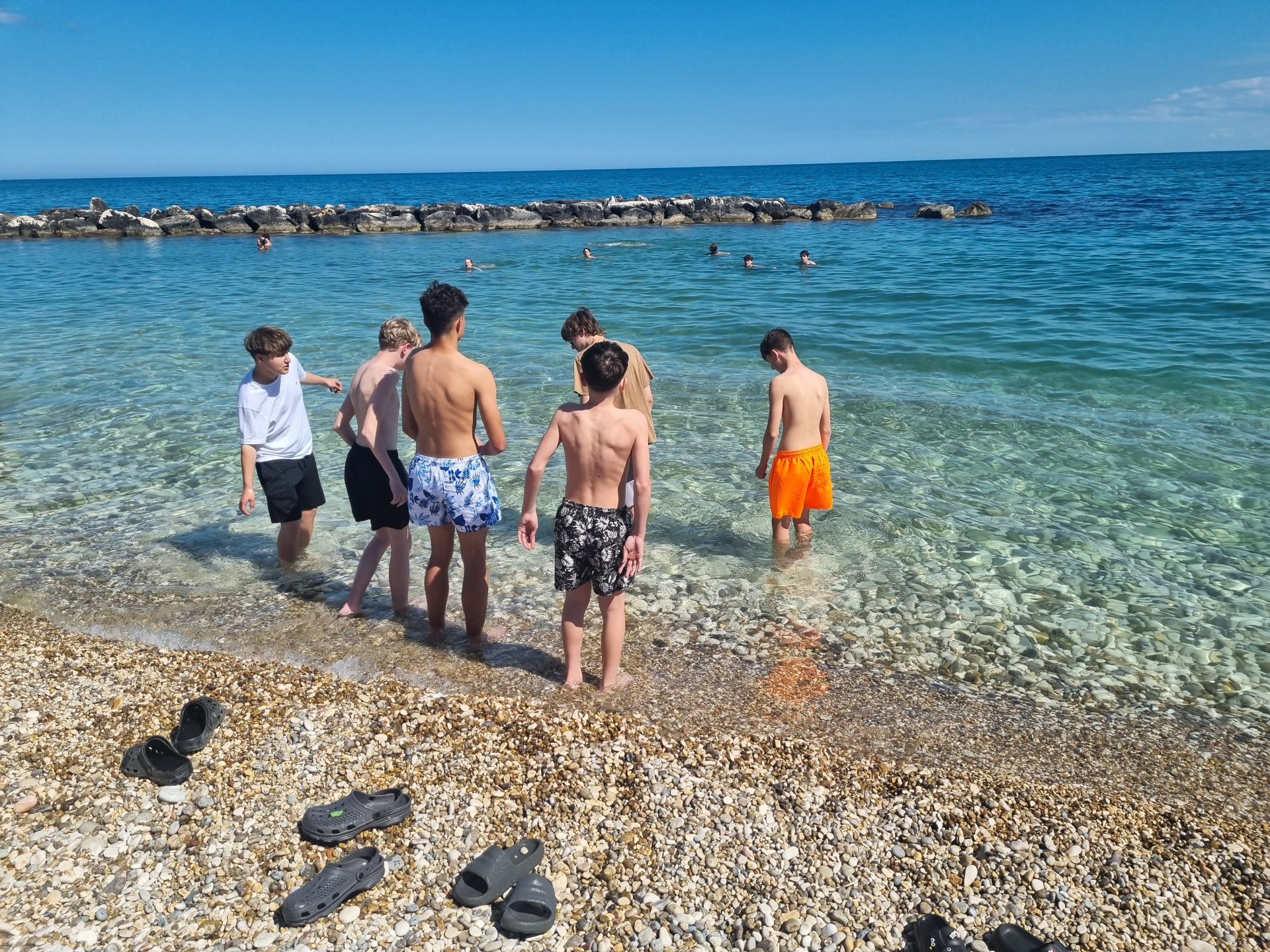 První pozdrav od moře. Cesta byla dlouhá, ale všichni ji zvládli bez problémů. Děti bydlí v chatičkách a nejvíc se těší na moře. Dopoledne i odpoledne pro zpestření je věnováno sportovním aktivitám na hřištích a informacím o Itálii. Zvládli jsme oslavit i narozeniny dvou dětí a fandit večer hokeji.