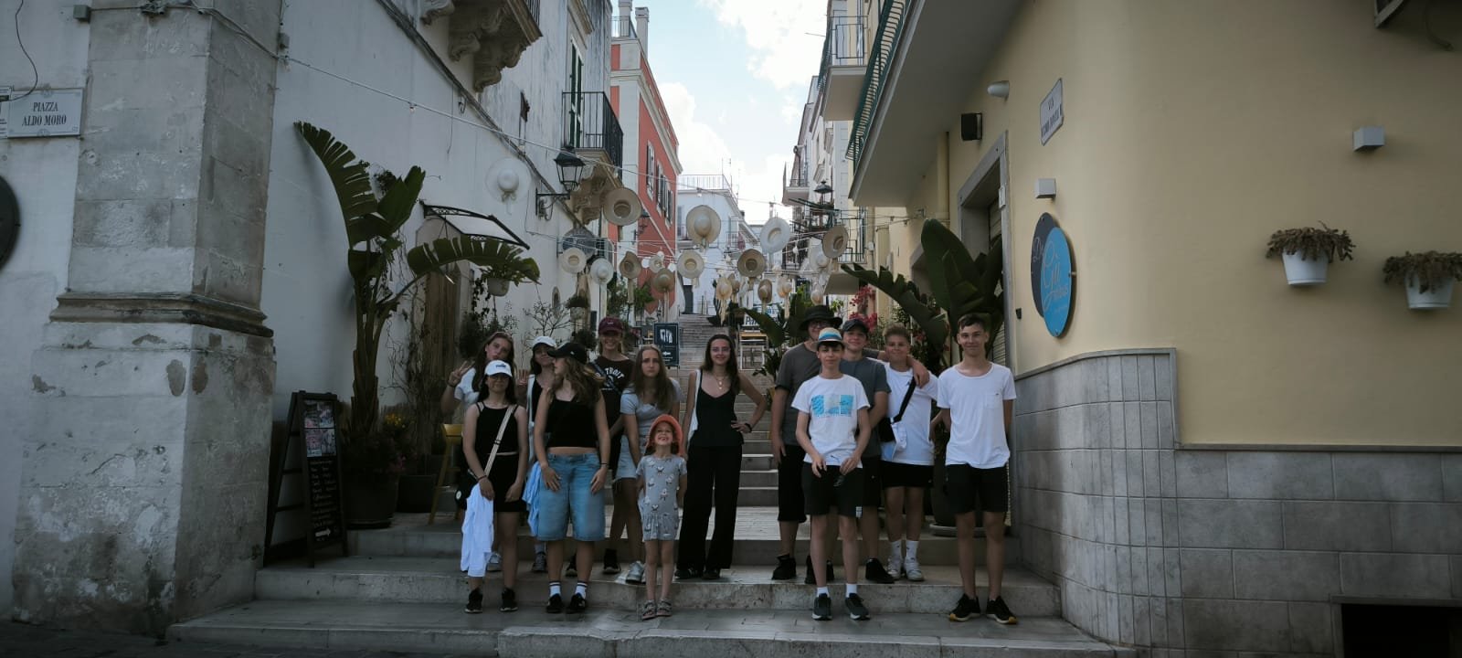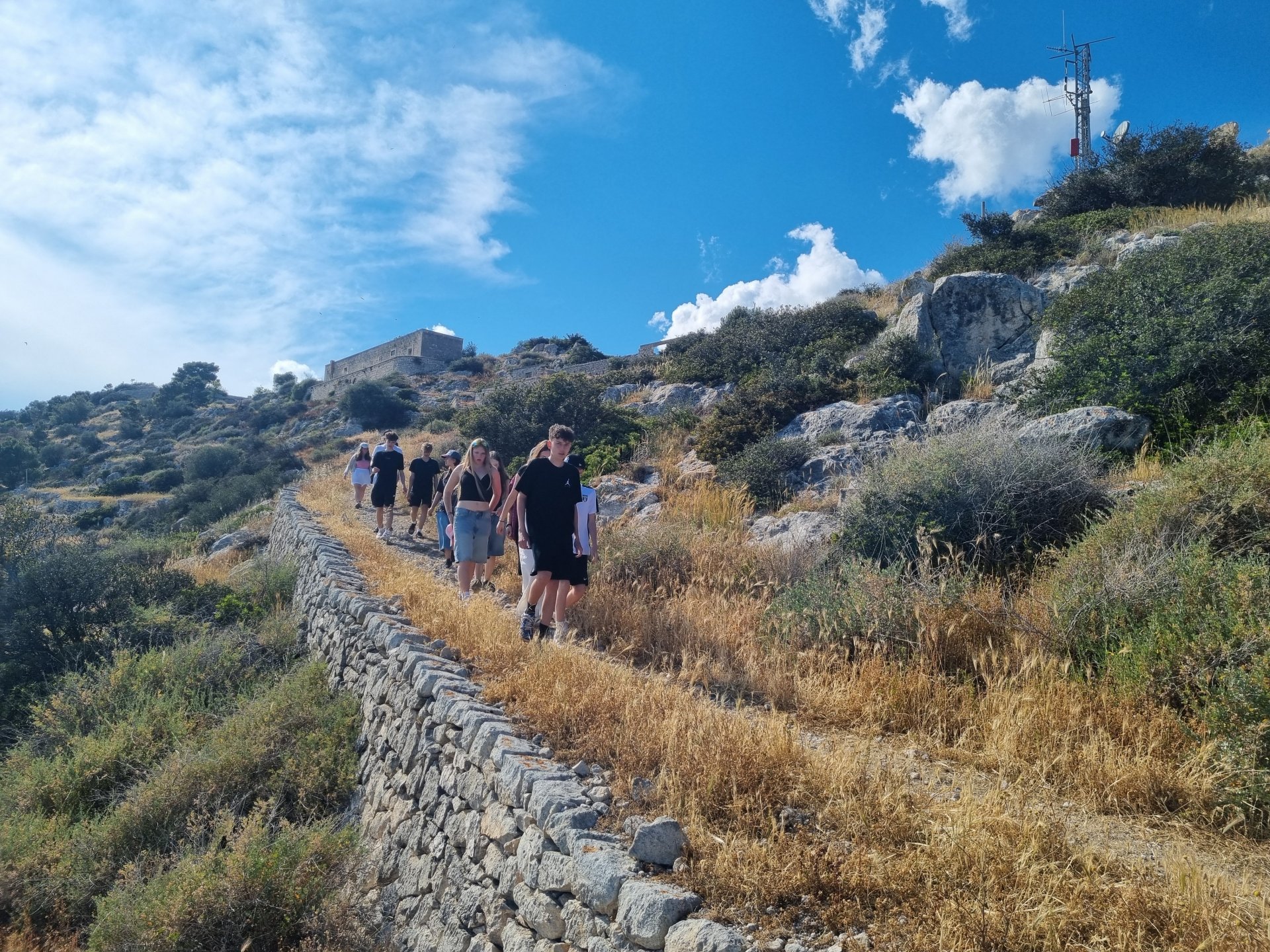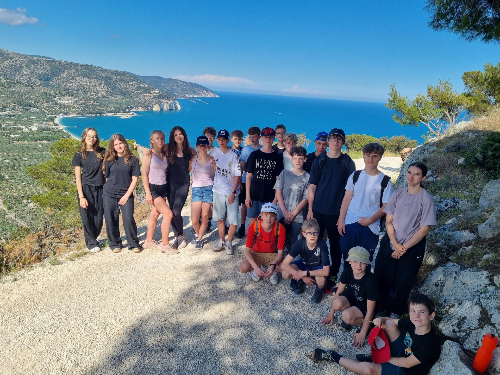 V pondělí bylo od rána krásně, a tak jsme se vydali všichni na koupání a opalování k moři. Během polední siesty nás překvapil krátký déšť. Po odpoledním klidu jsme se vydali na vyhlídku na blízký kopec a ti statečnější došli až na zříceninu Monte Saraceno, která je 260 m n. m. Třída 8. A šla prozkoumat městečko Mattinata.