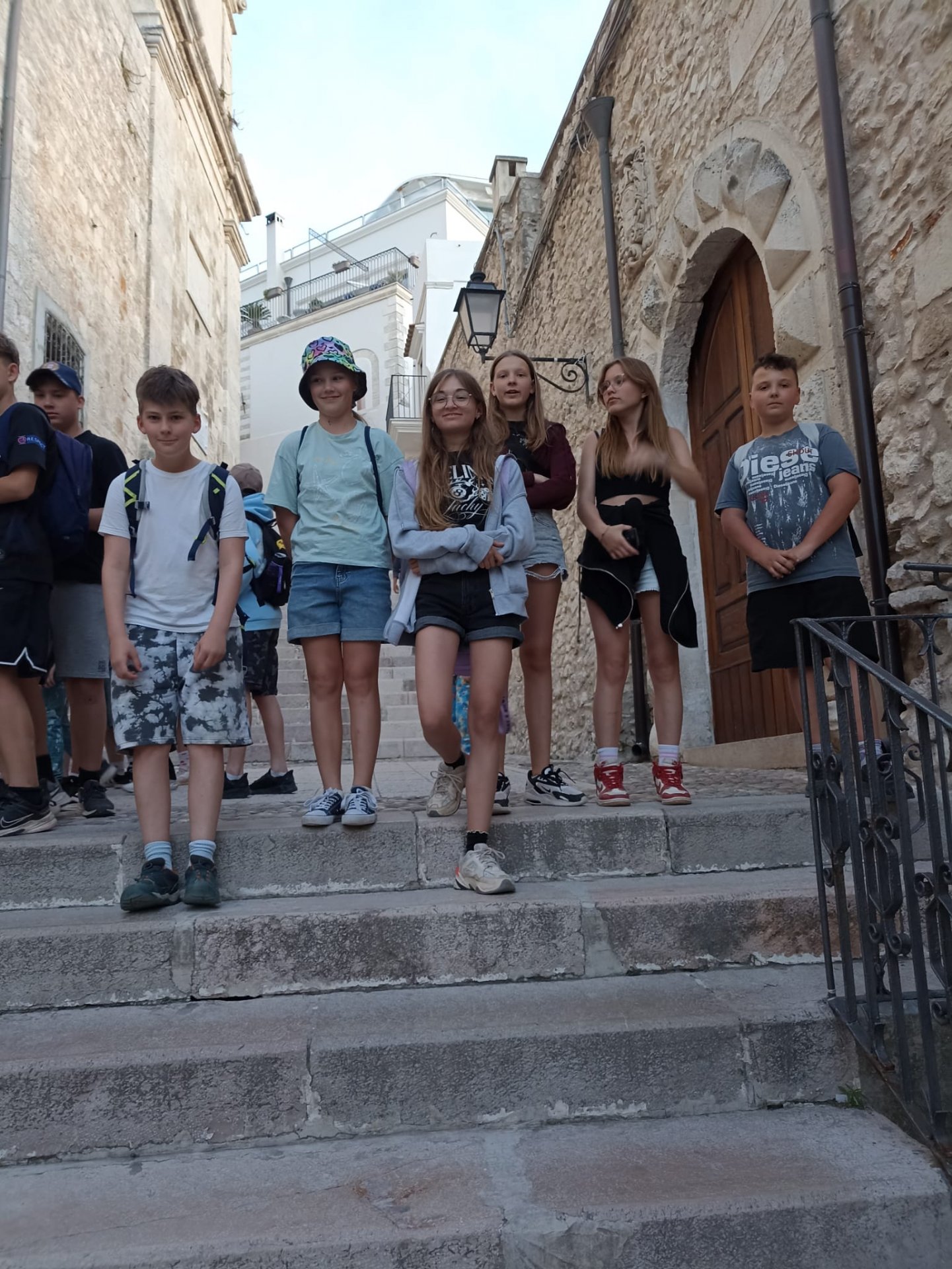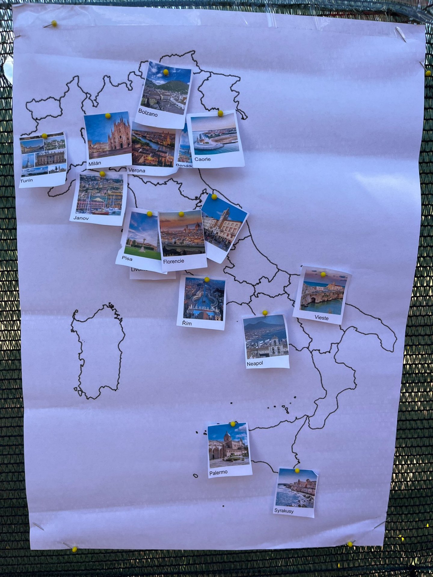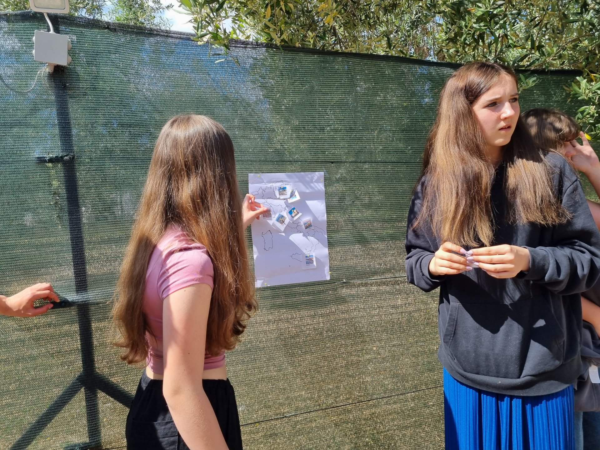V úterý jsme se věnovali mapě a největším městům v Itálii. Třídy byly rozděleny na "navigátory" a zbytek týmu umisťoval města špendlíkem. Smyslem hry byla spolupráce. A všem se hra povedla a místa umístili dobře. Pak jsme se zbytek dopoledne koupali. Odpoledne jsme všichni prošli rychlokurzem italštiny, protože půlku skupiny čekal výlet do města Vieste a 9. A šla do Mattinati.