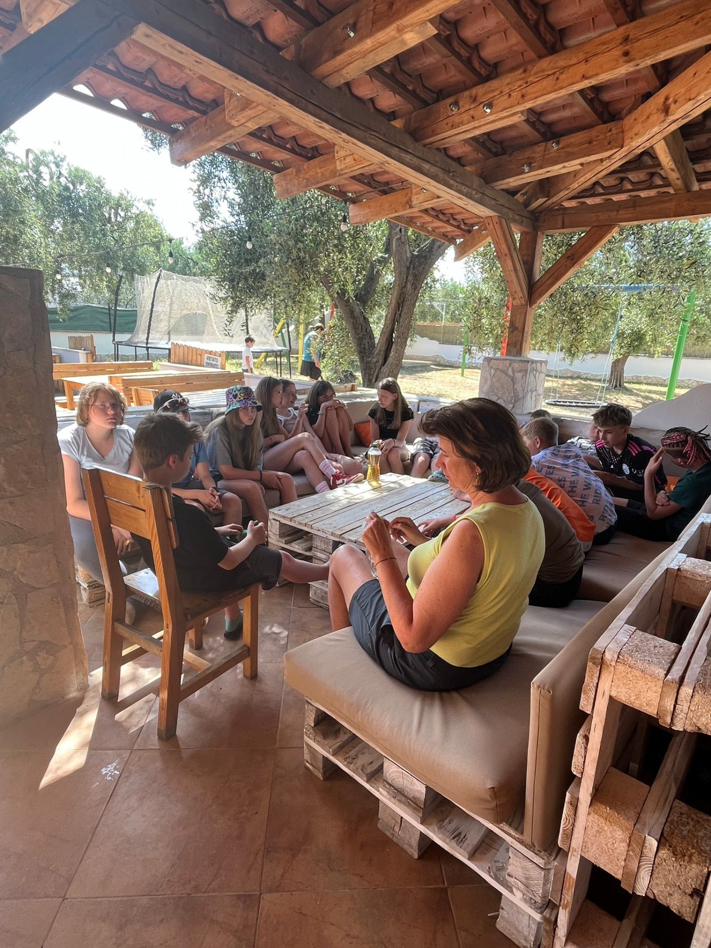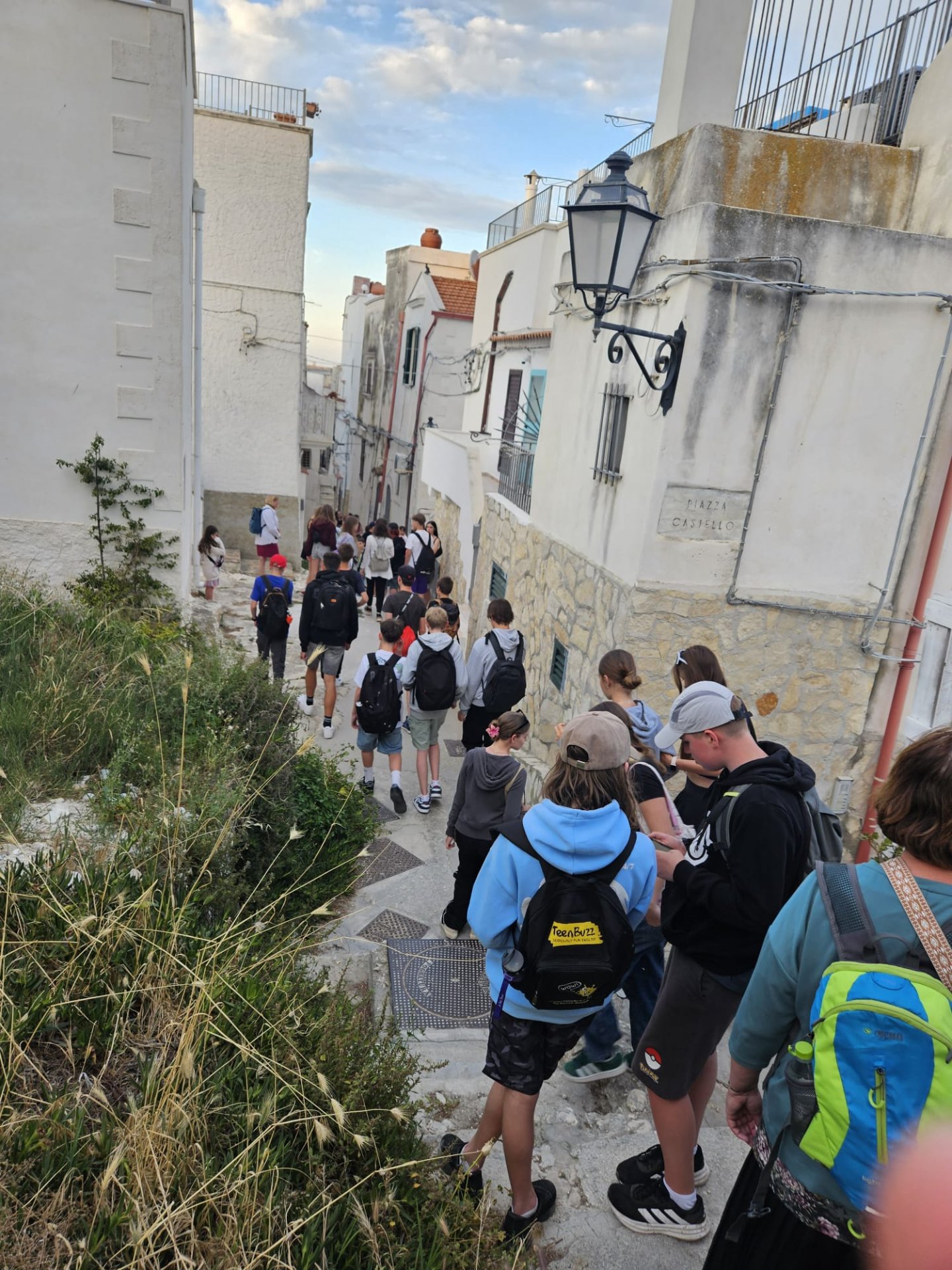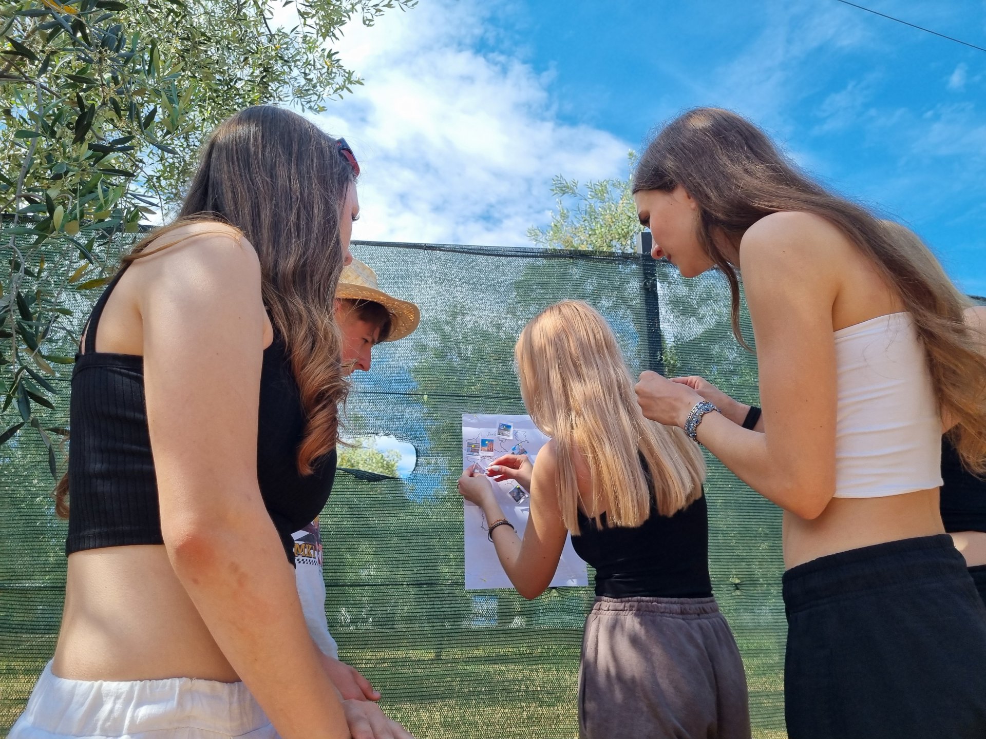 V úterý jsme se věnovali mapě a největším městům v Itálii. Třídy byly rozděleny na "navigátory" a zbytek týmu umisťoval města špendlíkem. Smyslem hry byla spolupráce. A všem se hra povedla a místa umístili dobře. Pak jsme se zbytek dopoledne koupali. Odpoledne jsme všichni prošli rychlokurzem italštiny, protože půlku skupiny čekal výlet do města Vieste a 9. A šla do Mattinati.