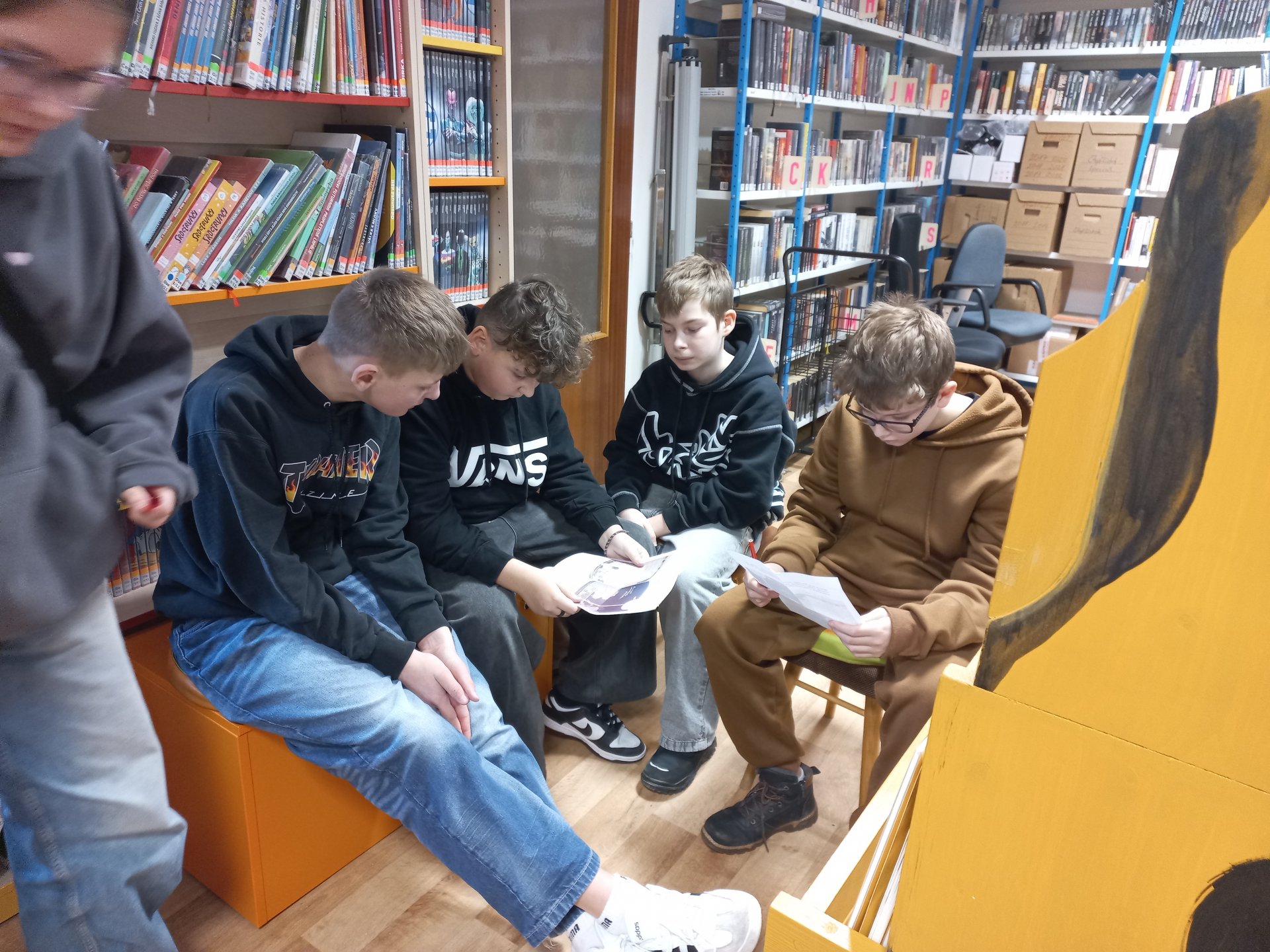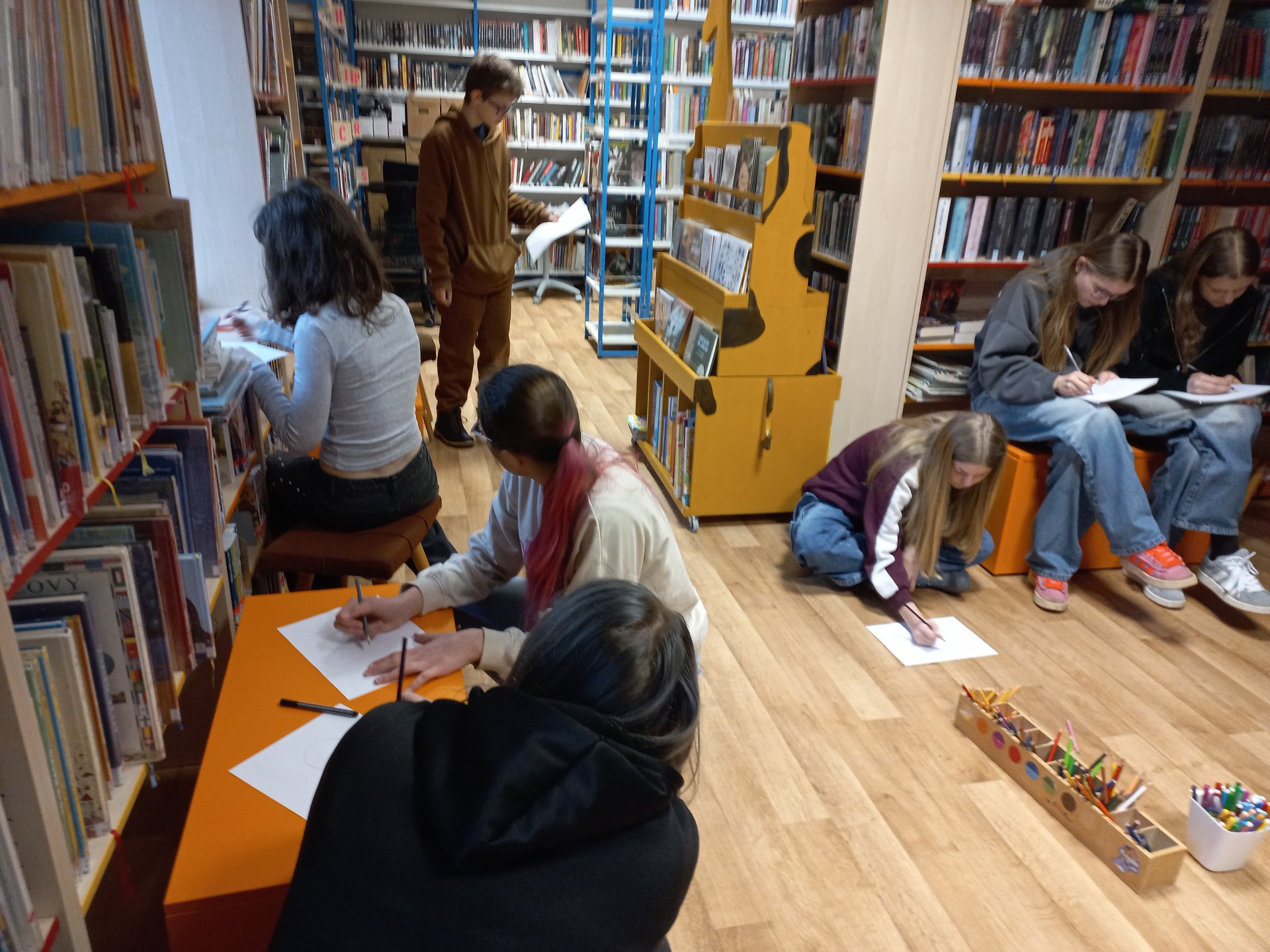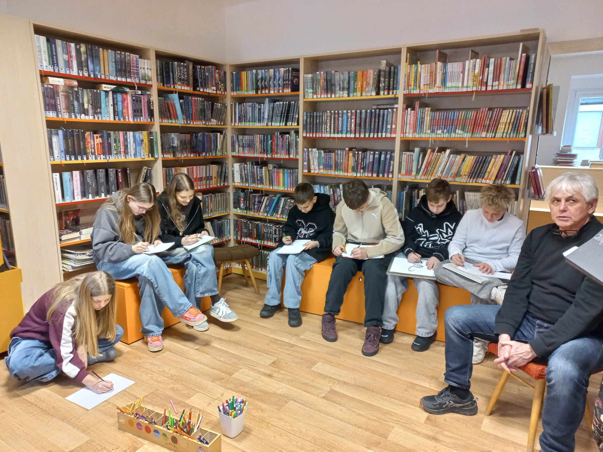 Na začátku února byli žáci 7.A s panem učitelem Kotingem na exkurzi v knihovně. Paní knihovnice měla pro děti připravený zajímavý program. Tentokrát se žáci dozvěděli něco více o tom, co je dystopický román. Ve skupinkách plnili také různé úkoly.