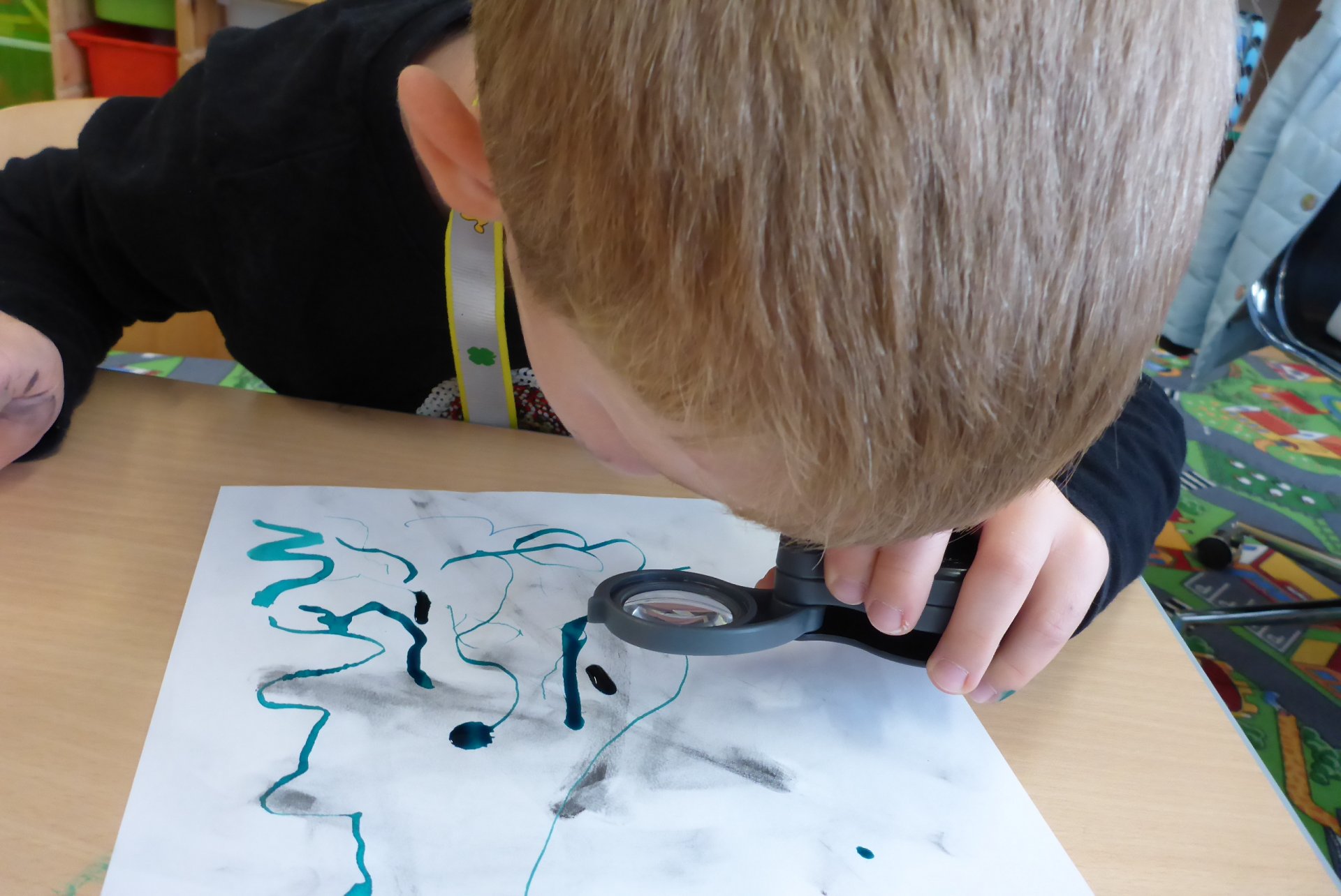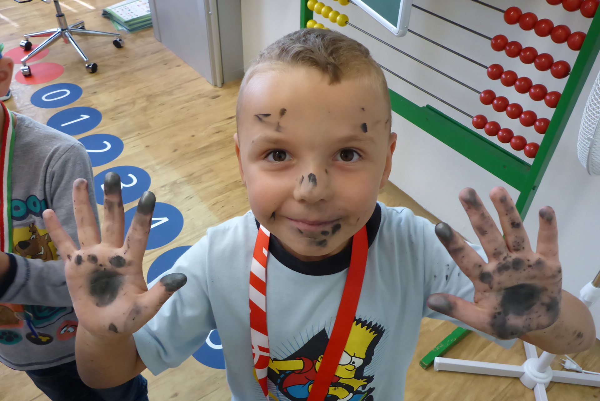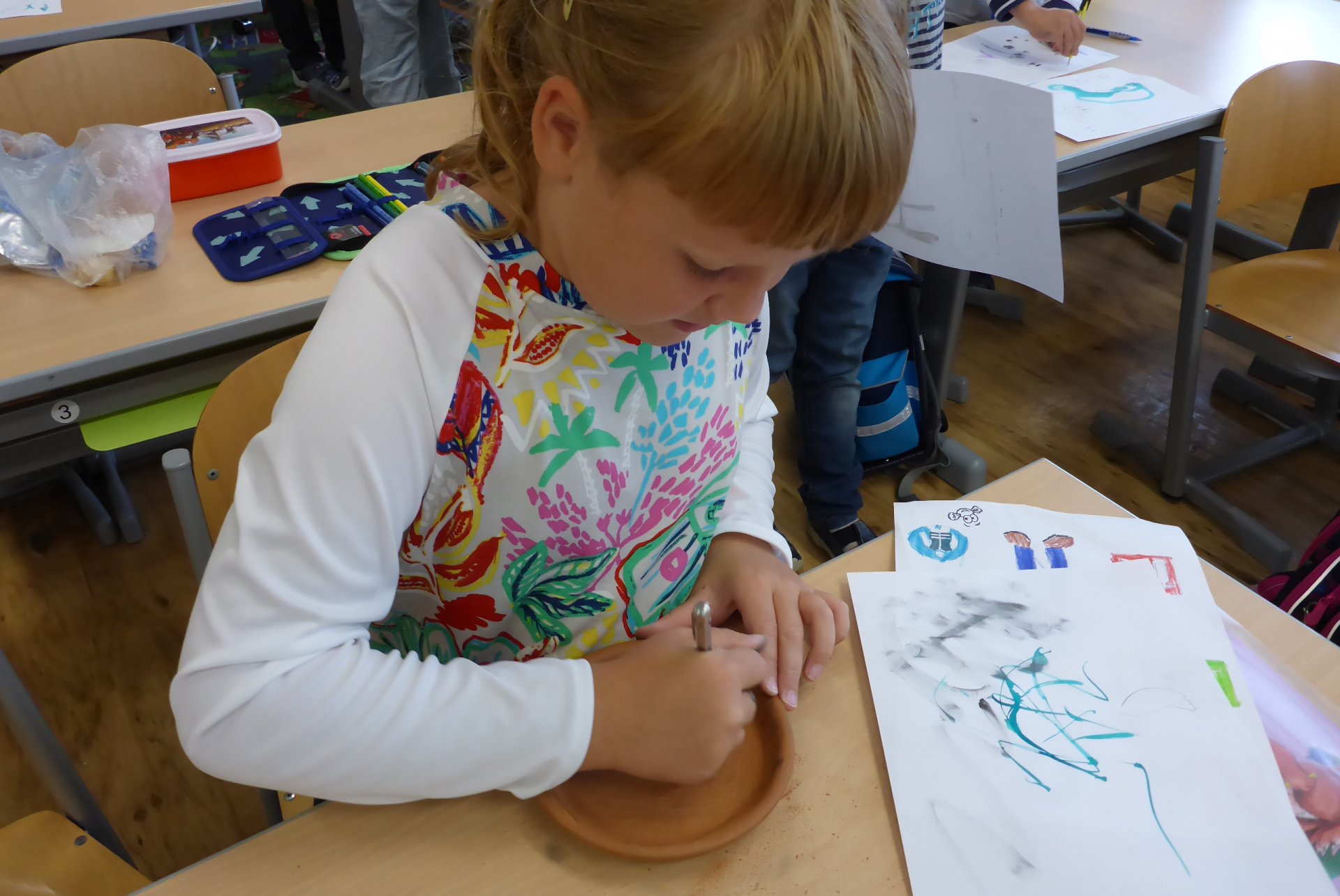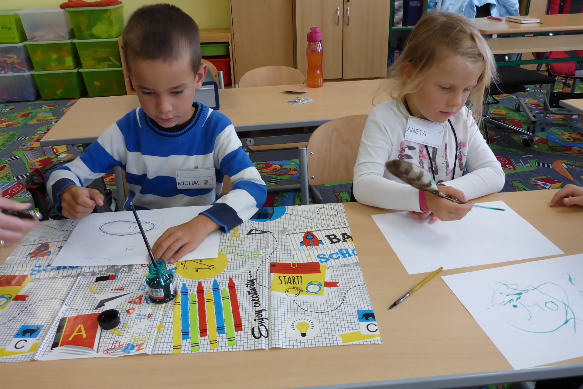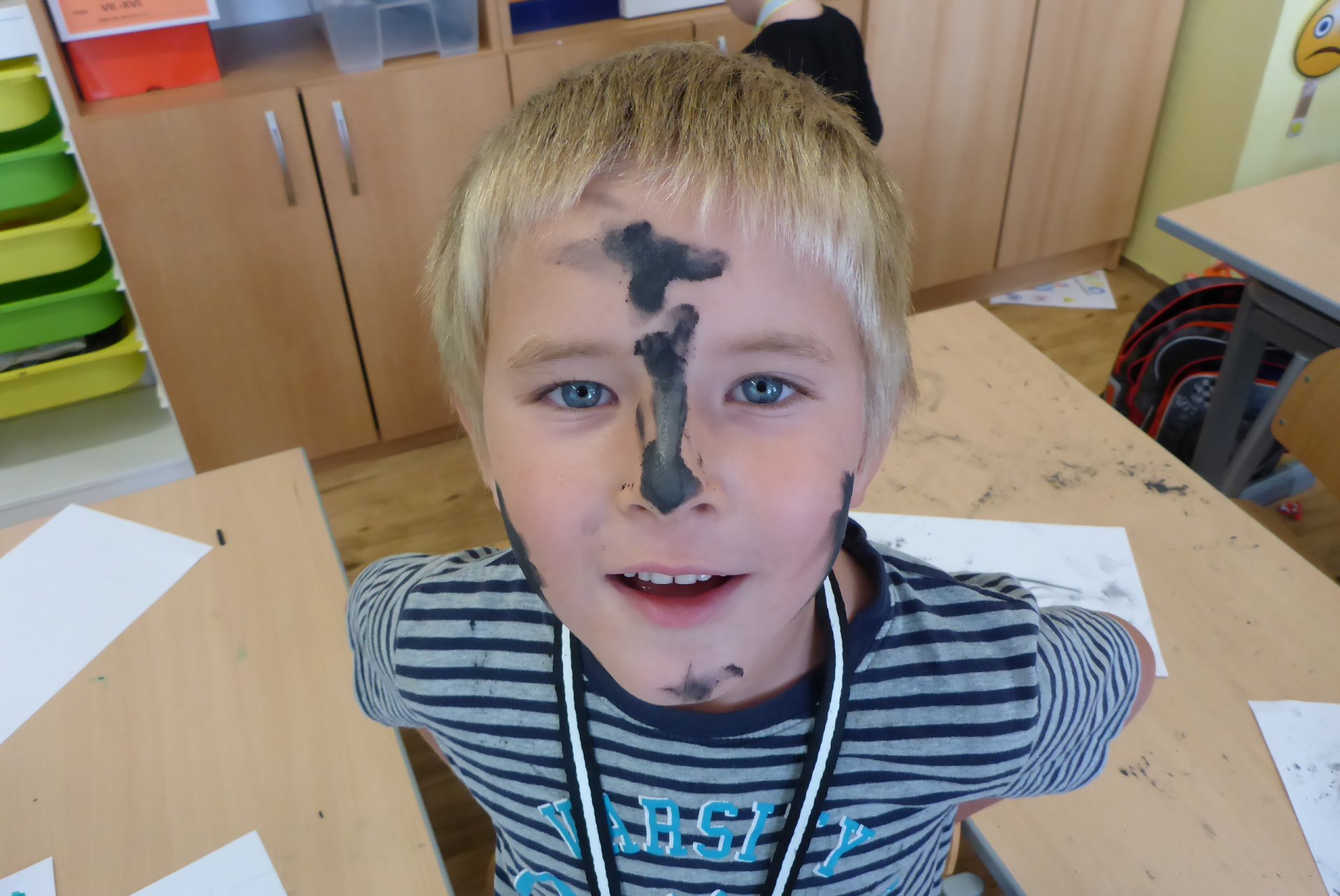 Pokud se Vám dnes děti vrátily domů nepatrně umouněné či různě zbarvené, vězte, že za to může naše dnešní písařská dílna. Vyzkoušeli jsme si totiž veškeré psací náčiní počínaje ohořelým dřívkem a konče psacím pianem :-)