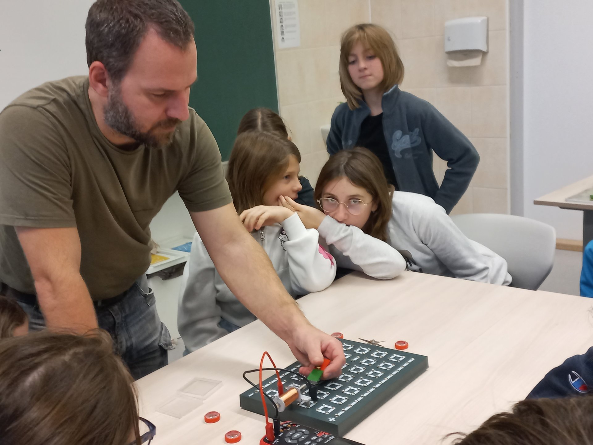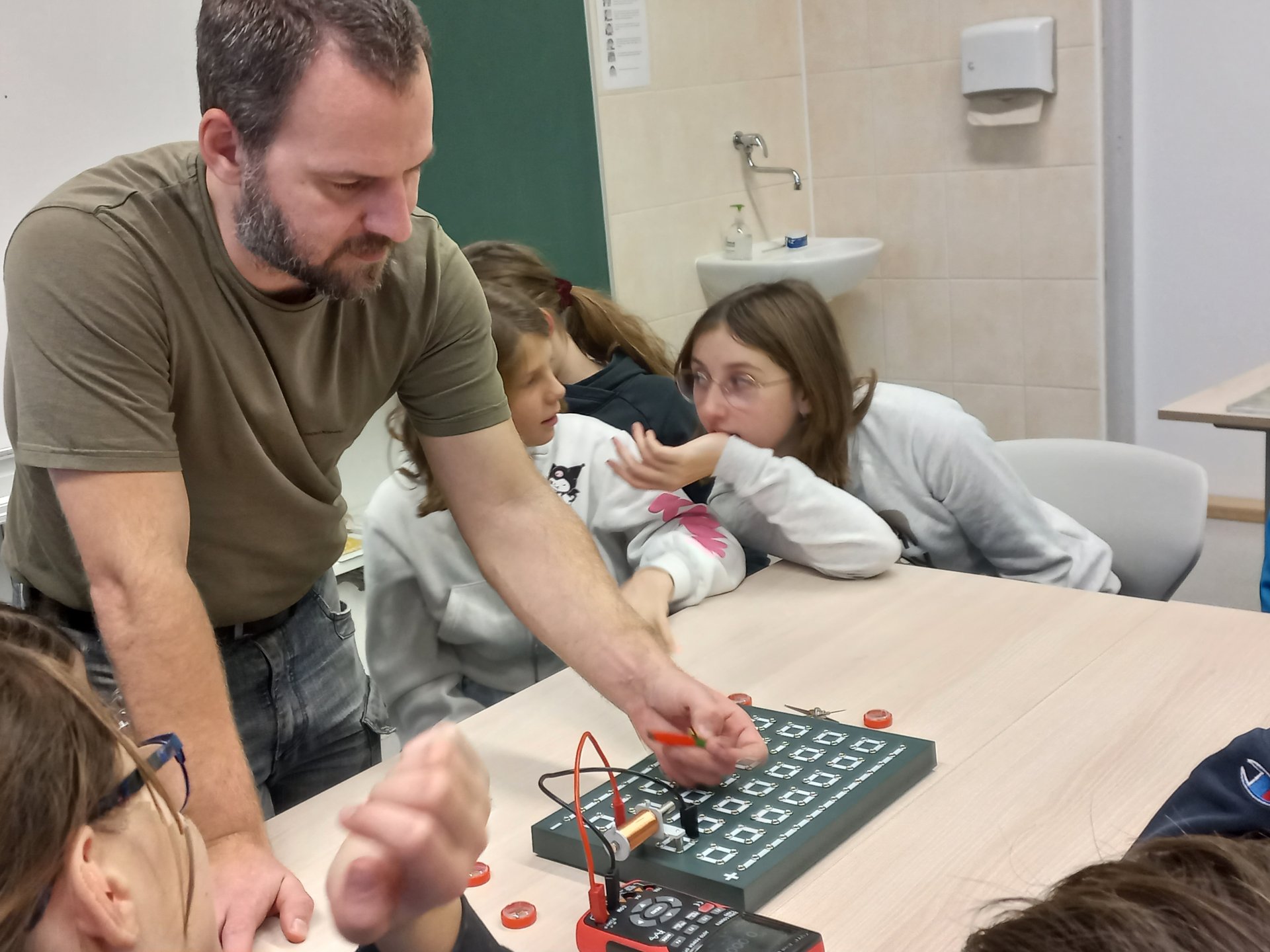 Žáci absolvovali s panem učitelem Jindrou opět zajímavé hodiny fyziky spojené s praktickými ukázkami. První byla hodina zaměřená na elektromagnetismus. V přiložených fotografiích uvidíte víc.