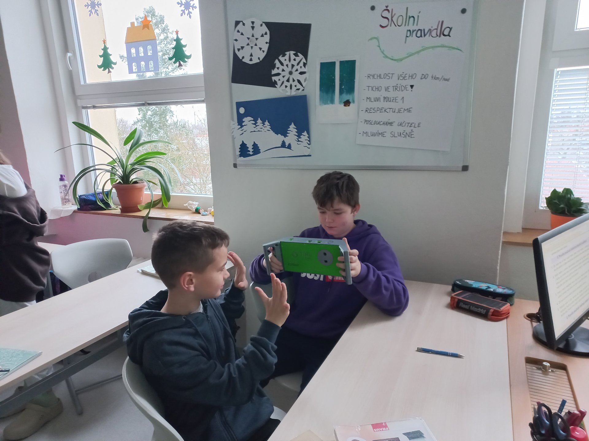 V druhé polovině prosince donesl pan učitel Jindra termokamery ("Termovize do škol"). Žáci zkoušeli teplotu svou, ale i teplotu různých předmětů. Zároveň si v praxi zkoušeli, jak zvýšit teplotu různých předmětů. Termokamery měly u žáky úspěch.