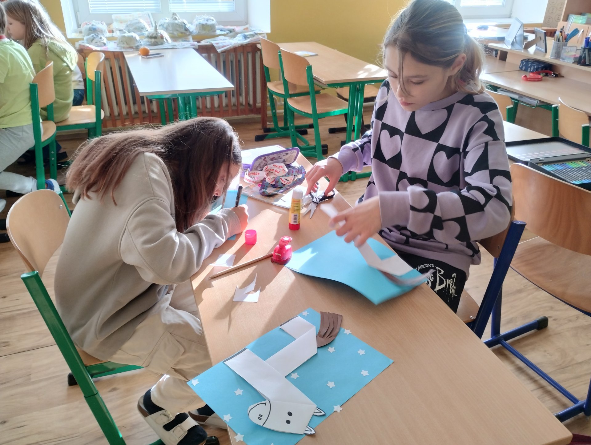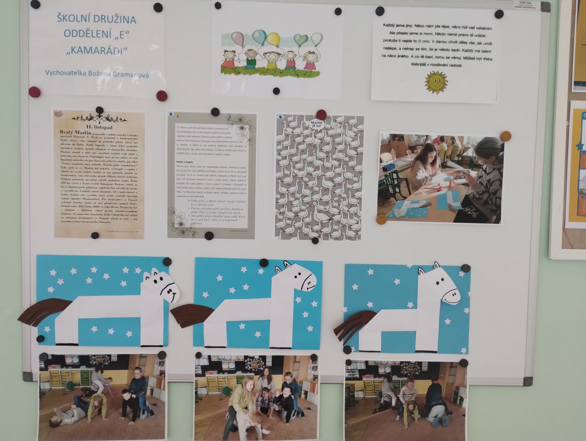 o sv. Martinu jsme si vystřihli, složili a nalepili bílého koníka, splnili jsme pracovní list s úkoly.