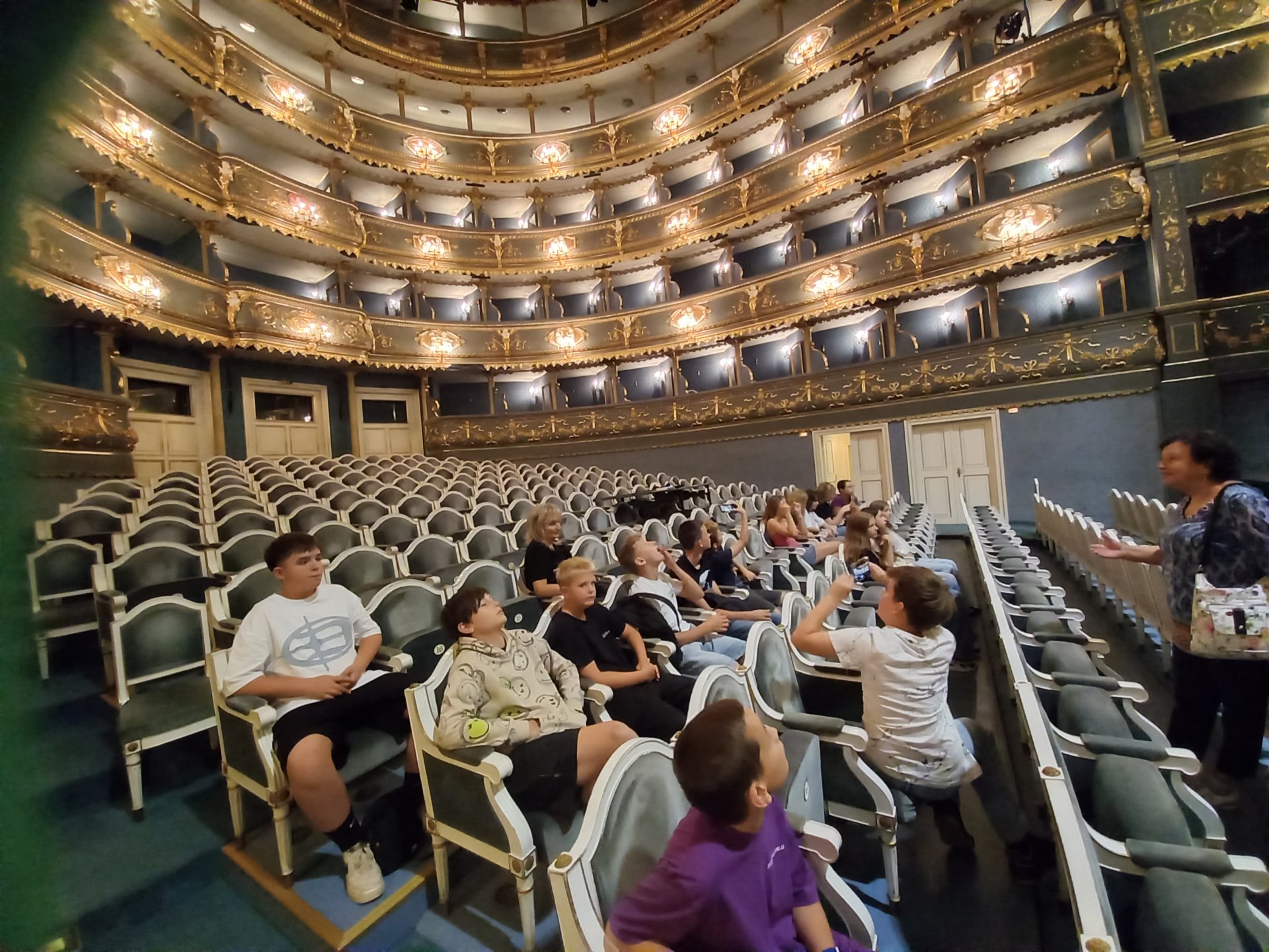 4. 9. jsme zařadili do programu prvního týdne také procházku za kulturou. Paní učitelka Fleischmannová zajistila pro třídu prohlídku Stavovského divadla. Prostory jsou krásné a zároveň jsme se od paní průvodkyně dozvěděli i spoustu věcí z historie Stavovského divadla.