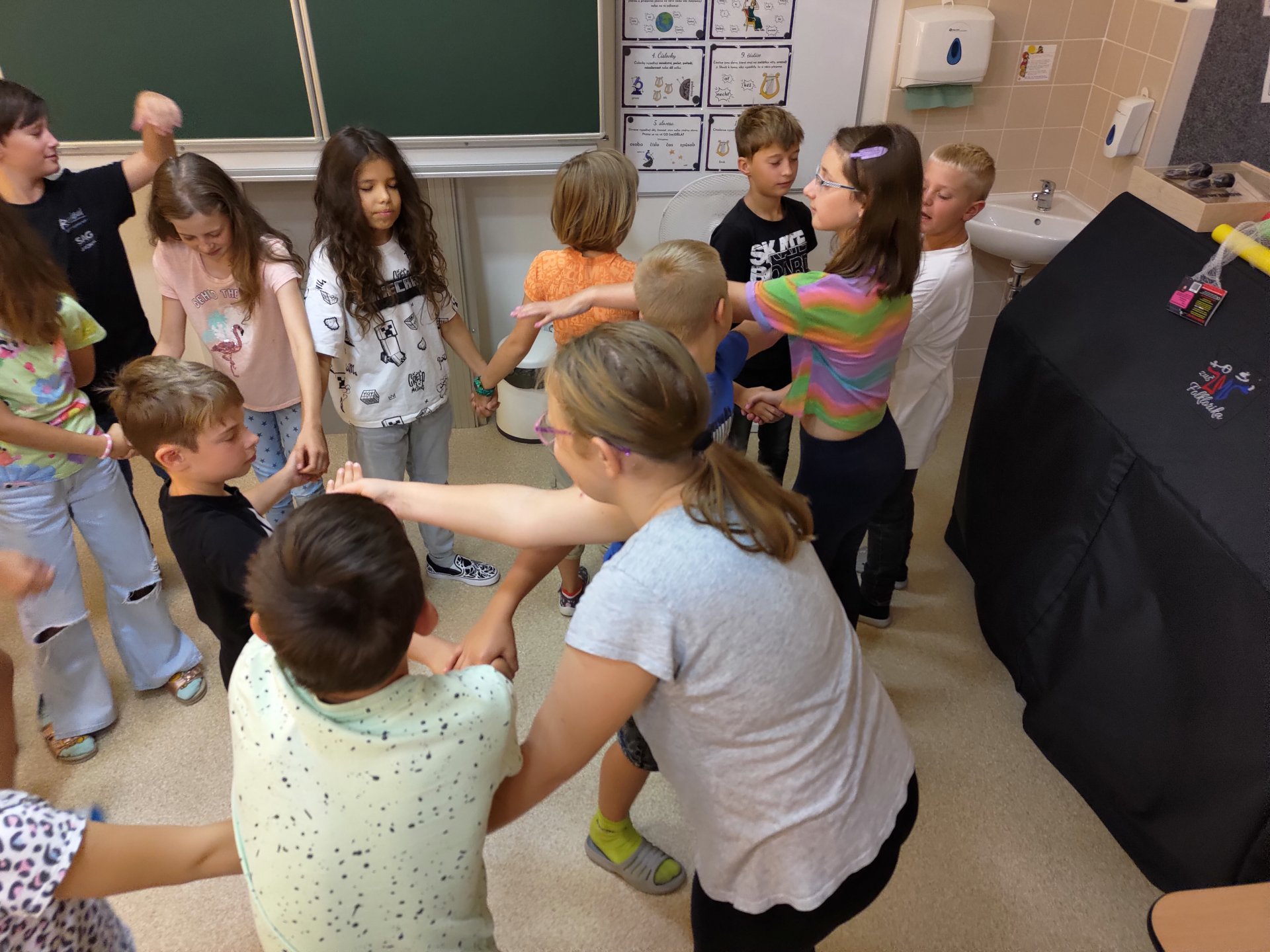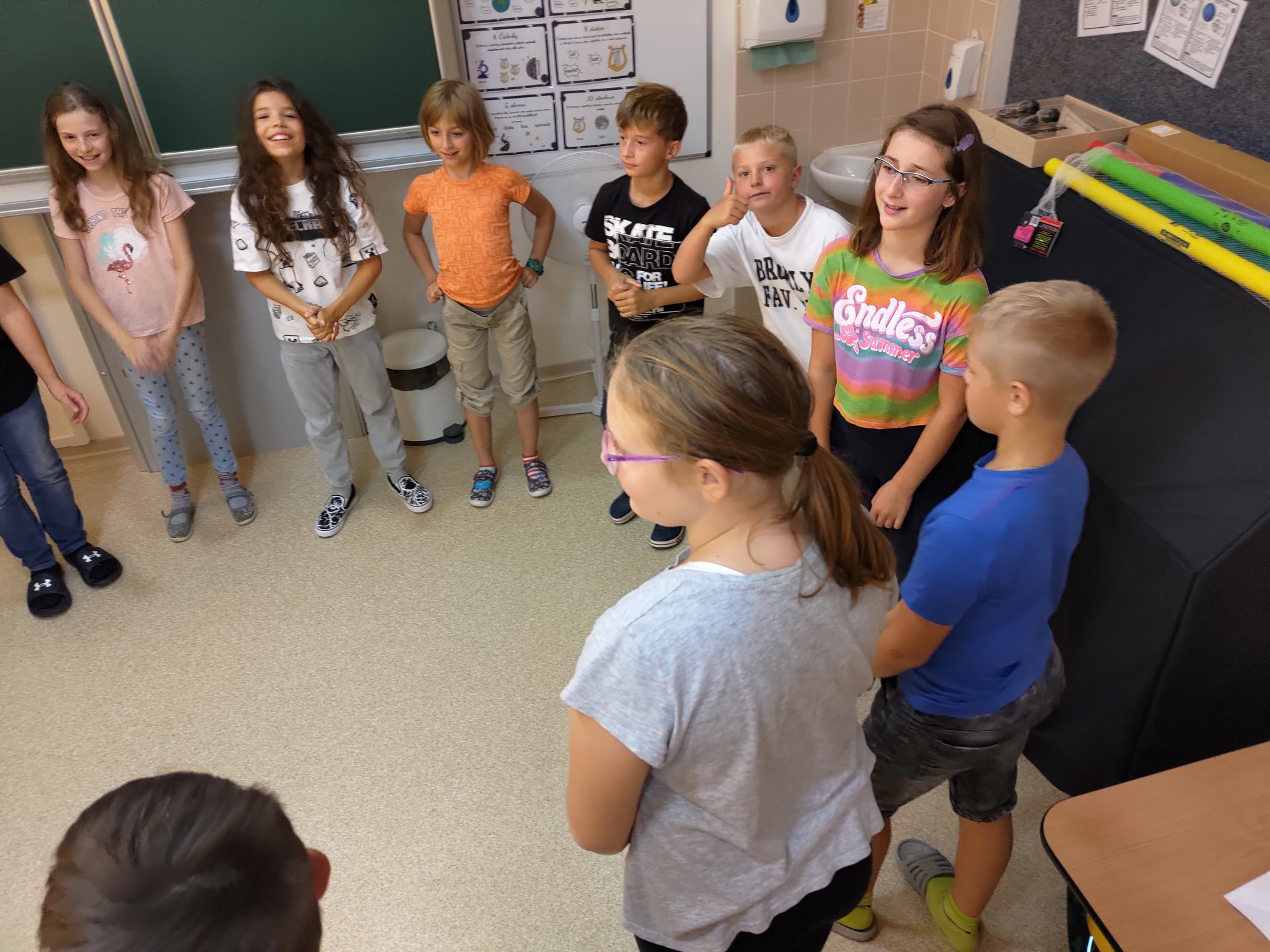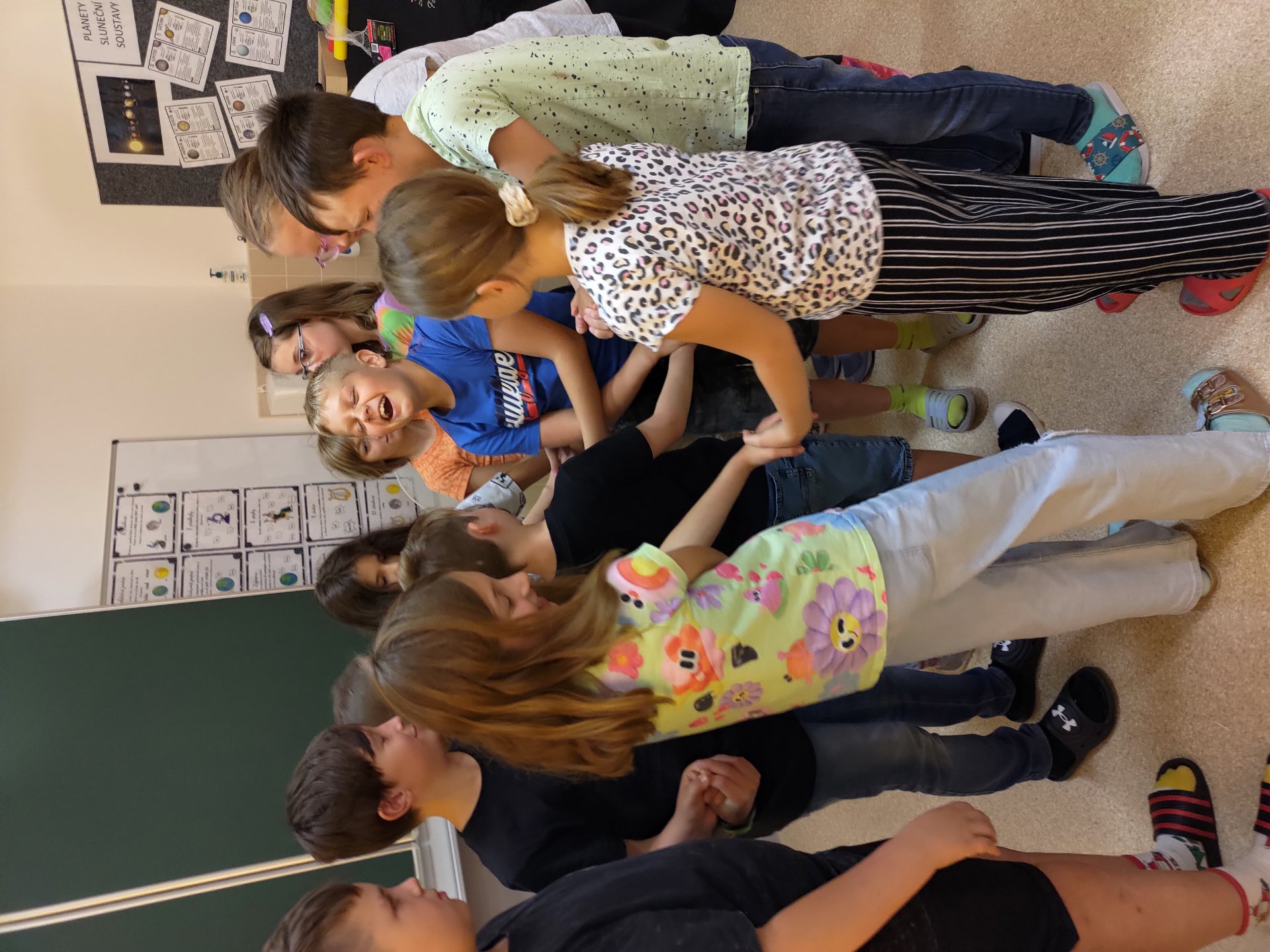 První týden jsme se s naší třídou účastnili projektu ŘETĚZENÍ, který byl společný pro 1. i 2. stupeň. Měli jsme za úkol využít celý týden pro komunikaci, seznamování, společnou práci na výzdobě třídy, třídní dohody, problematiku bezpečnosti ve škole i mimo školu a školní řád. Zaměřili jsme se na hry v oblasti osobnostní a sociální výchovy, jako např. síť, prstýnek, letní bingo či poznávání svého učitele. Také jsme rozebírali naše očekávání od posledního roku na 1.stupni, všechny naše vize a případné obavy. Ohlédli jsme se za prázdninami a vzpomínali jsme na krásné chvilky s rodinami a přáteli.