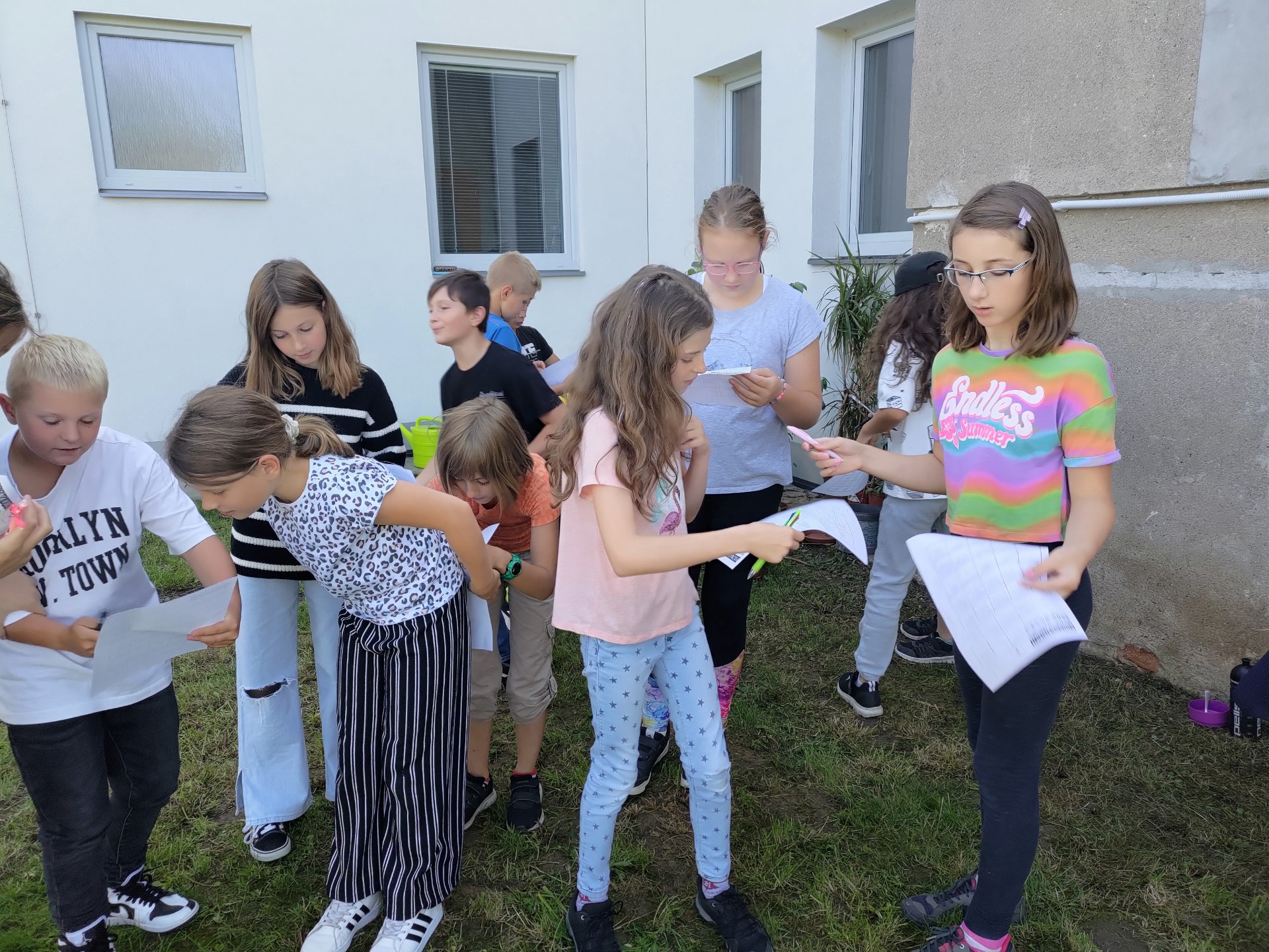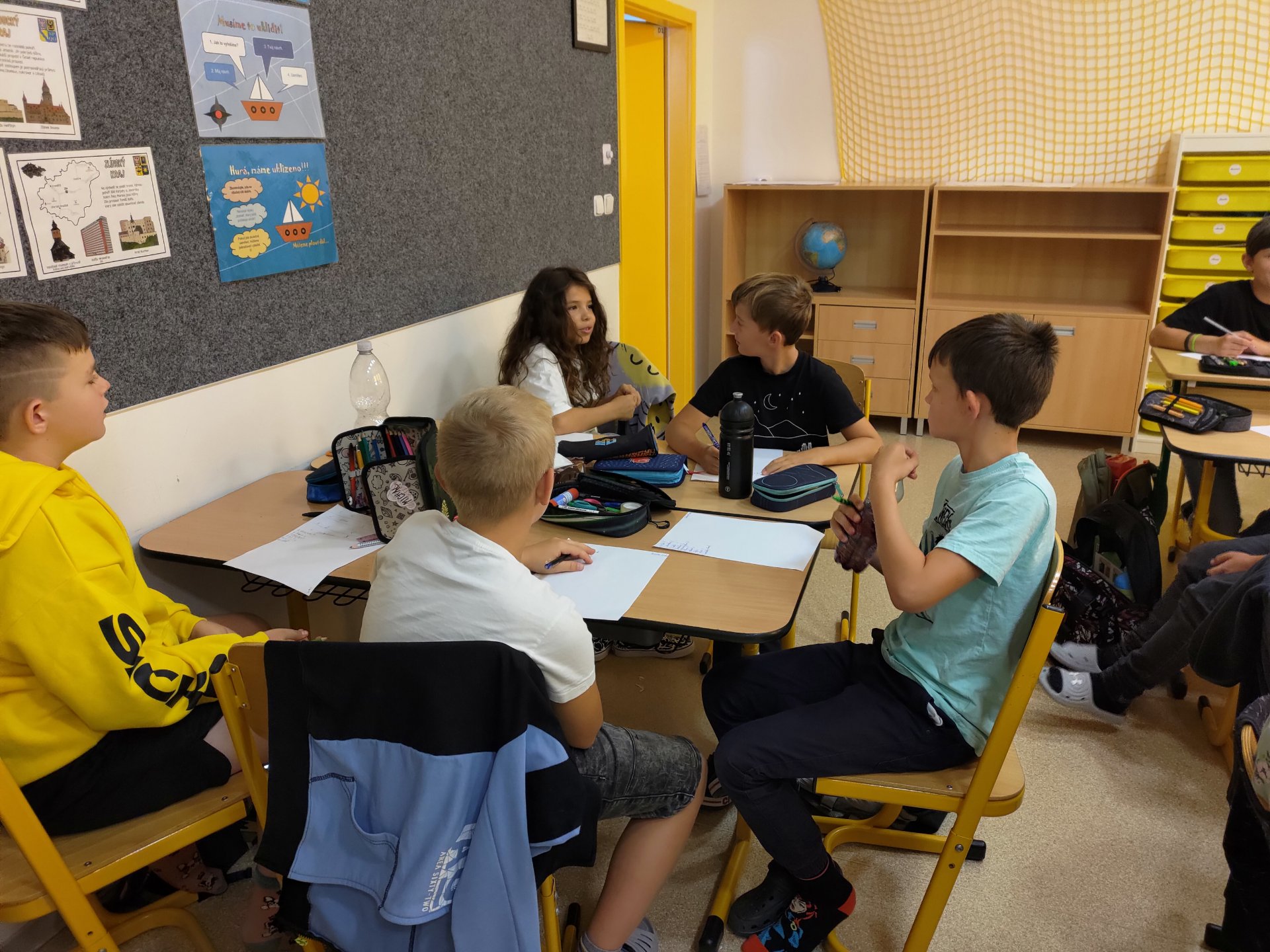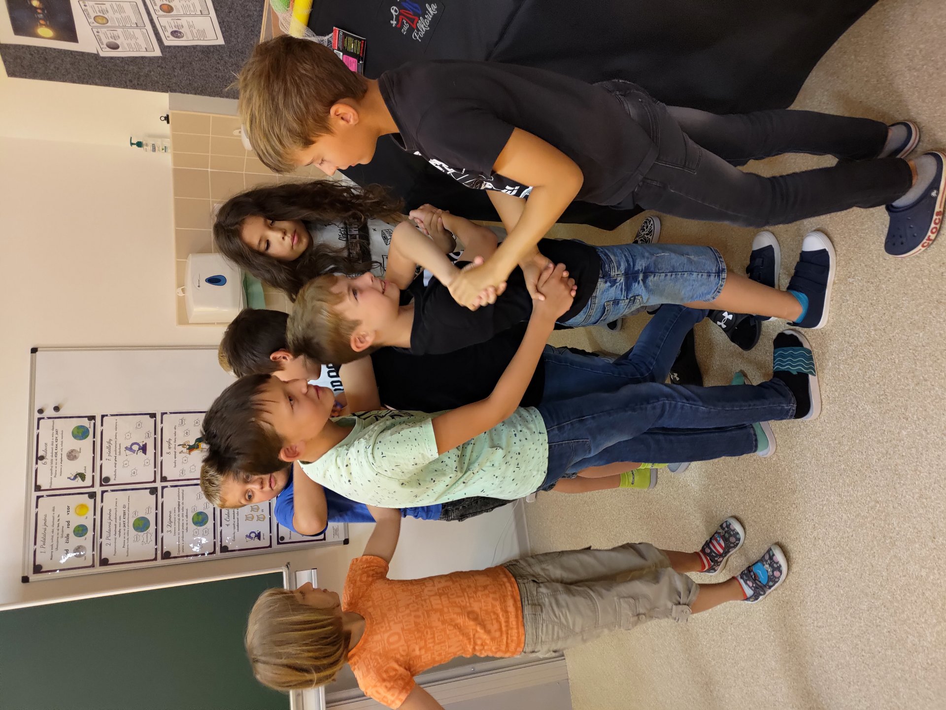 První týden jsme se s naší třídou účastnili projektu ŘETĚZENÍ, který byl společný pro 1. i 2. stupeň. Měli jsme za úkol využít celý týden pro komunikaci, seznamování, společnou práci na výzdobě třídy, třídní dohody, problematiku bezpečnosti ve škole i mimo školu a školní řád. Zaměřili jsme se na hry v oblasti osobnostní a sociální výchovy, jako např. síť, prstýnek, letní bingo či poznávání svého učitele. Také jsme rozebírali naše očekávání od posledního roku na 1.stupni, všechny naše vize a případné obavy. Ohlédli jsme se za prázdninami a vzpomínali jsme na krásné chvilky s rodinami a přáteli.