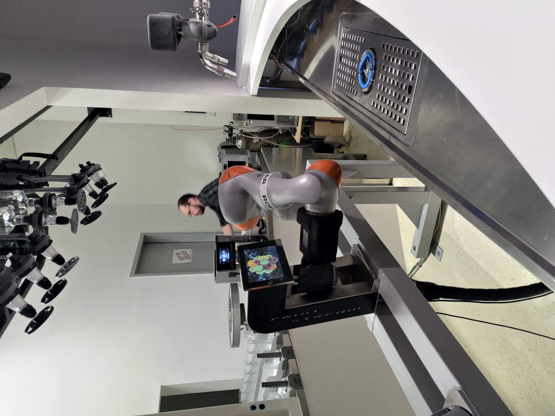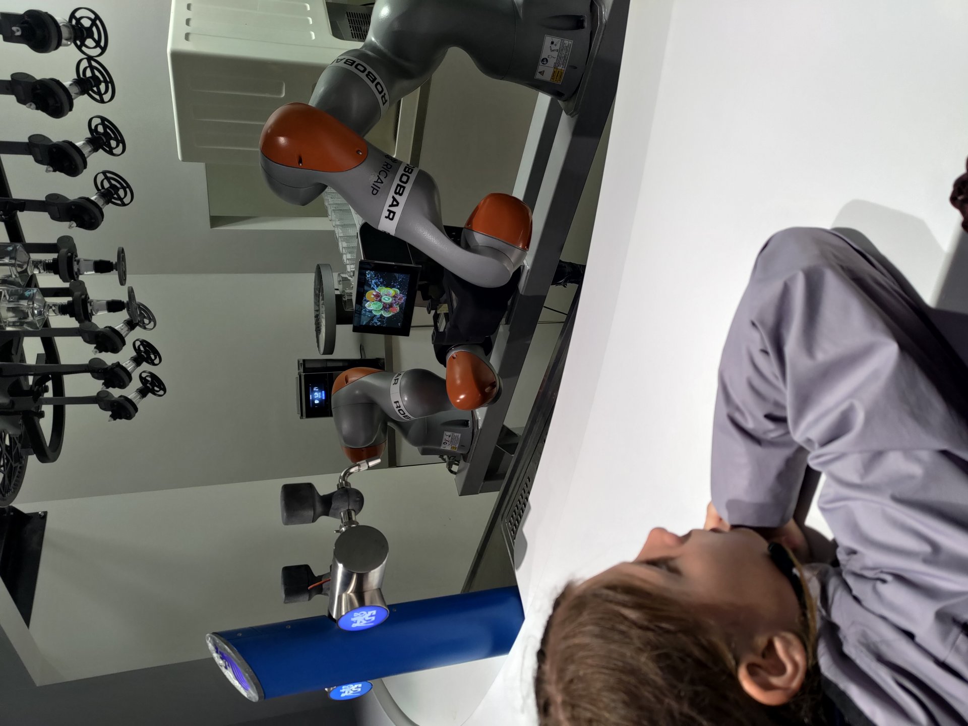 Absolvovali jsme prohlídku v laboratořích s odborným výkladem pana Hradeckého, jako přímého zaměstnance a odborníka. Měli jsme možnost objednat si od robota limonádu, díky moderním aplikacím v tabletu. Unikátní byla možnost zahrát si s robotem dámu.