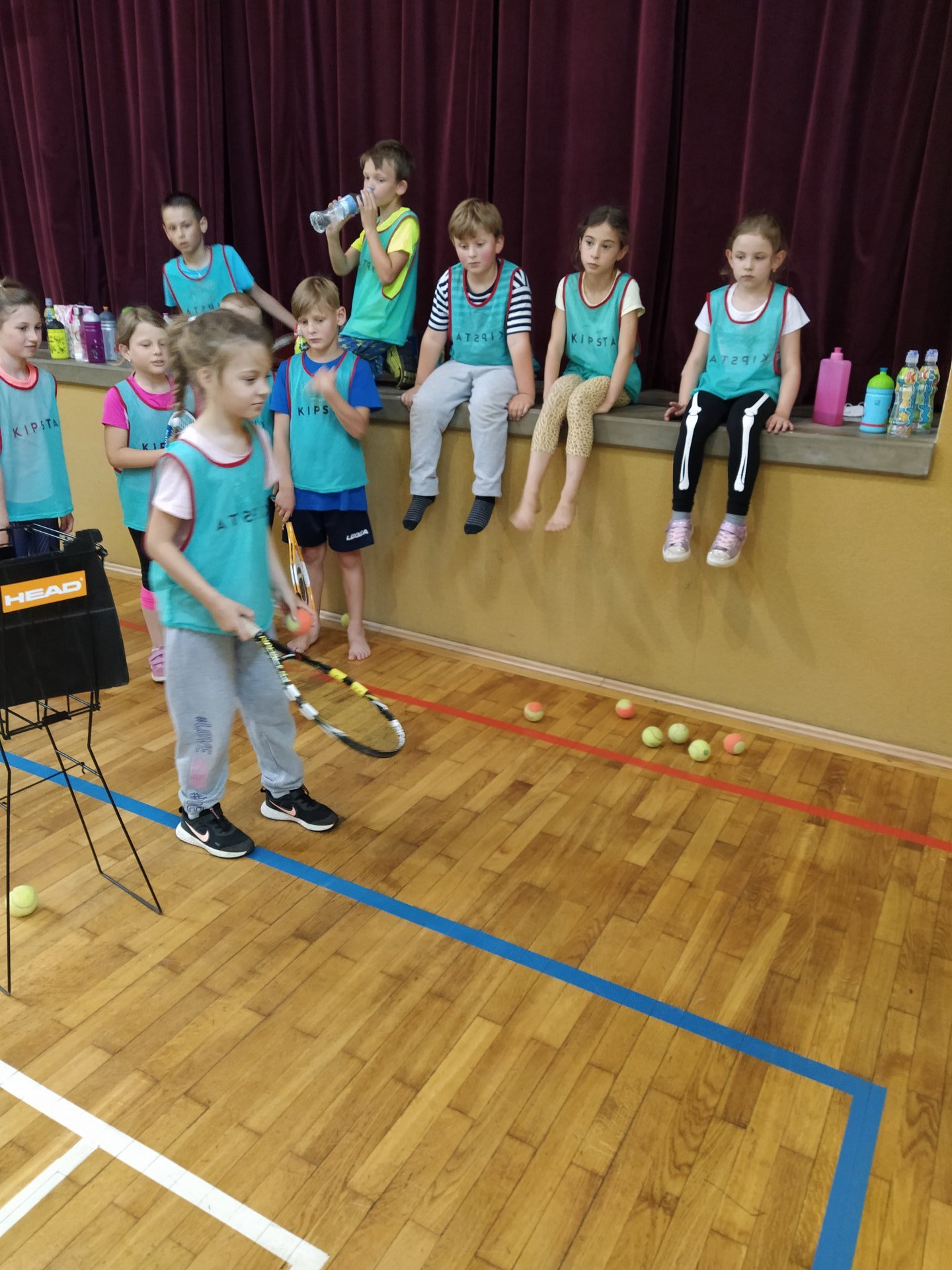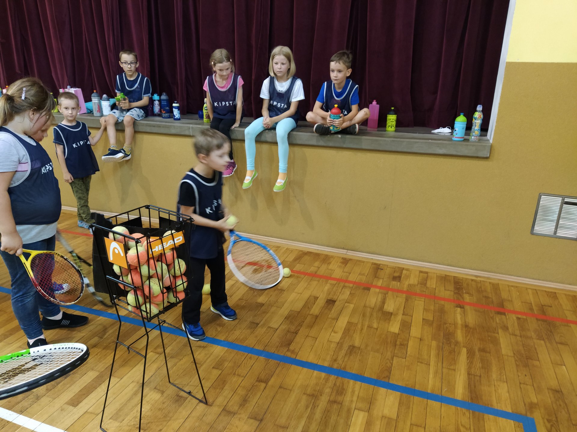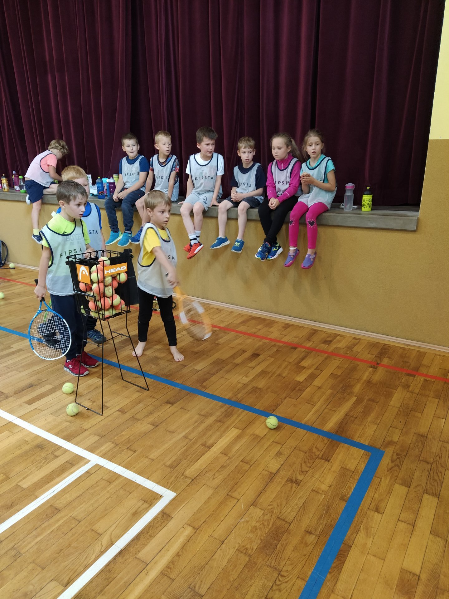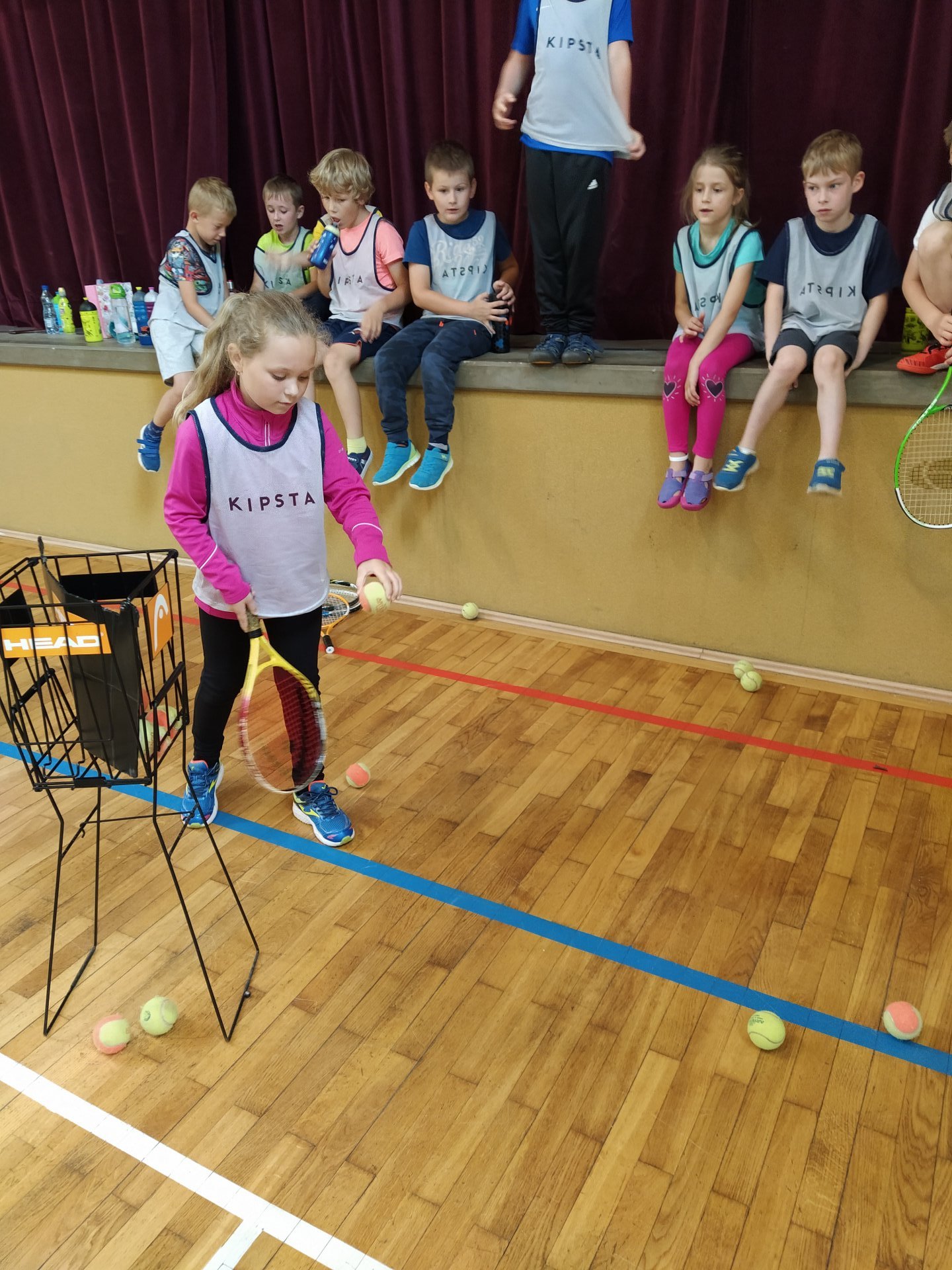 Vytvořili jsme celkem 5 smíšených týmů a rotačně si každý tým vyzkoušel 4 sporty - tenis, florbal, fotbal, házenou a jedno odpočinkové stanoviště (stavění stavebnice).