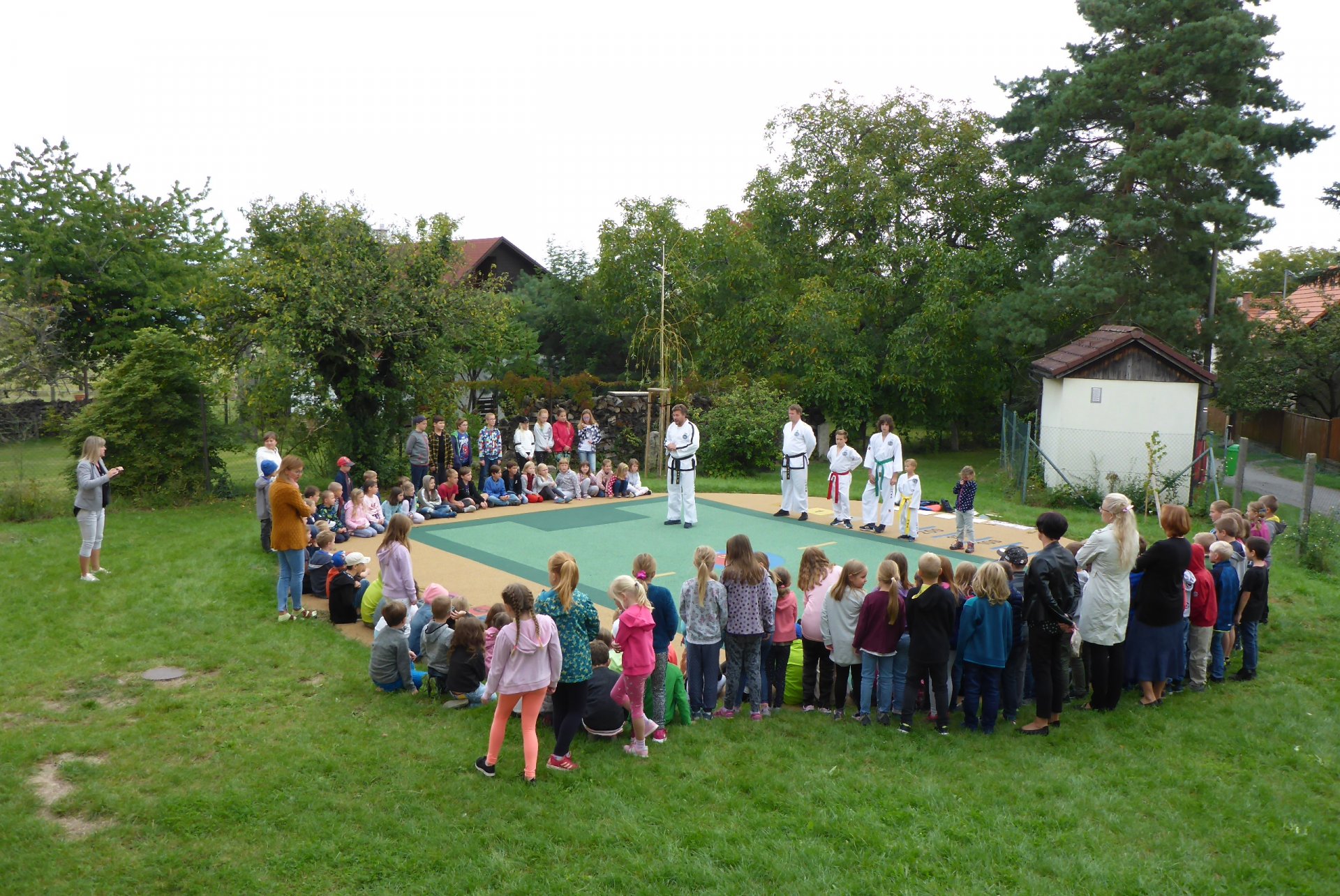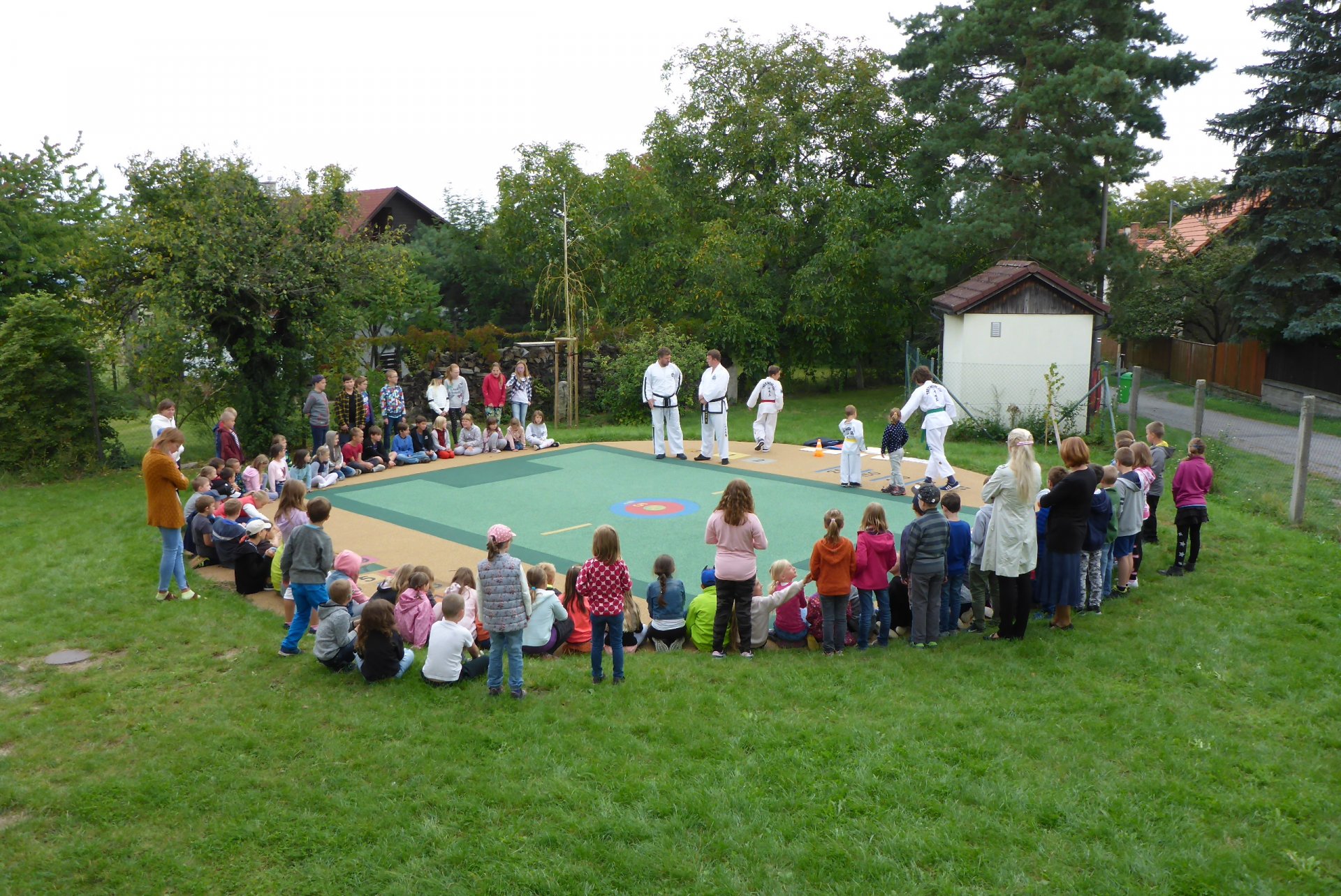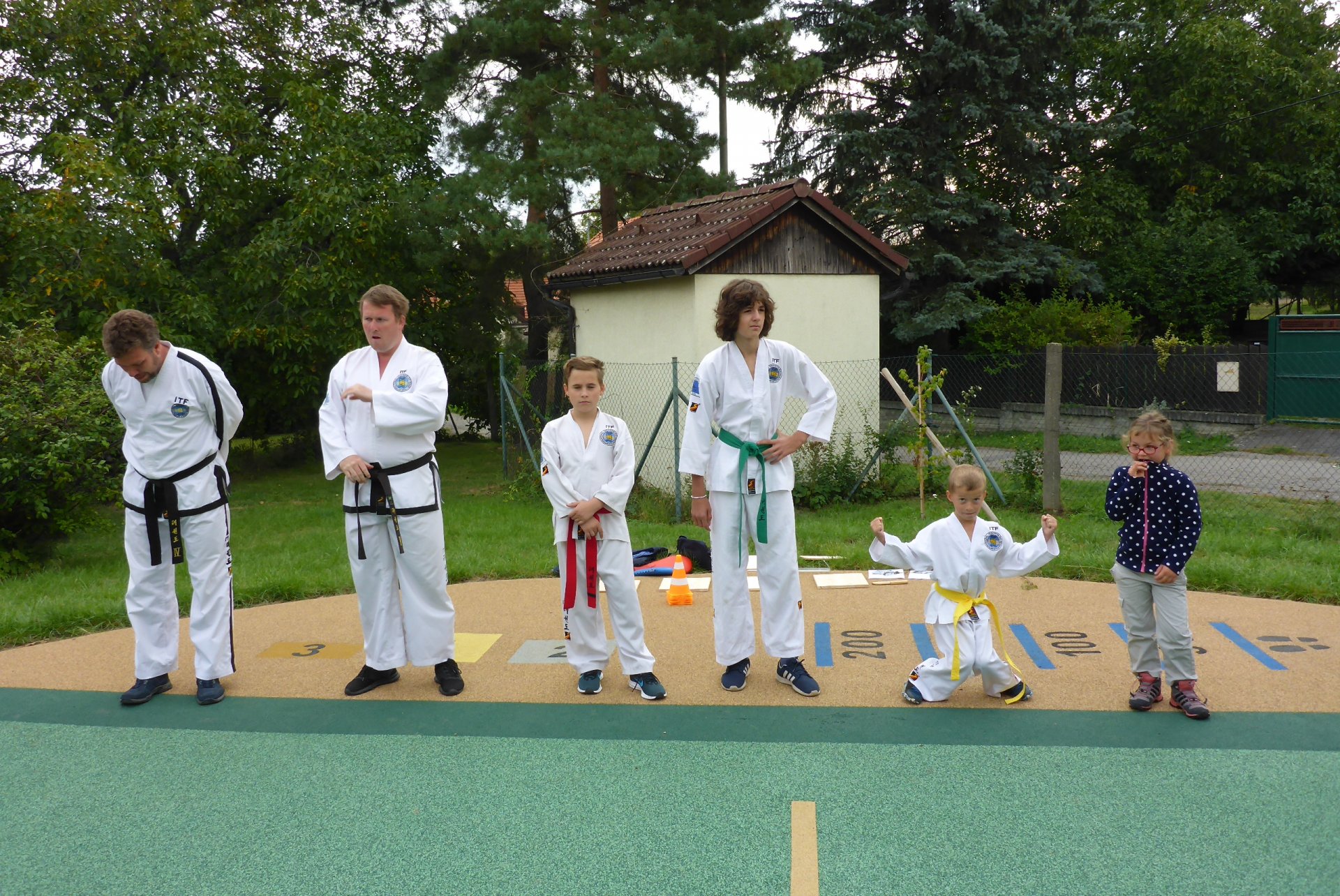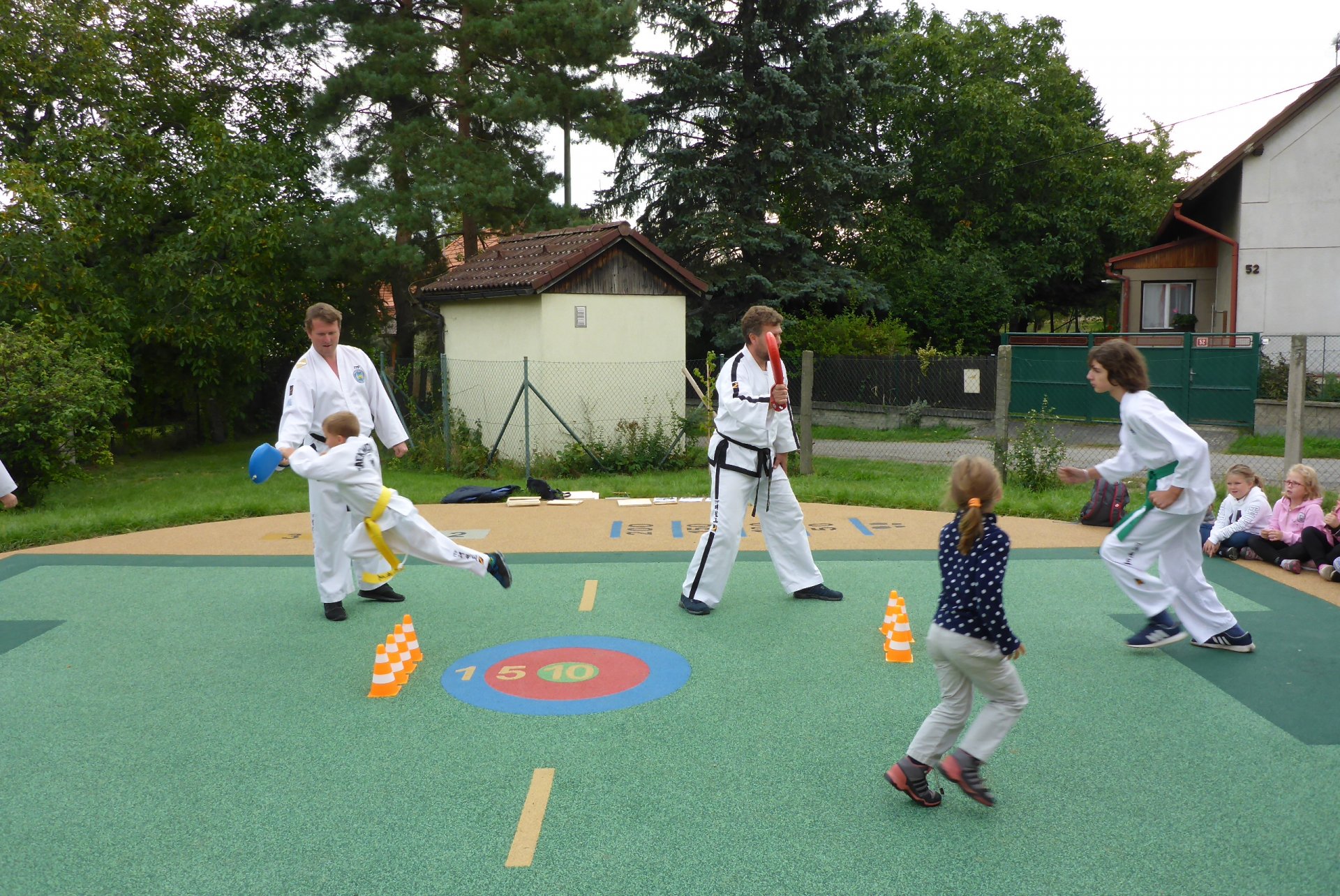 Na novém hřišti v Třebohosticích dnes proběhla ukázka korejského bojového umění řečeného TAEKWONDO, www.tkd.cz. Viděli jsme v akci i několik dětí z naší ZŠ.
