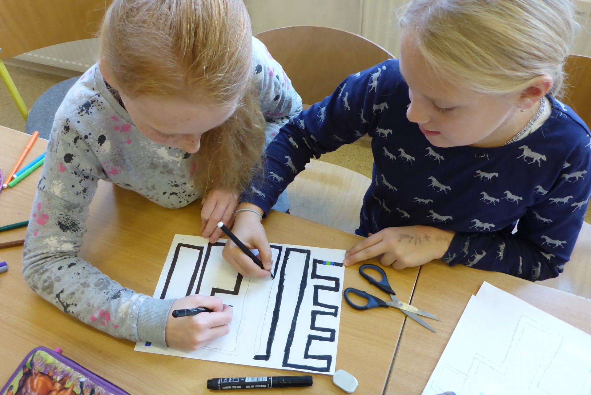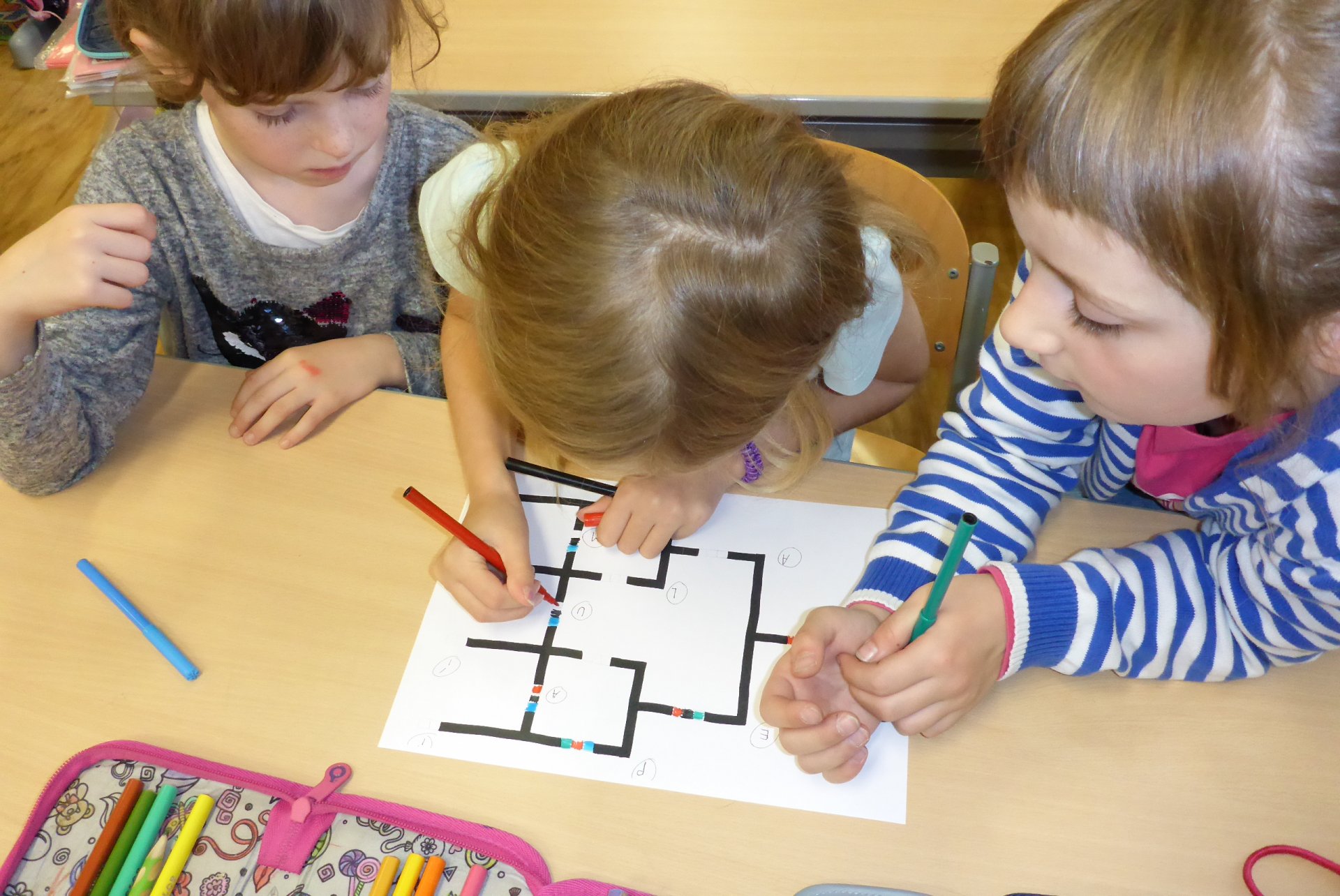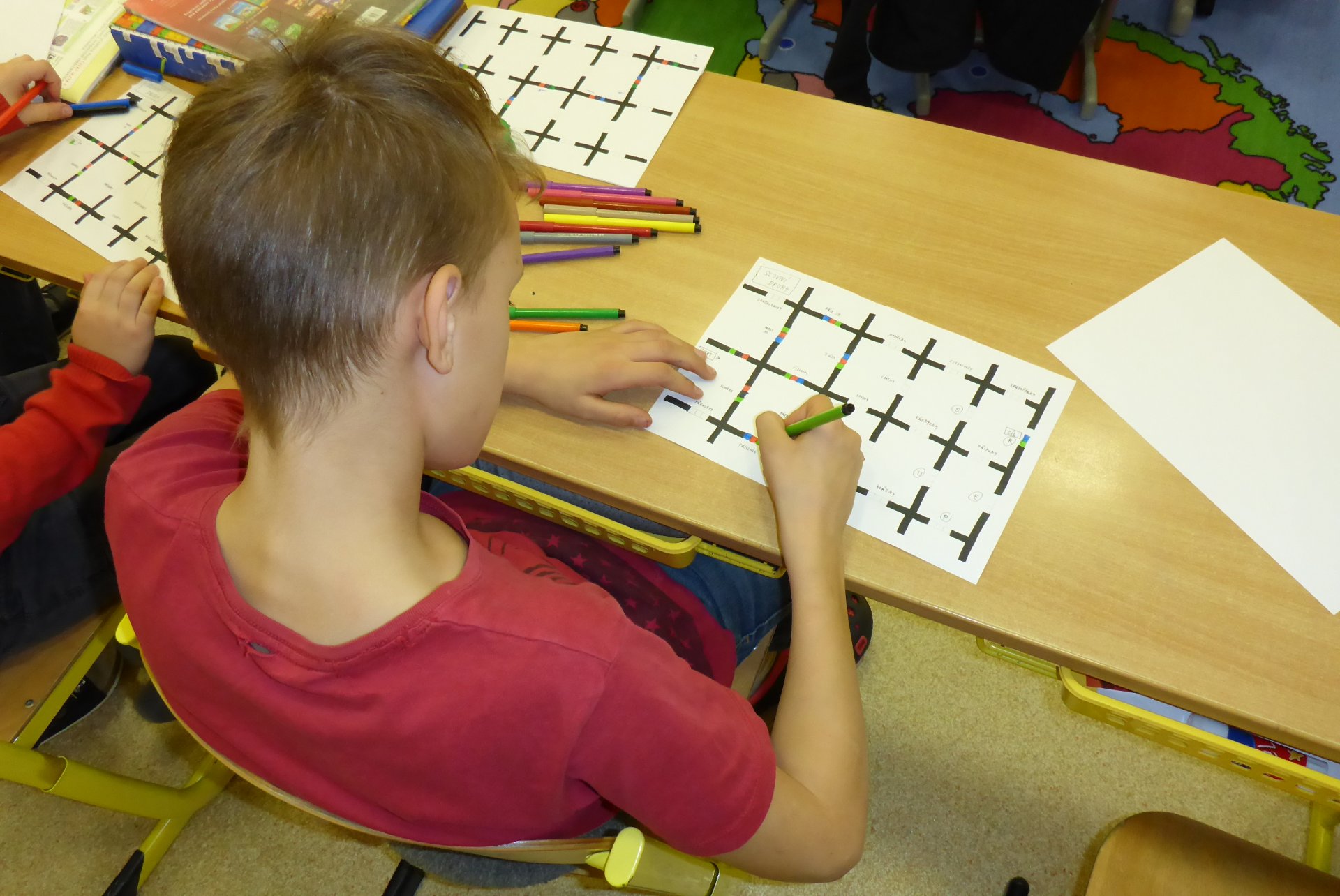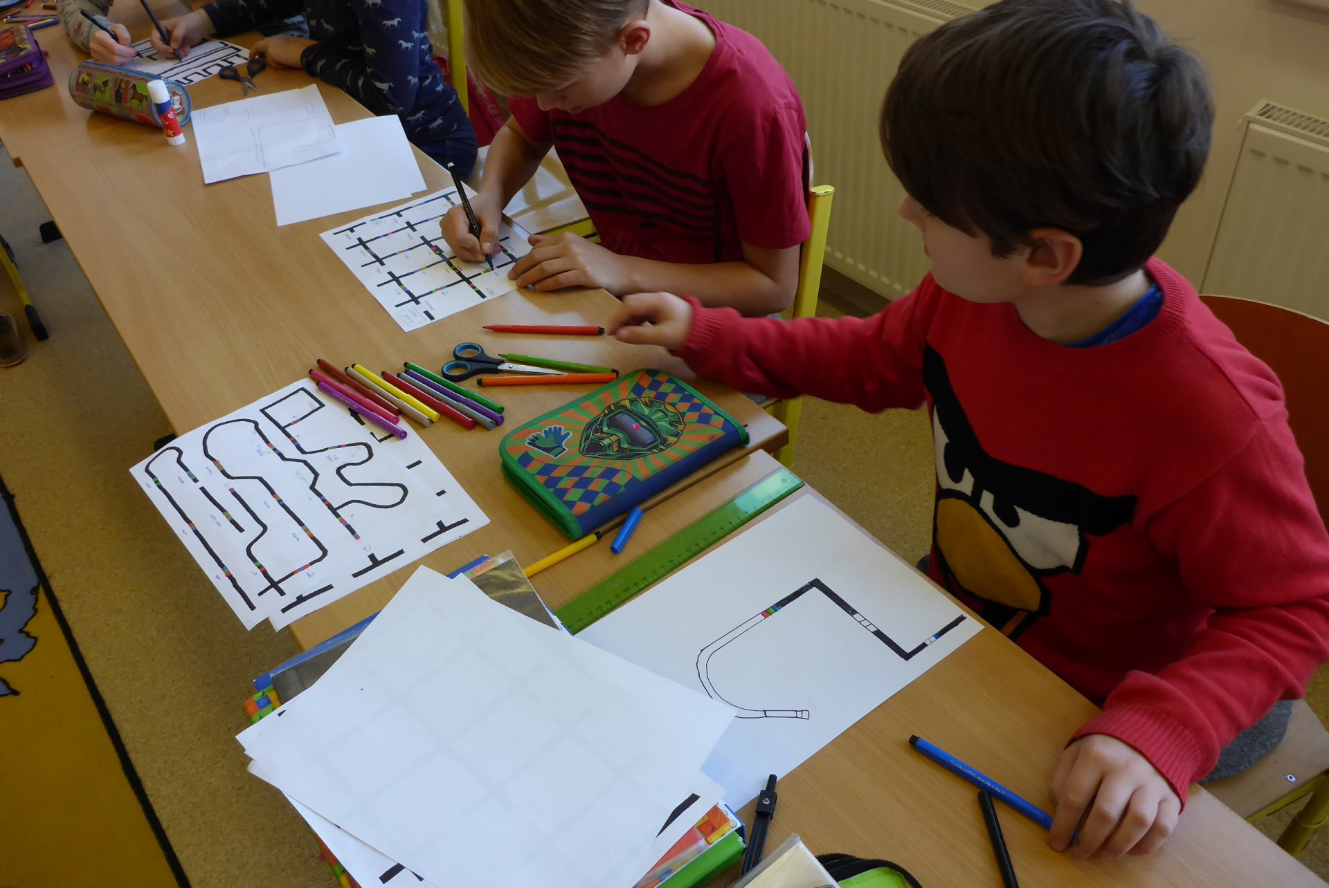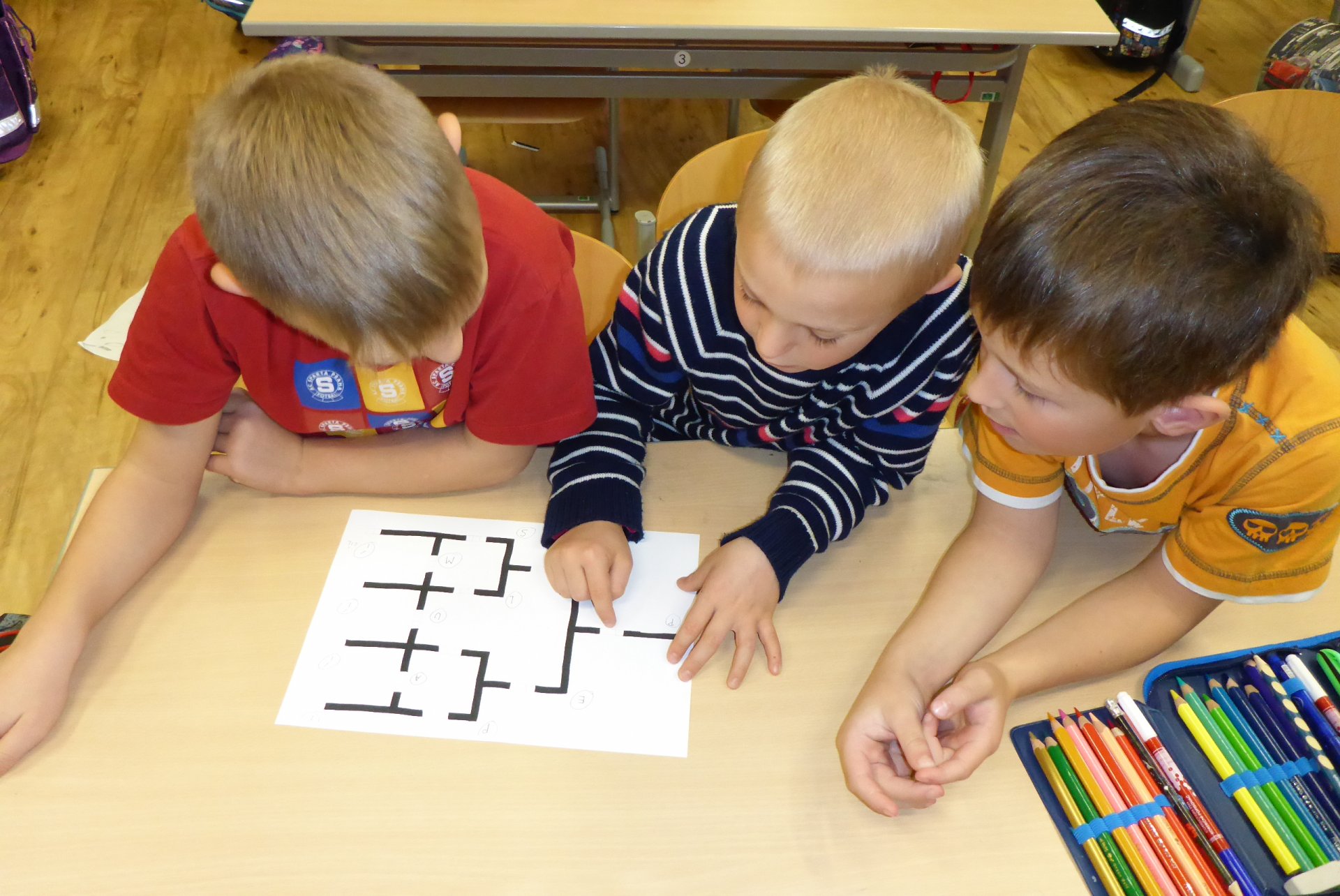 Děti měly možnost se seznámit s Ozobotem, tzv. Ozíkem. Je to výukový robůtek o velikosti golfového míčku, který jezdí, svítí a dá se personifikovat (v našem případě hotový Hercule Poirot, že?). Pomůže při vzdělávání v informatice, programování, algoritmizaci, napomůže matematickému, logickému a analytickému myšlení, podpoří kreativitu, myšlení předem i výtvarnou a manuální zručnost. Formou hry pak pomůže oživit výuku a procvičit probíranou látku prakticky jakéhokoli předmětu. Děti mohou vyrábět pracovní listy a nejrůznější bludiště, robot je kontroluje. V našem případě byl (např. pro 5. B) vyroben pracovní list na procvičení slovních druhů v ČJ.