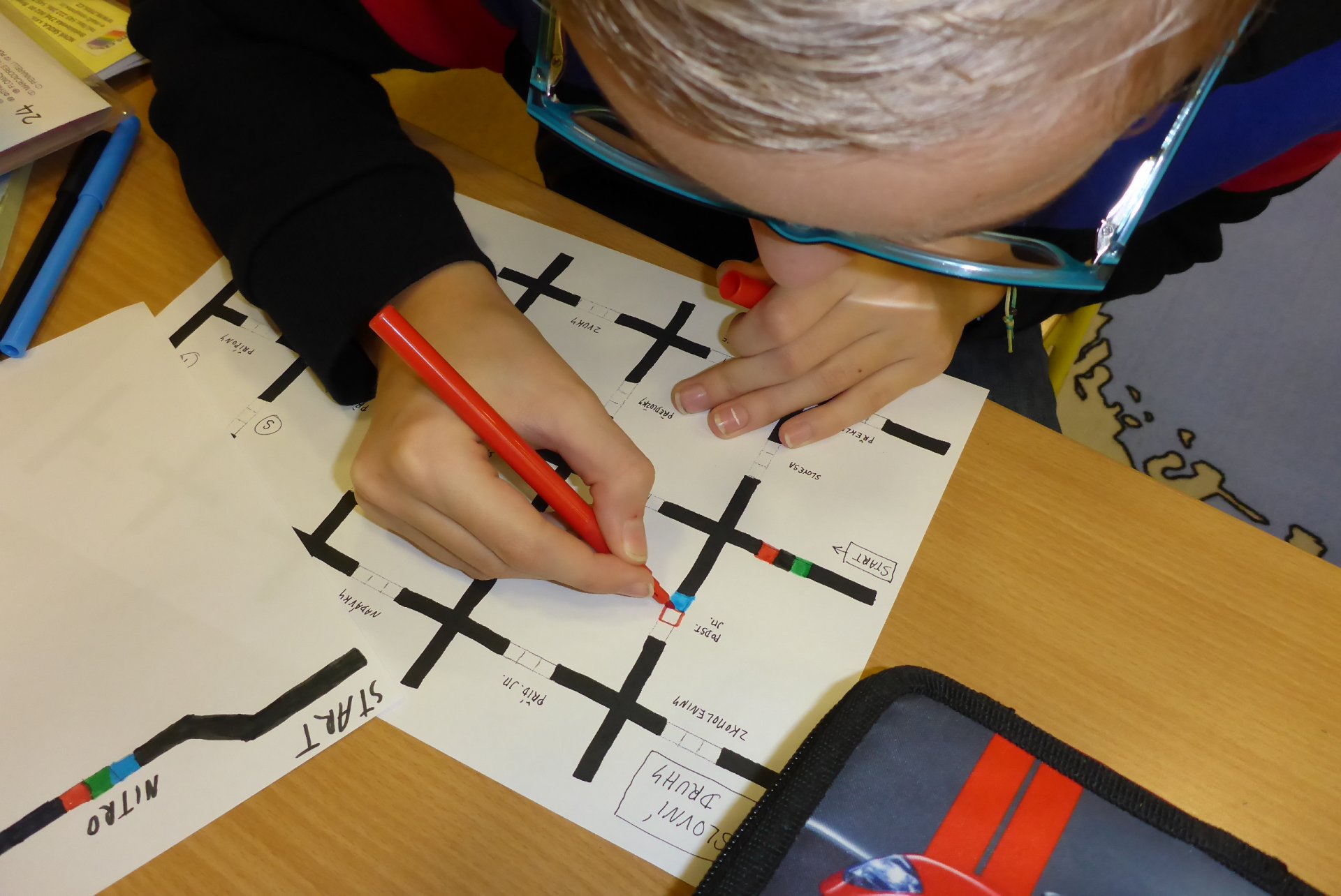 - počítat křižovatky, zatáčky, barvy, body;