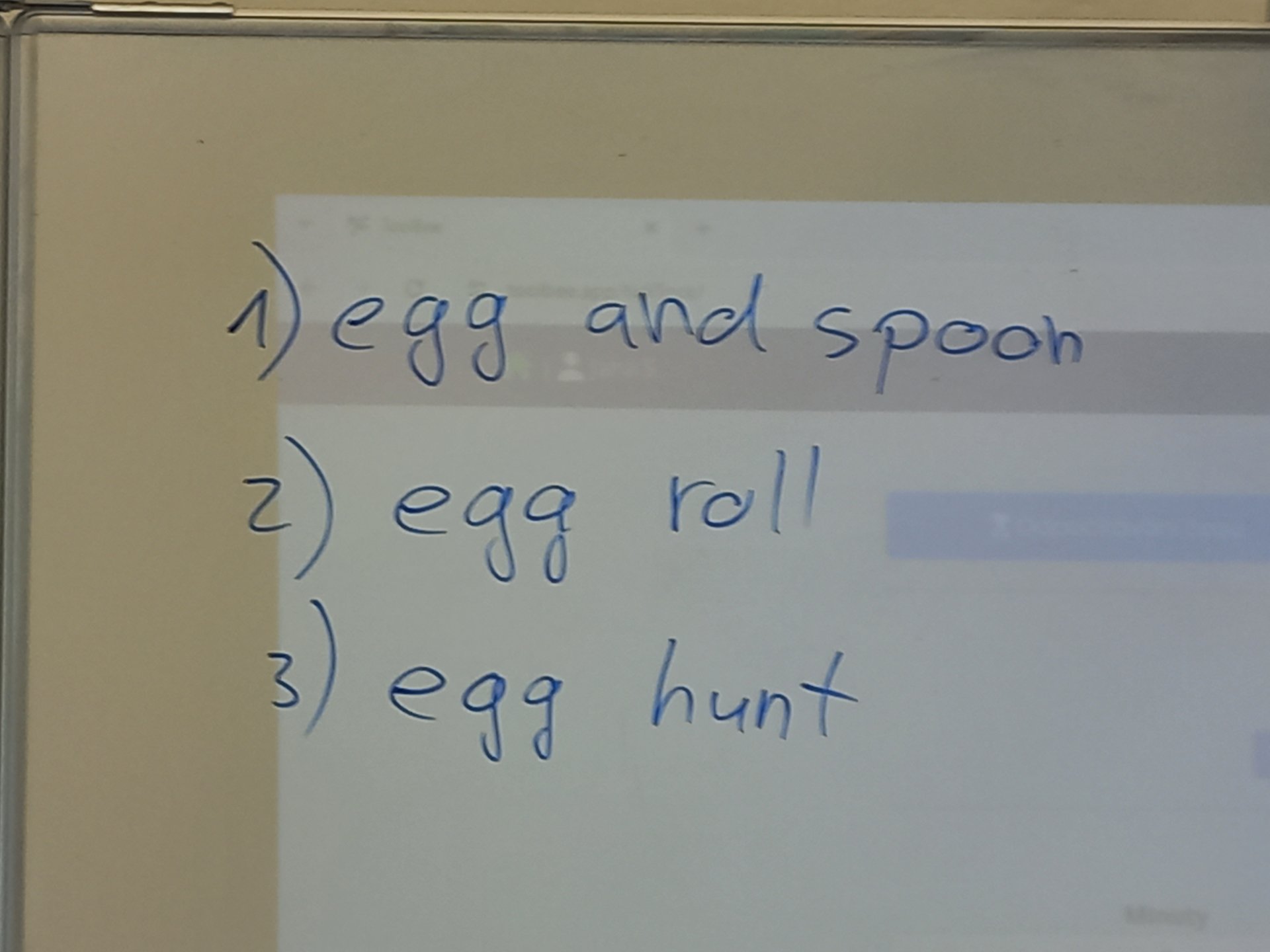 V rámci hodin anglického jazyka se žáci mj. dozvěděli, jak se tráví Velikonoce v anglicky mluvících zemích. Zahráli si také hry (hledání vajíček, závod s vejcem na lžíci), které se v těchto zemích na Velikonoce hrají. Žákům se dařilo dodržovat při hře nastavená pravidla tj. mluvit pouze anglicky a udržet hladinu hluku tak, aby to bylo ještě všem ostatním příjemné. Hry byly zábavné, všichni si to užili.