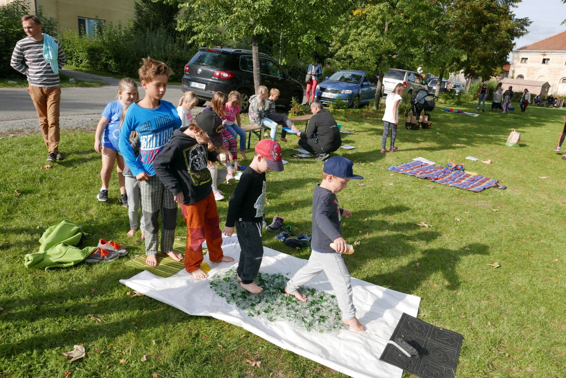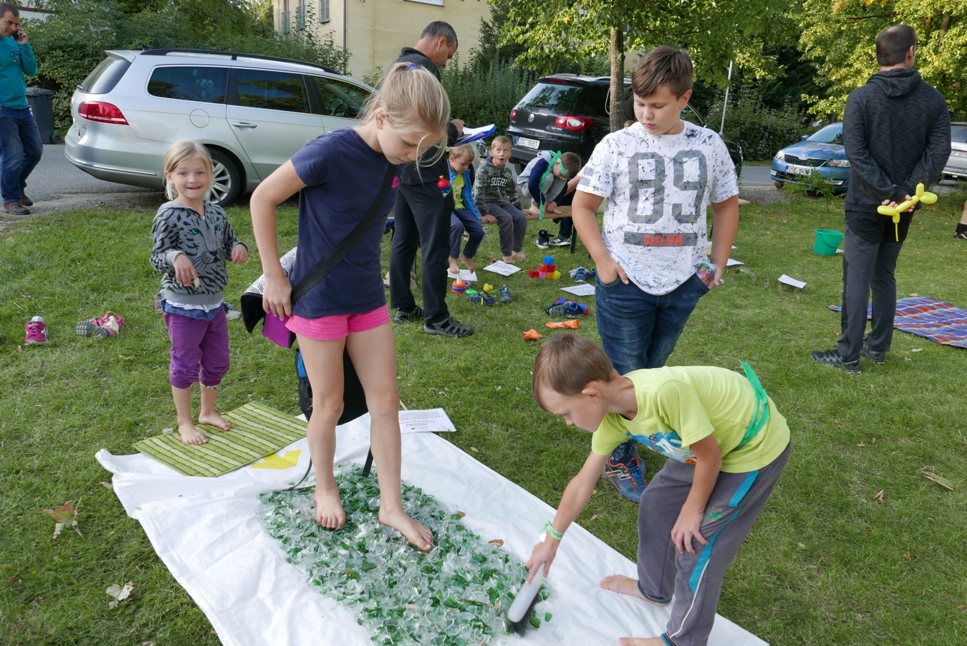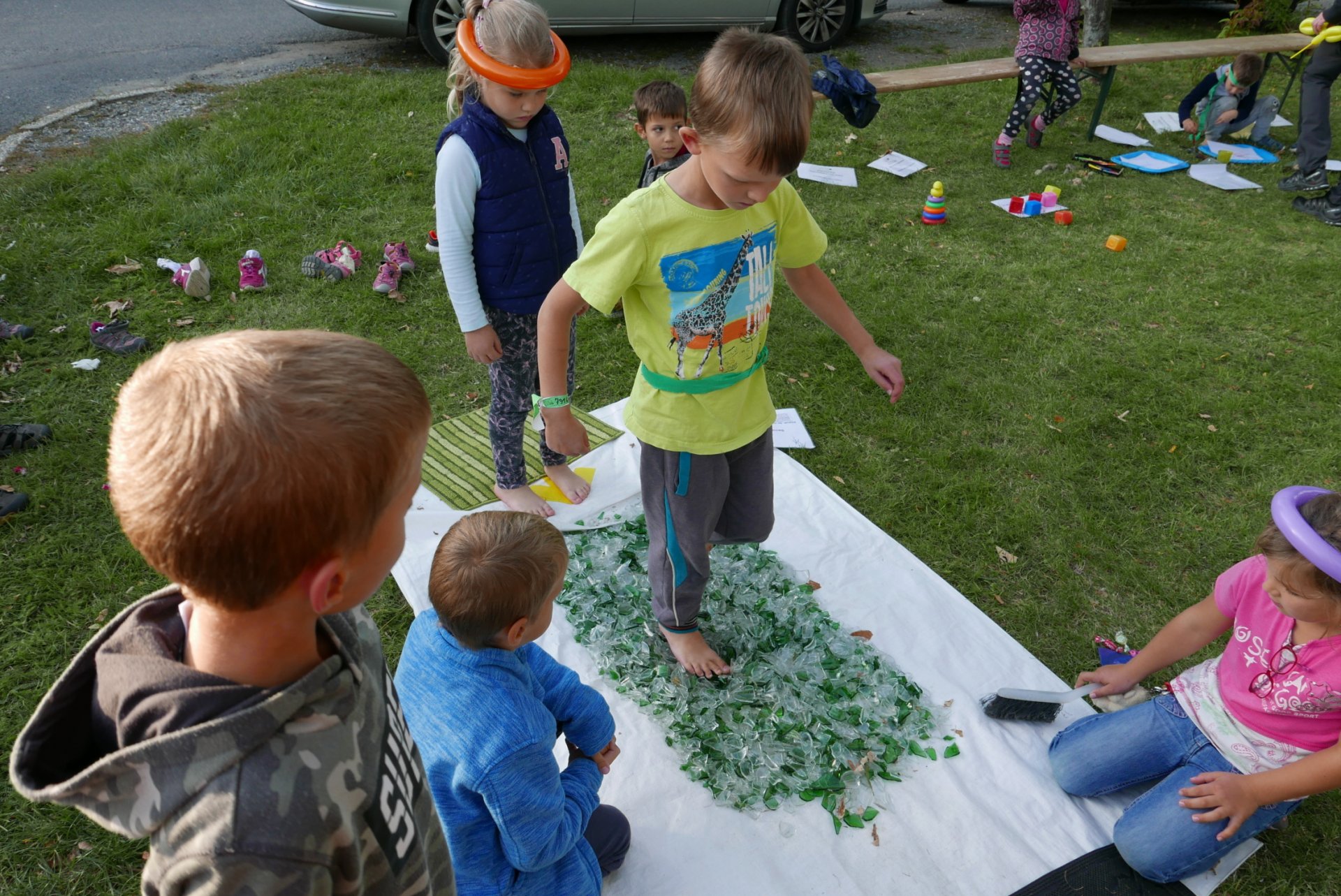 Na škvoreckém Otvíráku měly děti též možnost zdravě procvičit své nohy a zažít i ostřejší zábavu - glasswalking (chůzi ve střepech s www.TuristikaNaboso.cz). Více fotografií viz https://turistikanaboso.rajce.idnes.cz/Otvirak_TN_GW_2019/