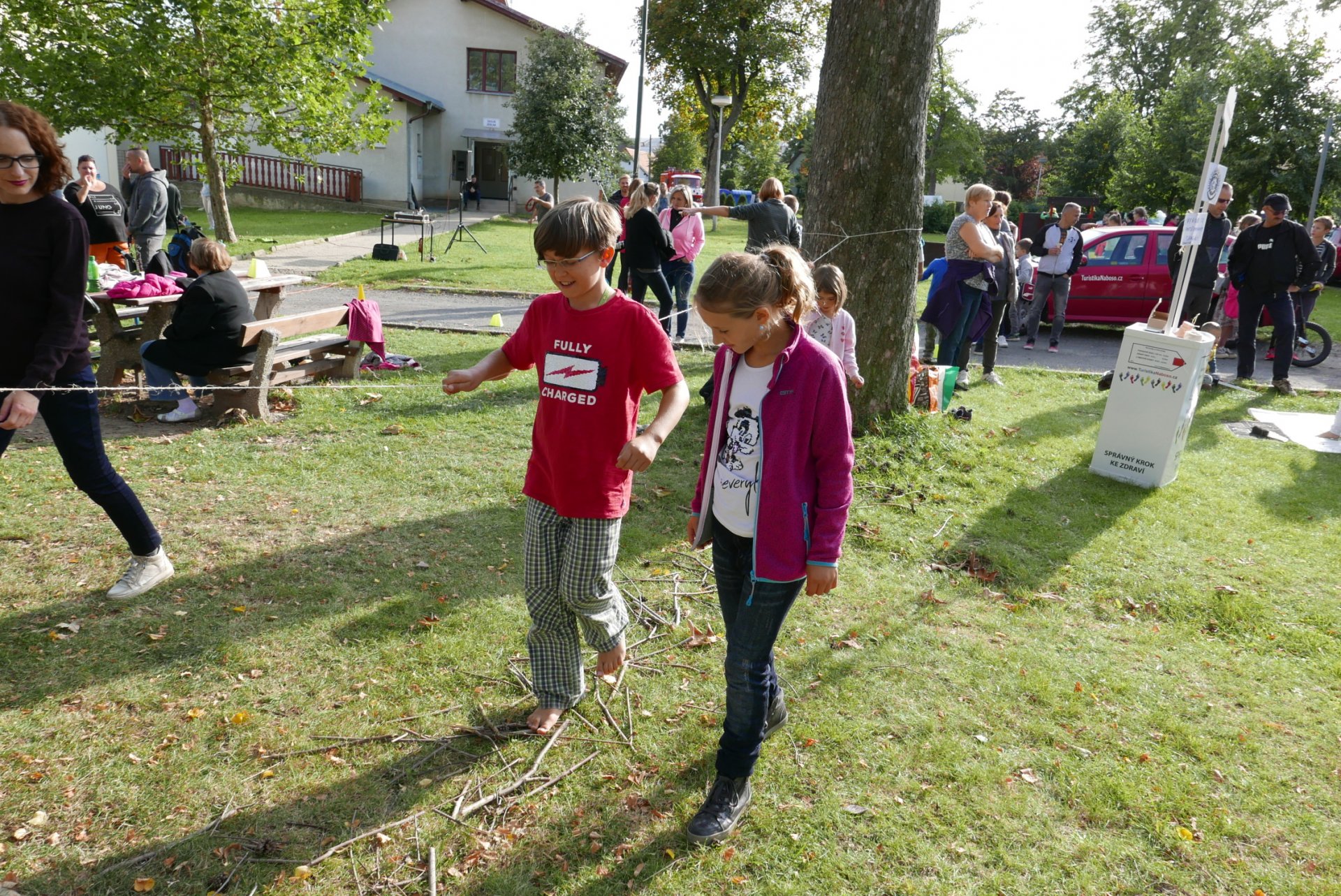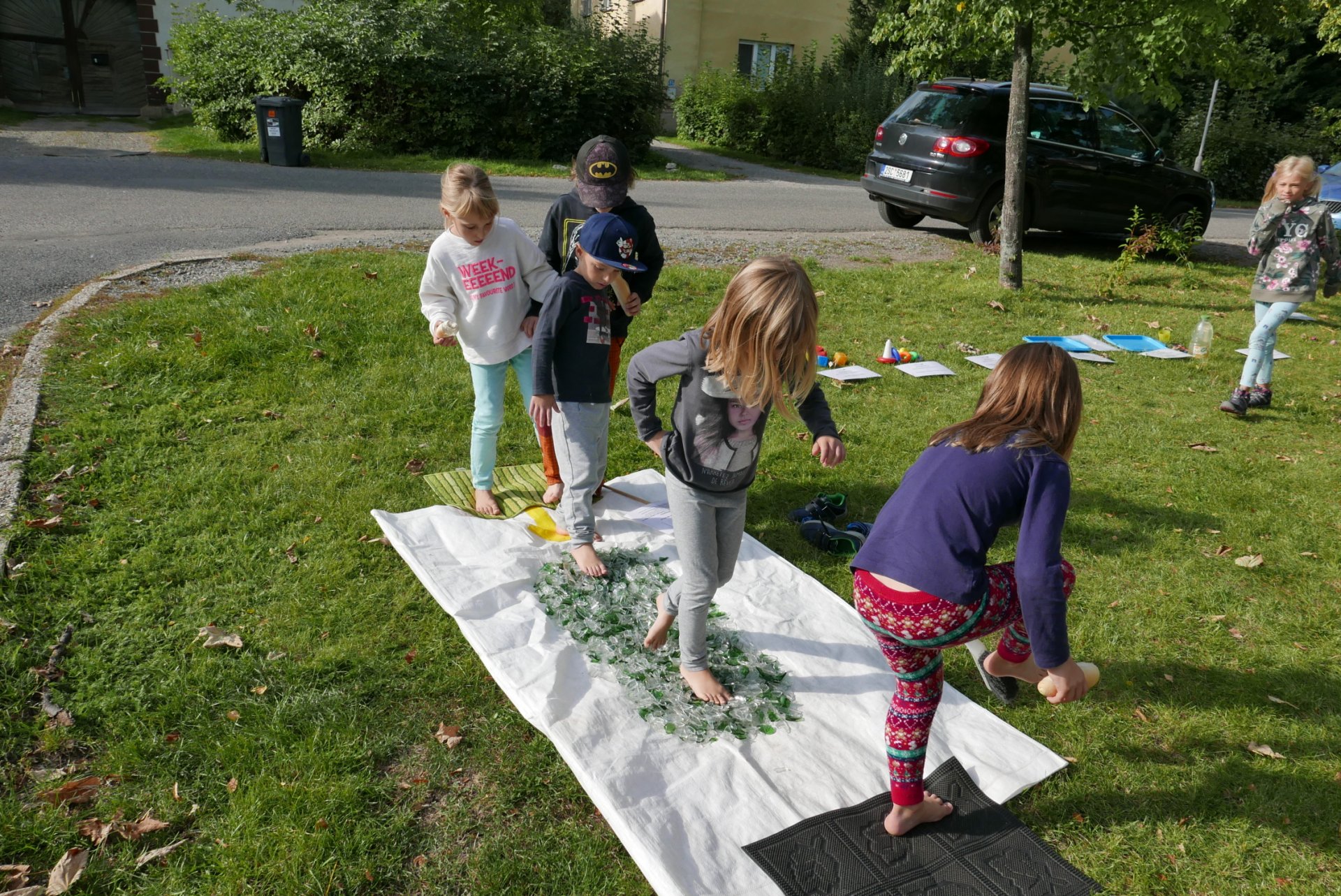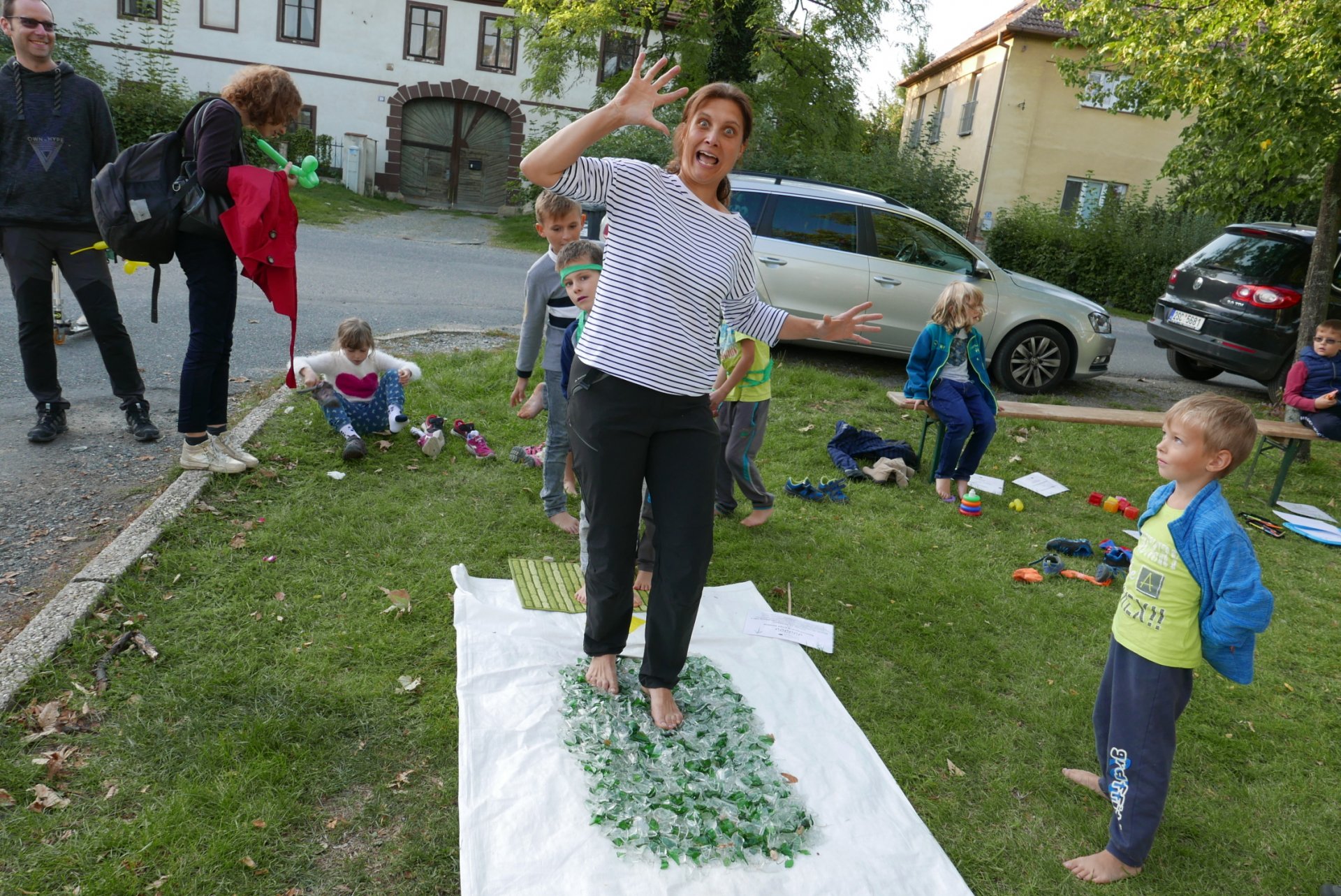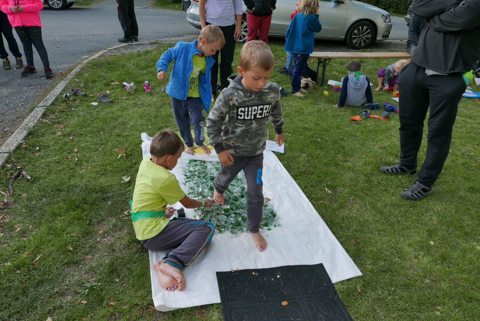 Na škvoreckém Otvíráku měly děti též možnost zdravě procvičit své nohy a zažít i ostřejší zábavu - glasswalking (chůzi ve střepech s www.TuristikaNaboso.cz). Více fotografií viz https://turistikanaboso.rajce.idnes.cz/Otvirak_TN_GW_2019/