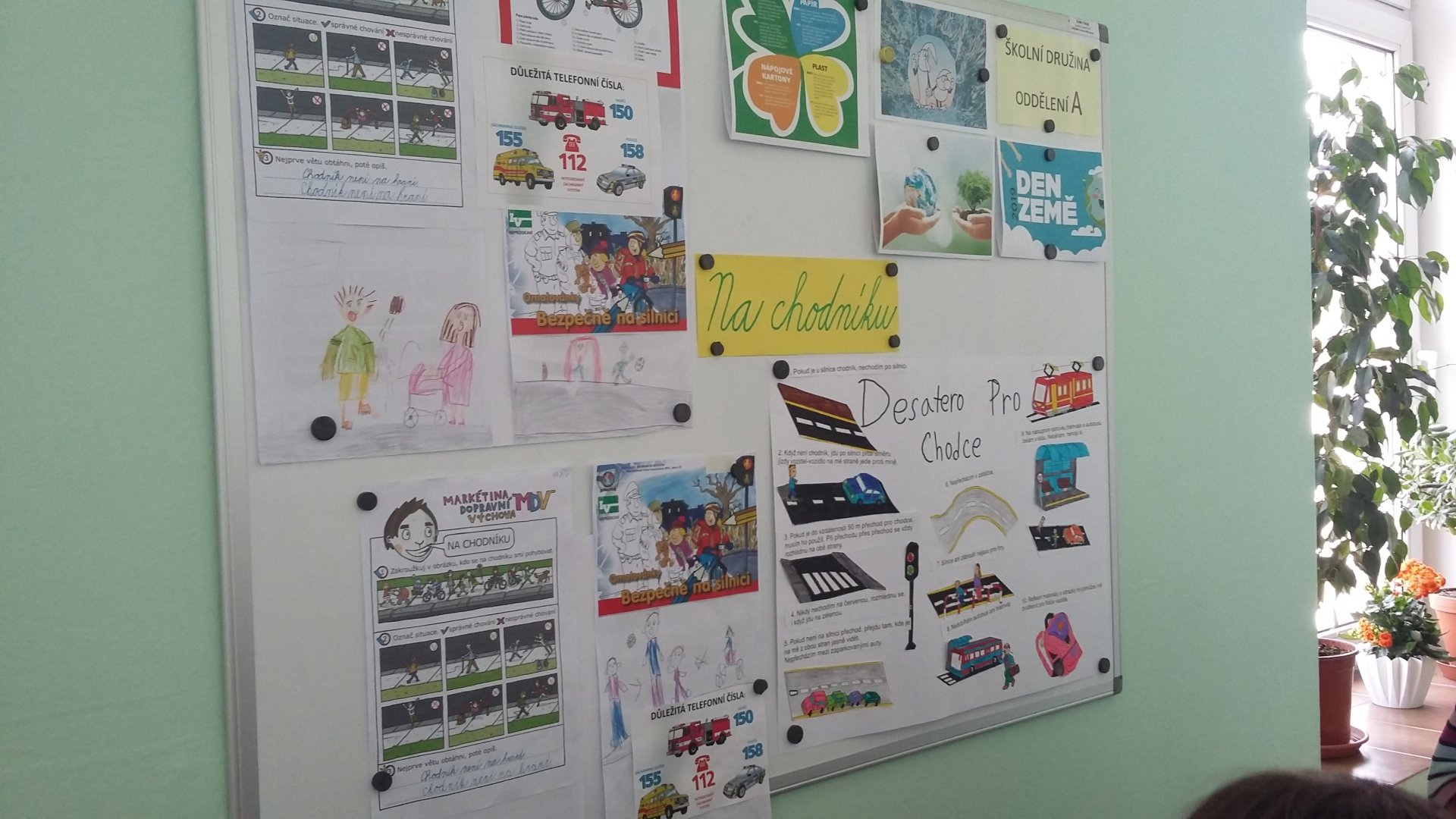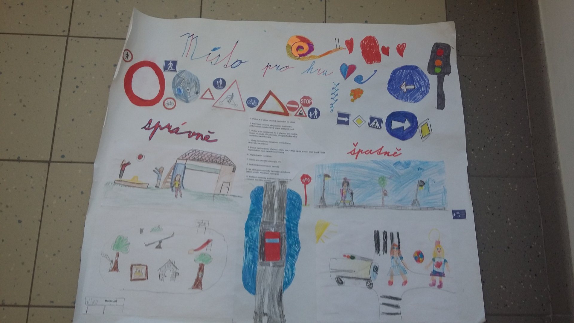 Práce dětí všech tříd byly vystaveny na chodbách třebohostické školy. Žáci se svými vyučujícími všechny vytvořené menší či větší plakáty zhlédli, zamysleli se nad otázkou, zda-li je plakát dostatečně přehledný a jasně předá pozorovateli informaci o bezpečnosti a správném chování v silničním provozu. Nakonec jsme si všichni společně zazpívali novou píseň Já kolo kolo mám.