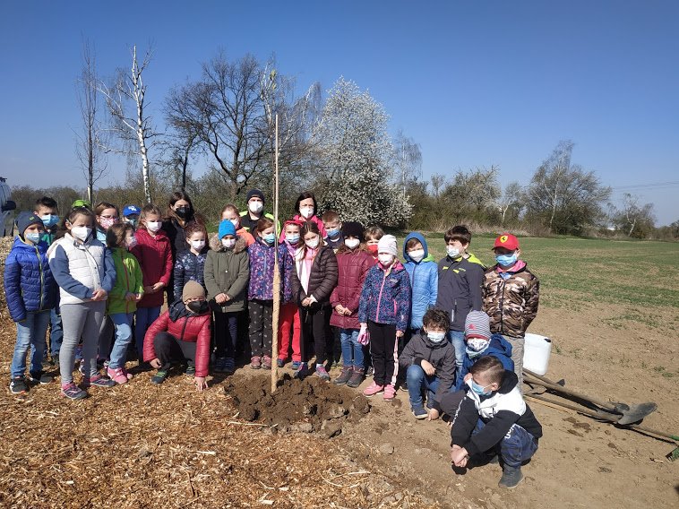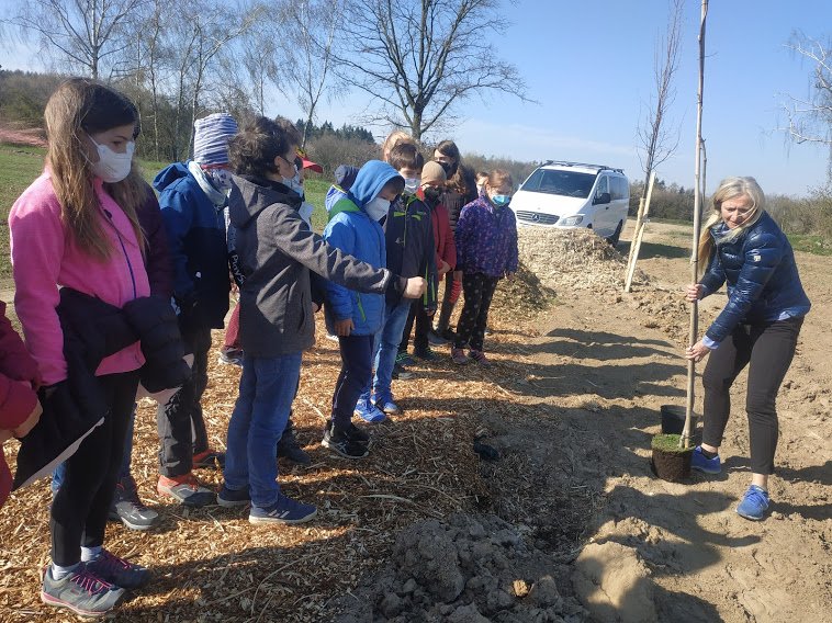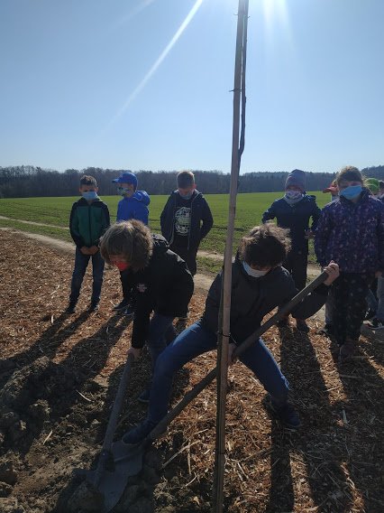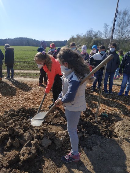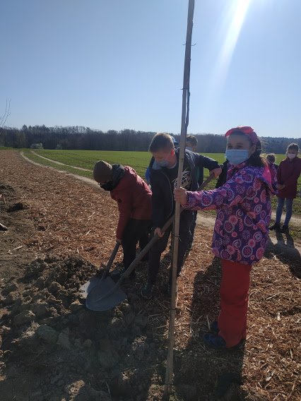 Ve spolupráci s obcí Zlatá probíhá obnova původní polní cesty. Na budoucí pěšinu již o víkendu bylo zasazeno 7 nových stromů a připraveno 5 děr na zasazení stromů při kterém se vystřídaly třídy 1.A až 4.B v Třebohosticích. I třída 3.A se společně s technickým pracovníkem, který přivezl stromy i potřebné vybavení, podílela na sázení stromů podél obnovené pěšiny do Zlaté.