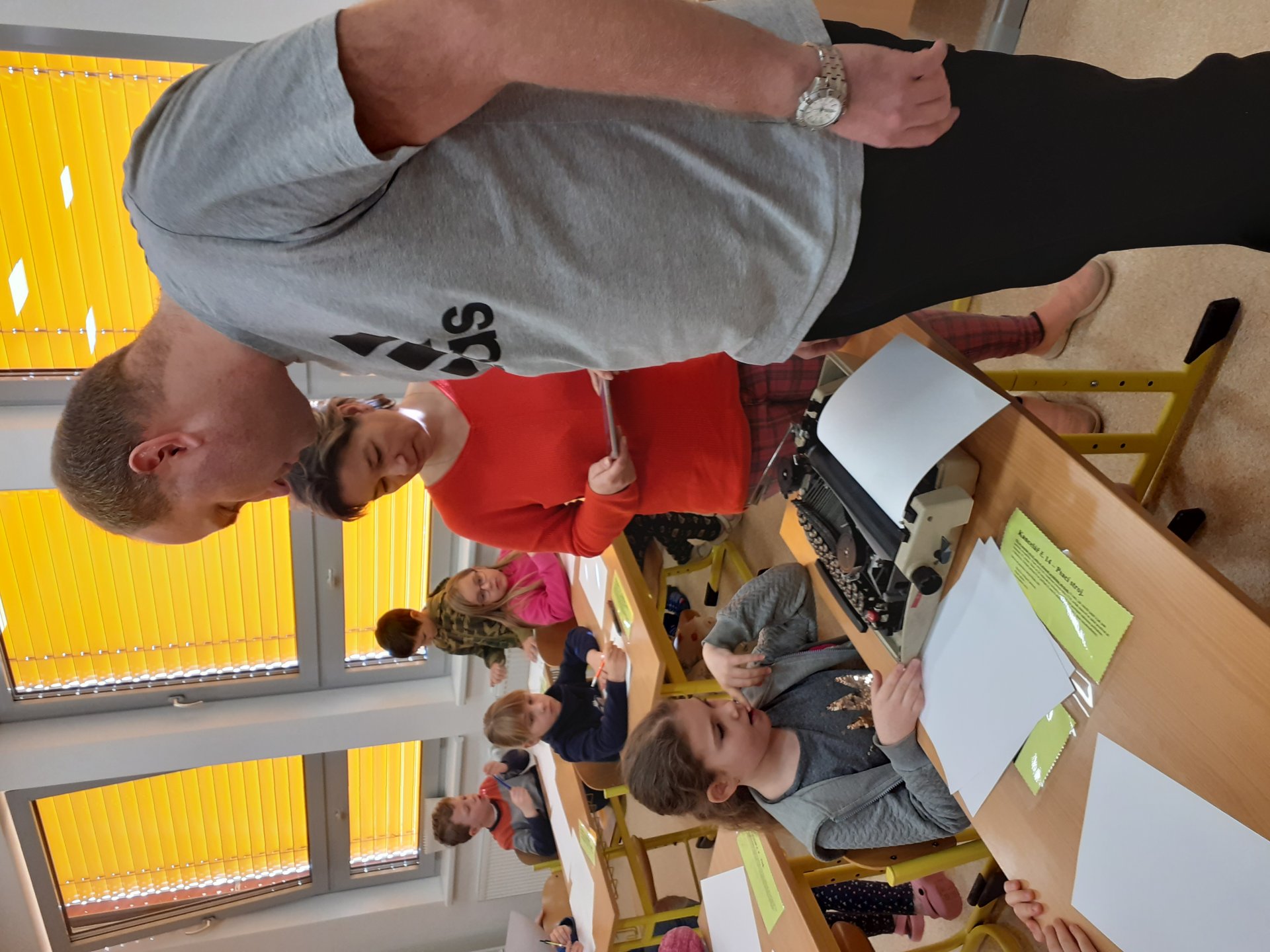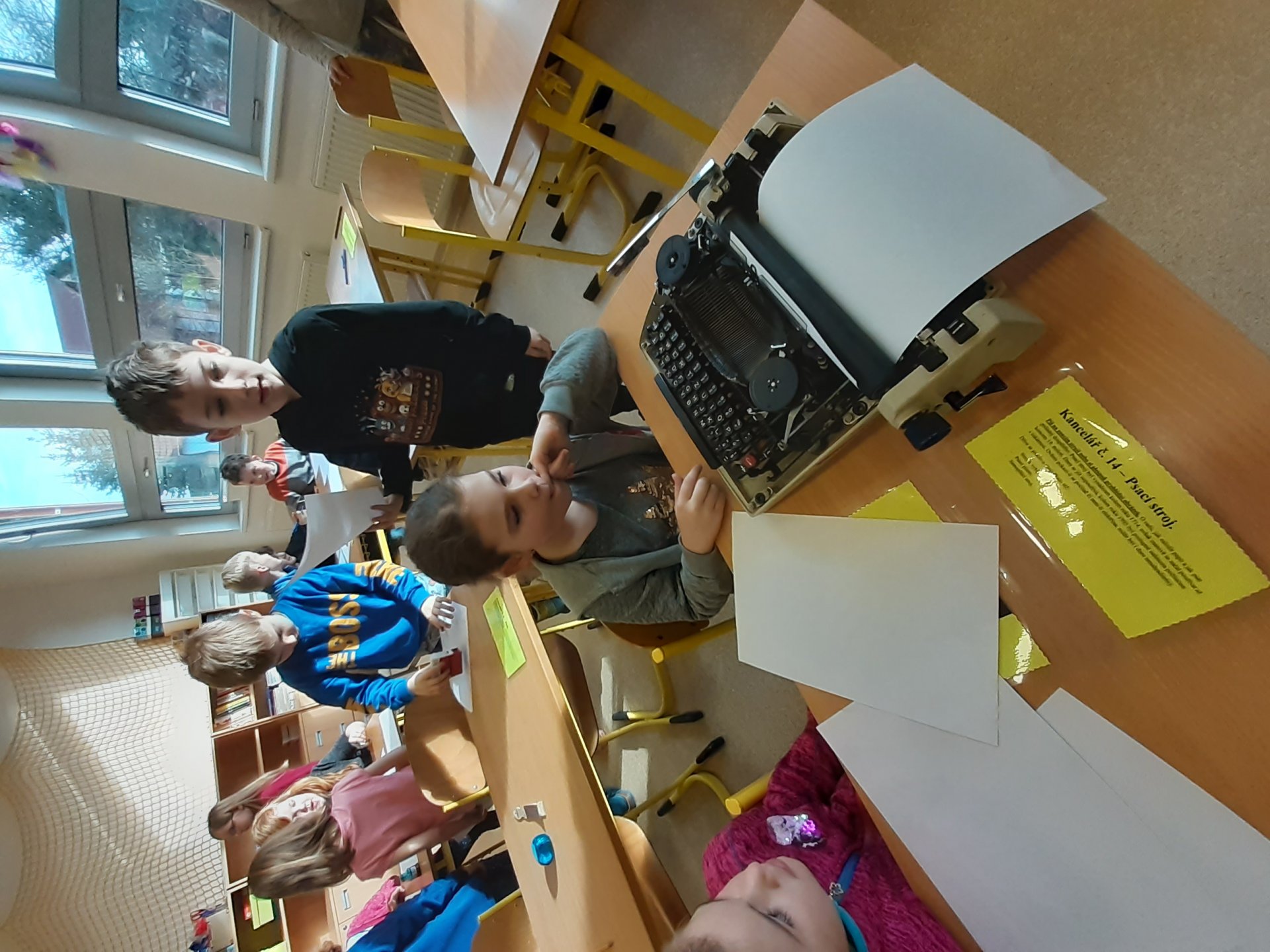 V út 10.3.2020 si pro nás připravil p.učitel Slouka "Písařskou dílnu". Děti se seznámily a také si vyzkoušely různé druhy psacích potřeb až po psací stroj. Představil jim a ukázal nejslavnější tužku Koh-inor. Děti si poté nakreslily vybranými potřebami obrázky domácích mazlíčků. Ušpinění byly až za ušima, ale zábava se jim moc líbila a obrázky se jim moc povedly.