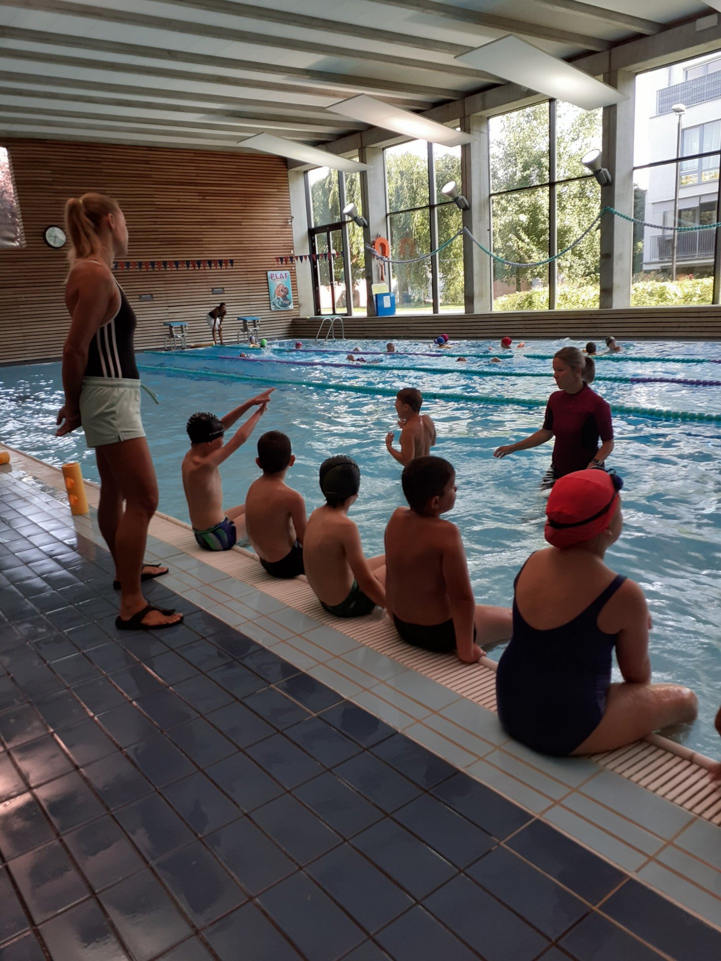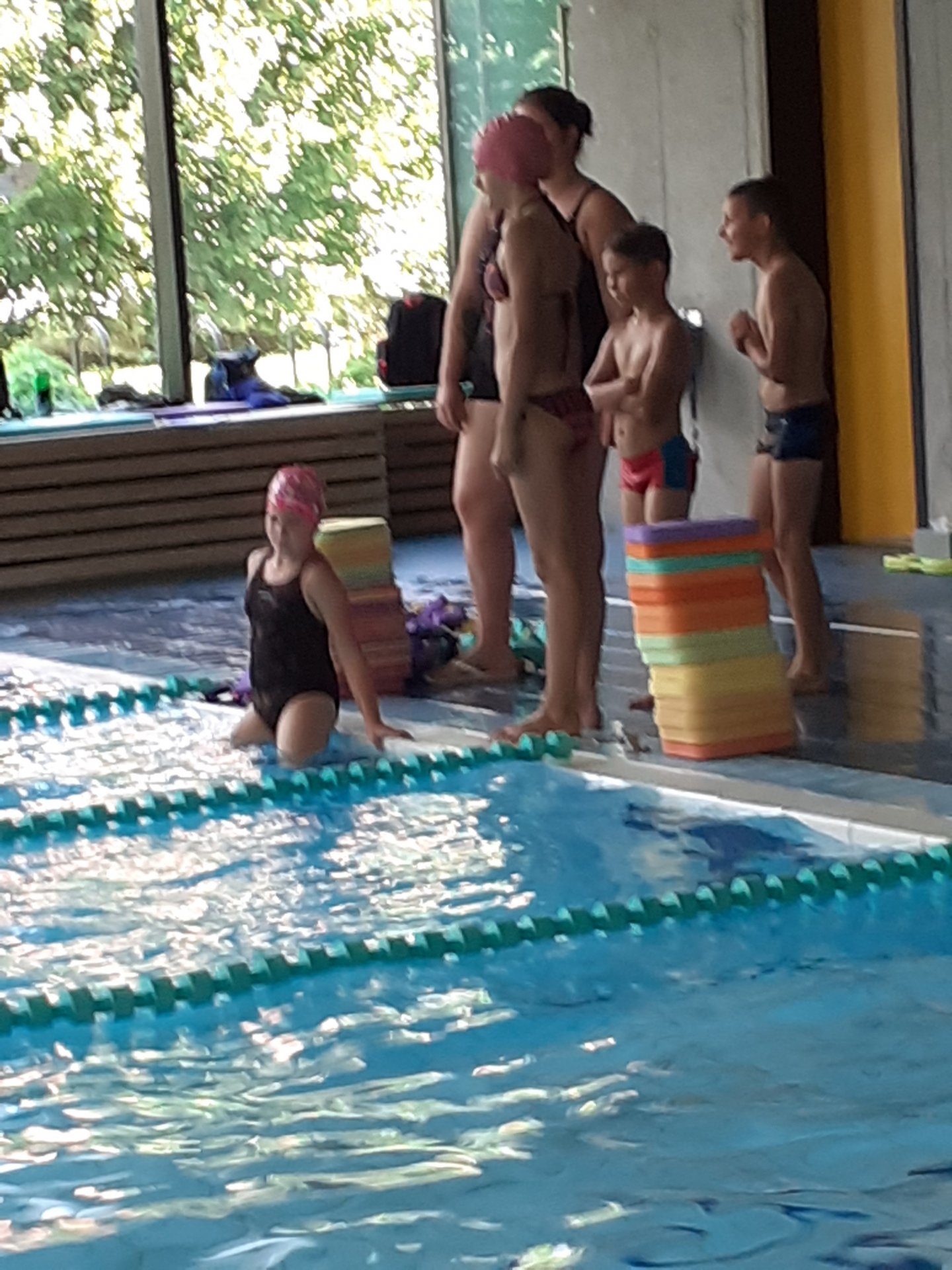 Na 1. lekci byly děti rozřazeny do tří družstev, báječně si plavání užily, vody se nebály a už se těší na 2. lekci.