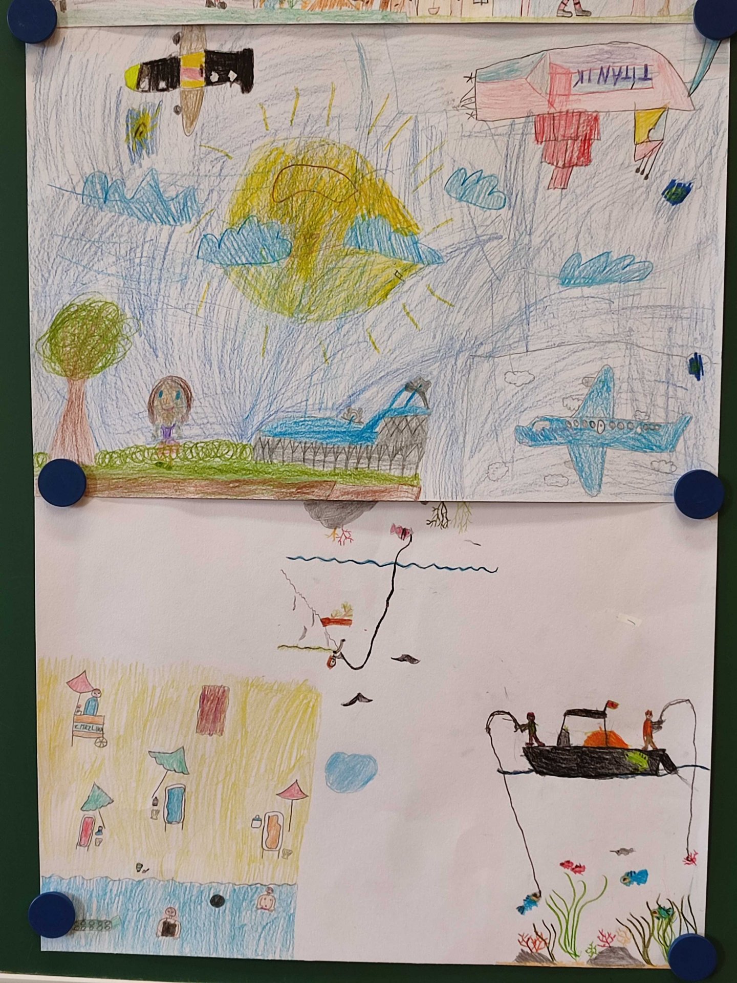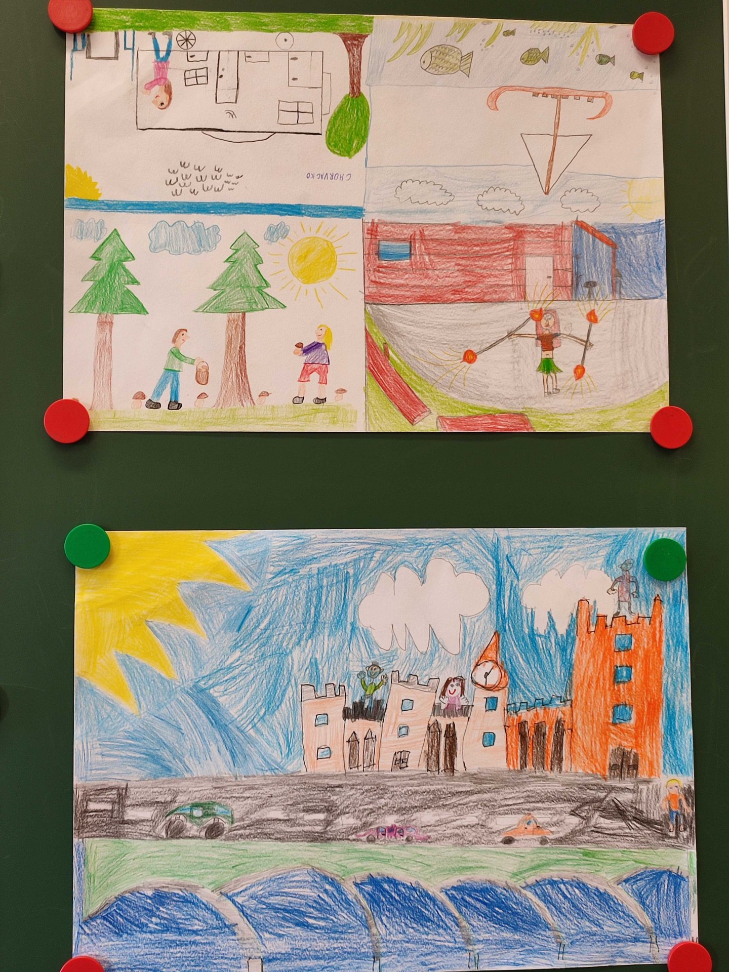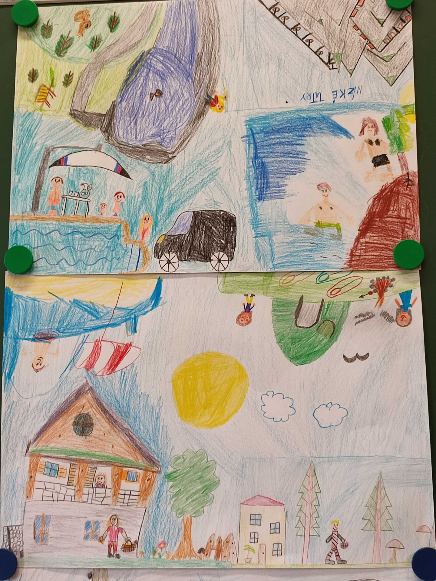 Další práci dostaly ve skupinách, kdy na velký formát čtvrtky měly svůj prázdninový zážitek nakreslit. Vše bez mluvení :-)