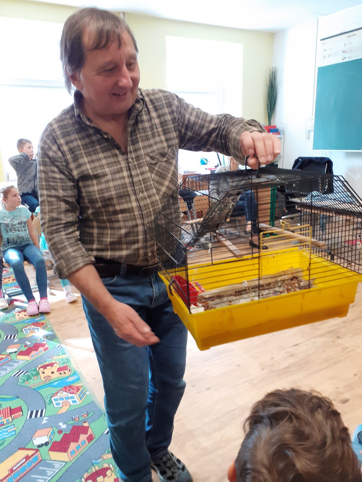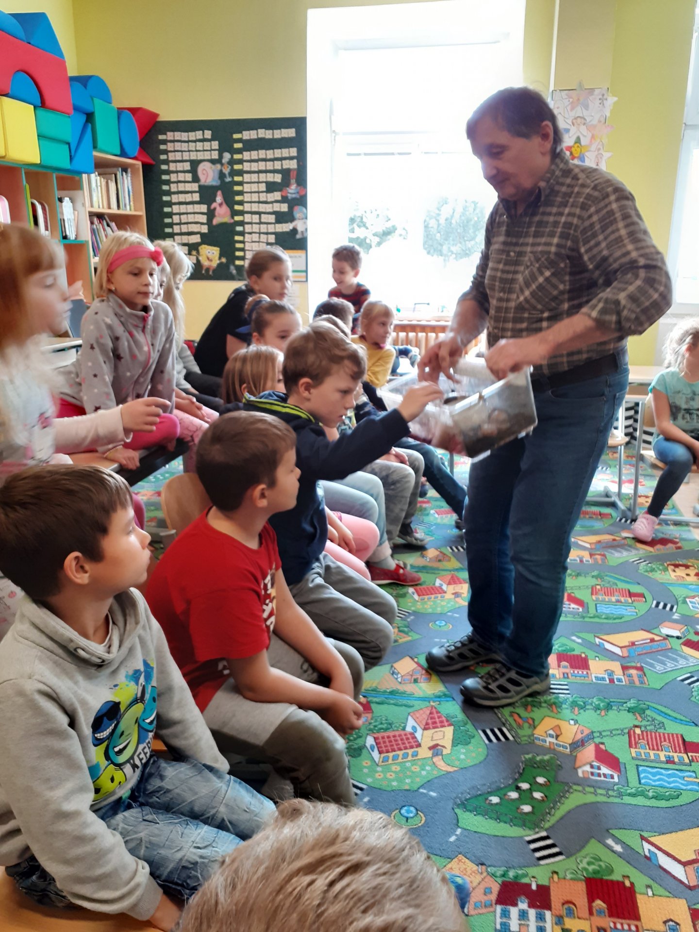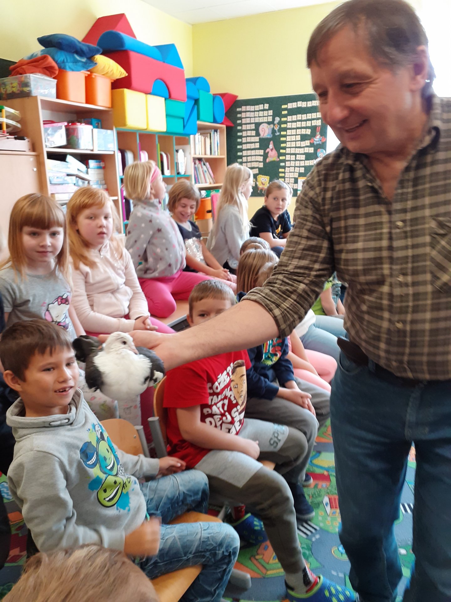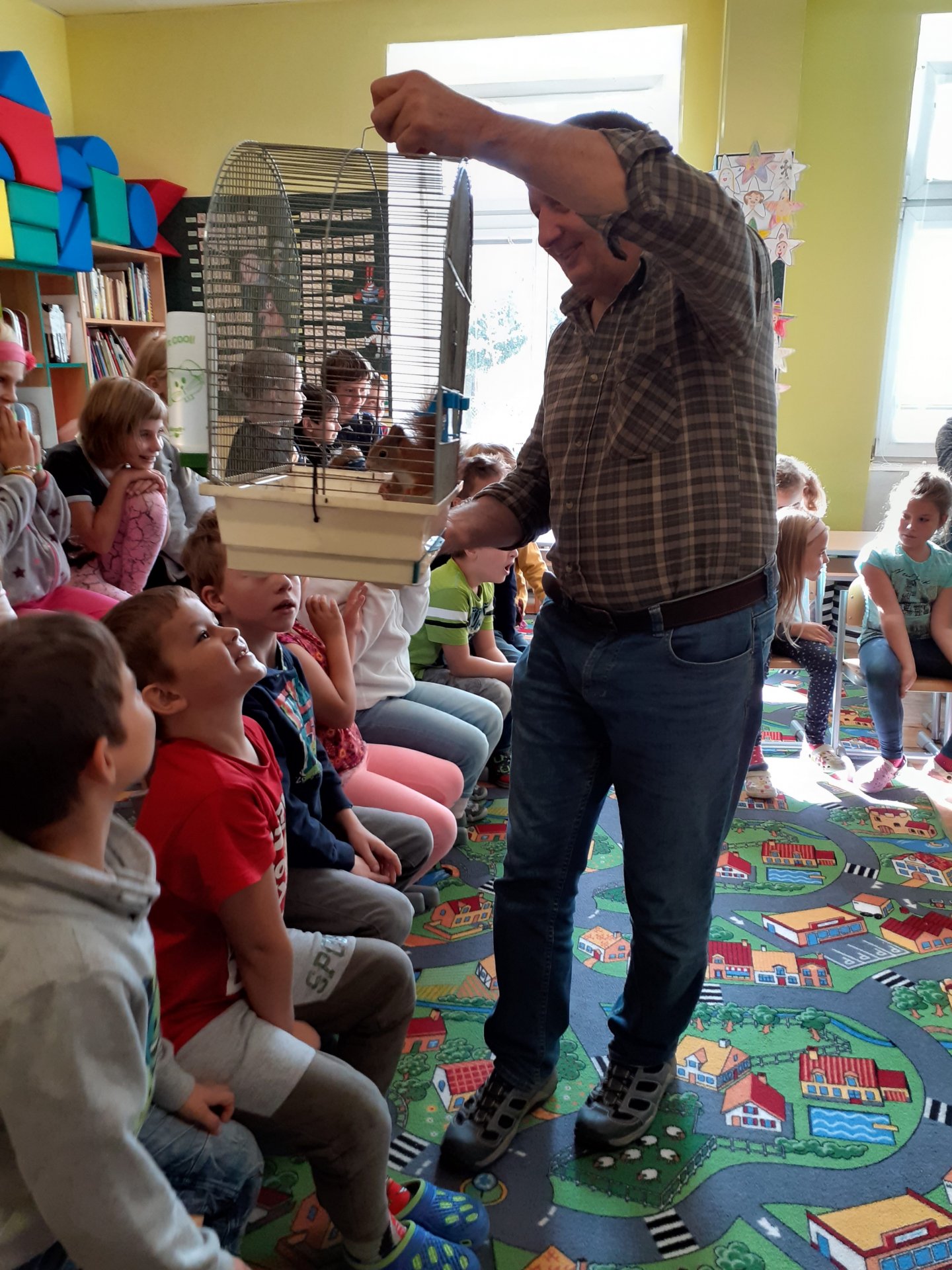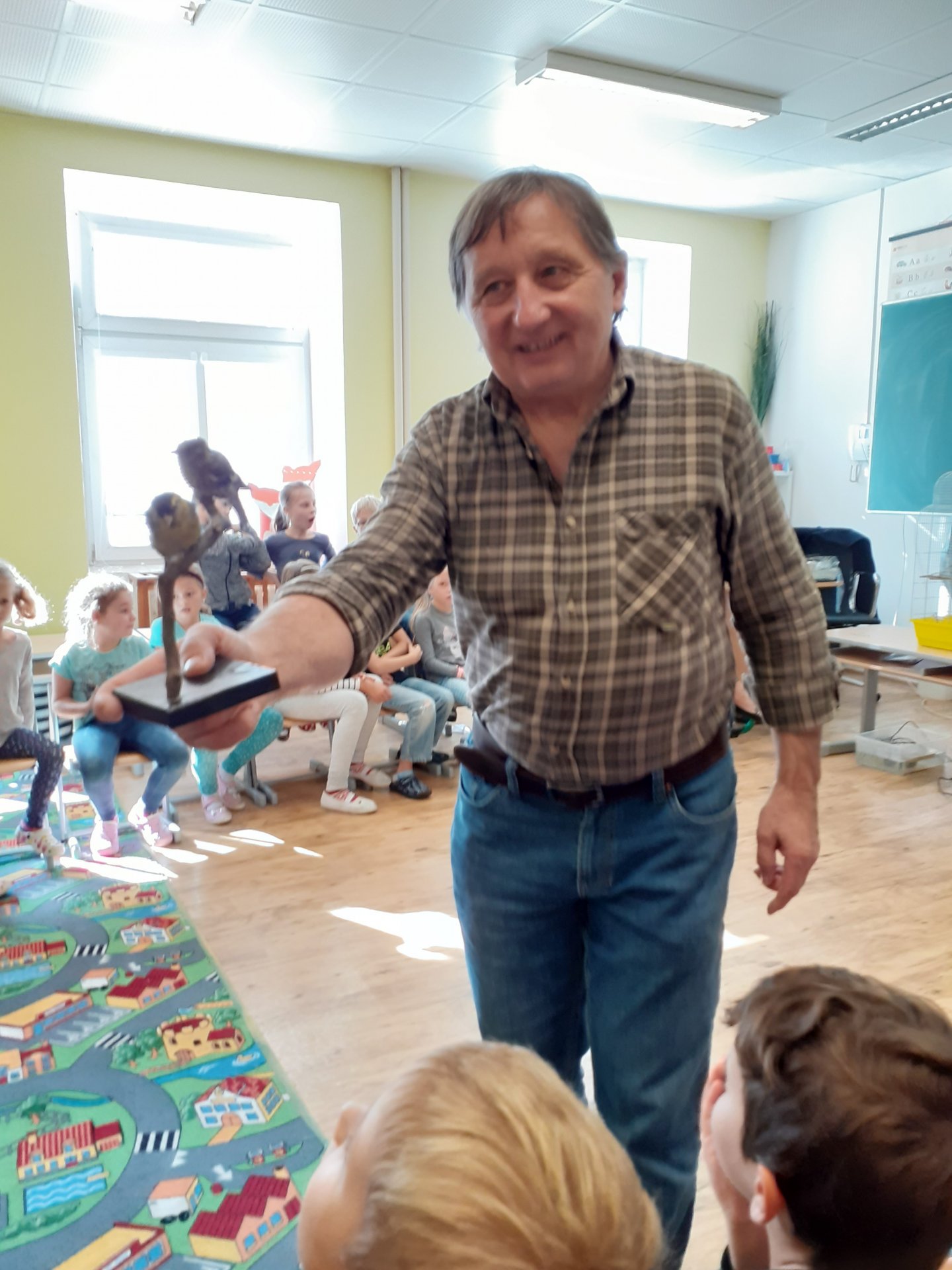 Ve čtvrtek 3. 10. k nám po roce opět zavítal pan Viktor z Ornity s naučným program Divoká školní zahrada. Děti poučil o péči o stálé ptáky, obyvatele našich zahrad, jejich potřebách na podzim a v zimě (výroba pítek, krmítek, vhodné krmivo). Program doplnil promítáním krátkých ukázek a názornou ukázkou exemplářů, ať už těch vycpaných či živých.