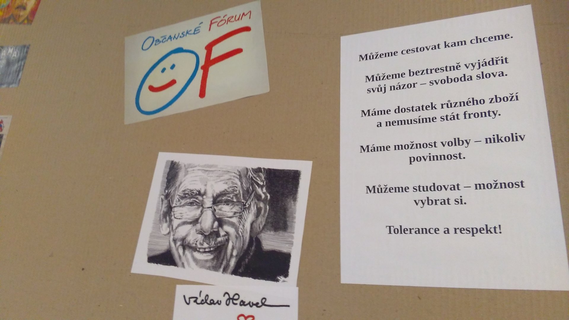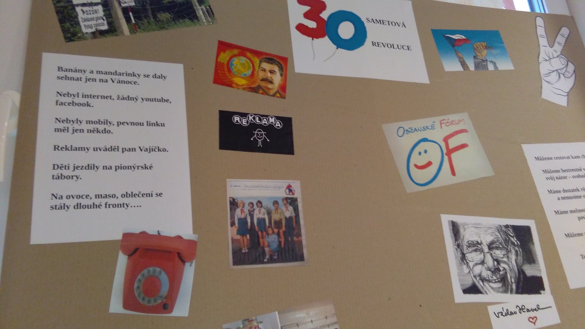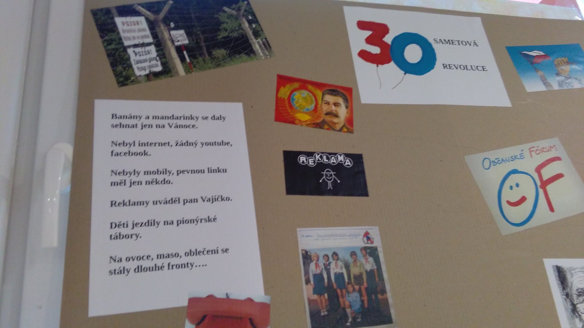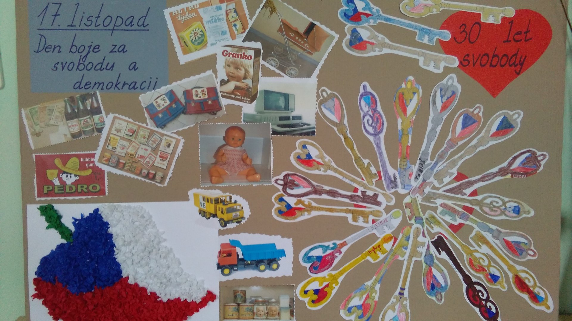 Určitě si všichni i doma povídali s rodiči nebo prarodiči o tom, jak se žilo v době před a po roce 1989. Přestože pro žáky bylo téma z historie „Sametové revoluce” zpočátku obtížné, pracovali s velkým zájmem a nadšením. Vyzkoušeli si euforii při zvonění klíči, poslechli si písničky, ukázali si předměty, výrobky z této doby, připomněli si i potraviny, které byly v té době nedostatkové, a porovnali třeba i ceny v obchodech…a proč to všechno? Aby věděli, že vybojovanou svobodu a demokracii musíme chránit.